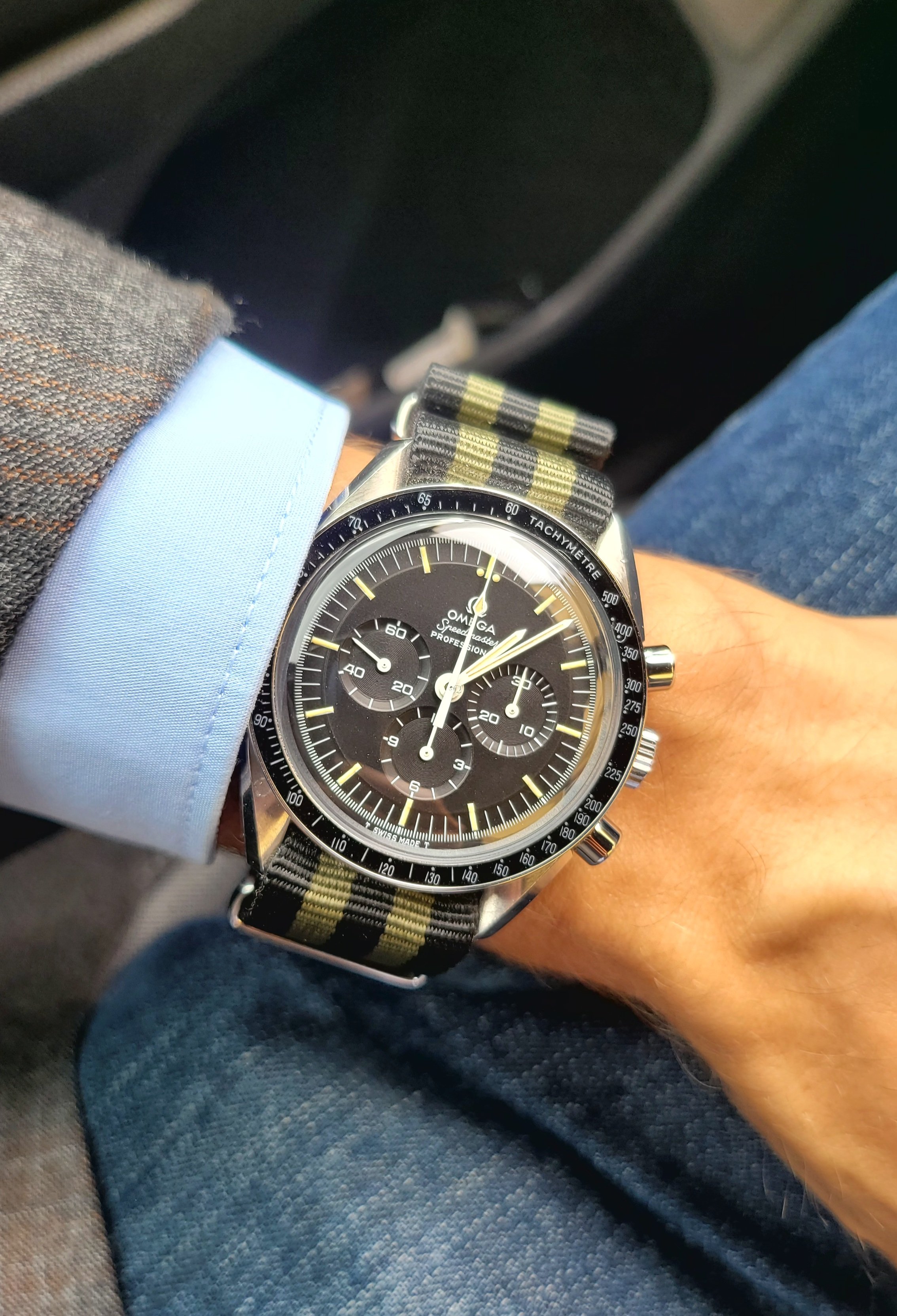 I probably had a lucky day and wanted to confirm with the community. While picking up some watches from service at my watchmaker yesterday, he told me that some person had just come by that day and brought him some watches with the intent to sell. Apparently, some grandfather died and when they opened his safe, they found watches that nobody was aware of, so they must have been lying there for 30 years or so. Amongst them was this Speedmaster 145.022-69 that I immediately jumped upon. I love the story and looks, so I immediately made a fair offer (-service cost) that the seller accepted.