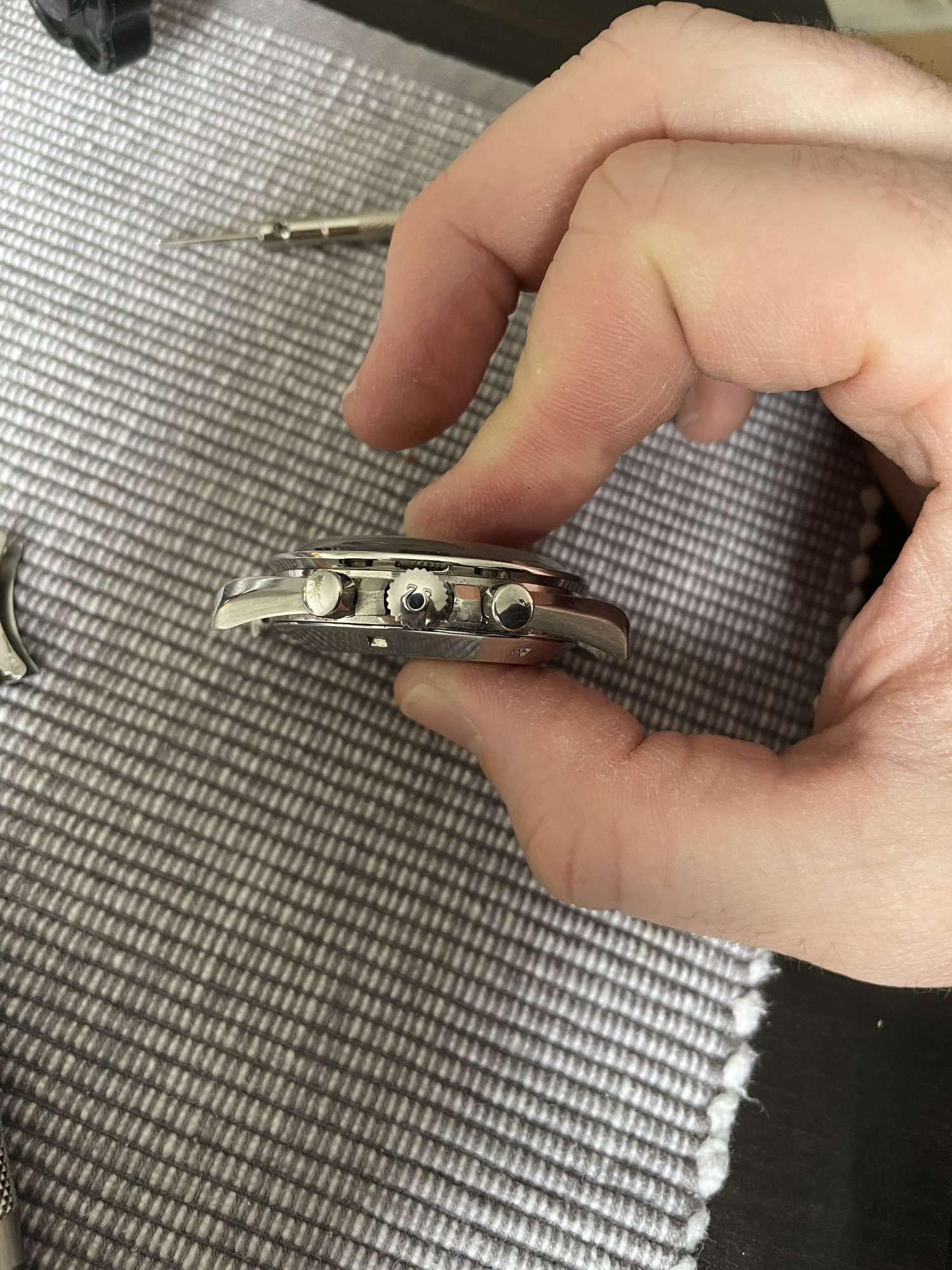 -The watch has been polished, and not very nicely. I am especially bothered by the 5 o’clock lug (lug on the left in the pictures) as the brushed section appears a bit too thick. The case looks very thick still but i wonder if any of you can advise on if it would be worthwhile getting the case properly refinished/polished?