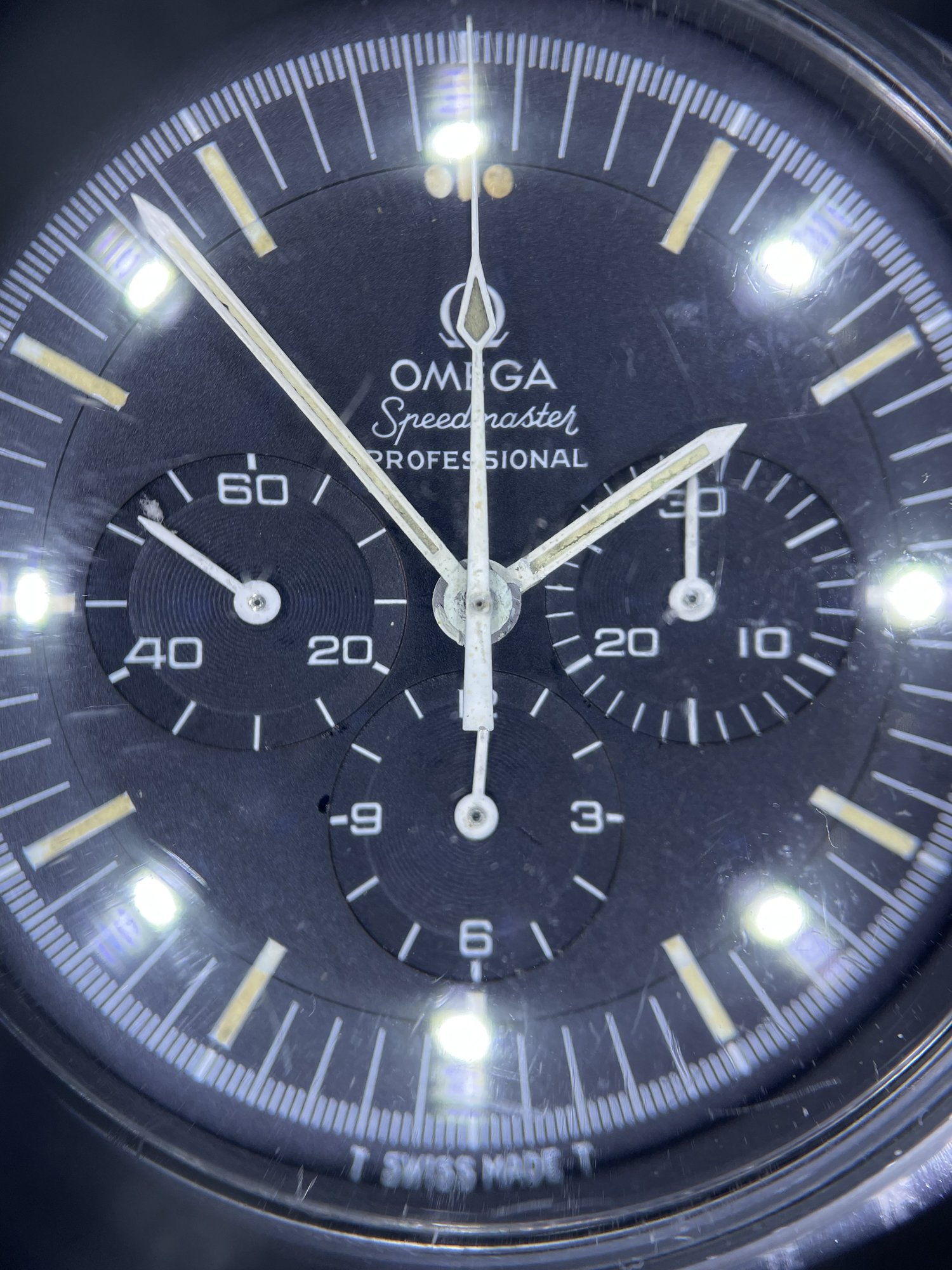-The lume on the indices and on the hands: I have not seen many vintage Speedmasters in person, but from what i have read on this forum and images i have seen online, it seems lume breakdown on the hands of vintage Speedmasters is normal. This is not a washed dial, but if you look at the 10x loupe images you can see some of the pumpkin color lume is gone and there is a whiteish base underneath. Is this common?
