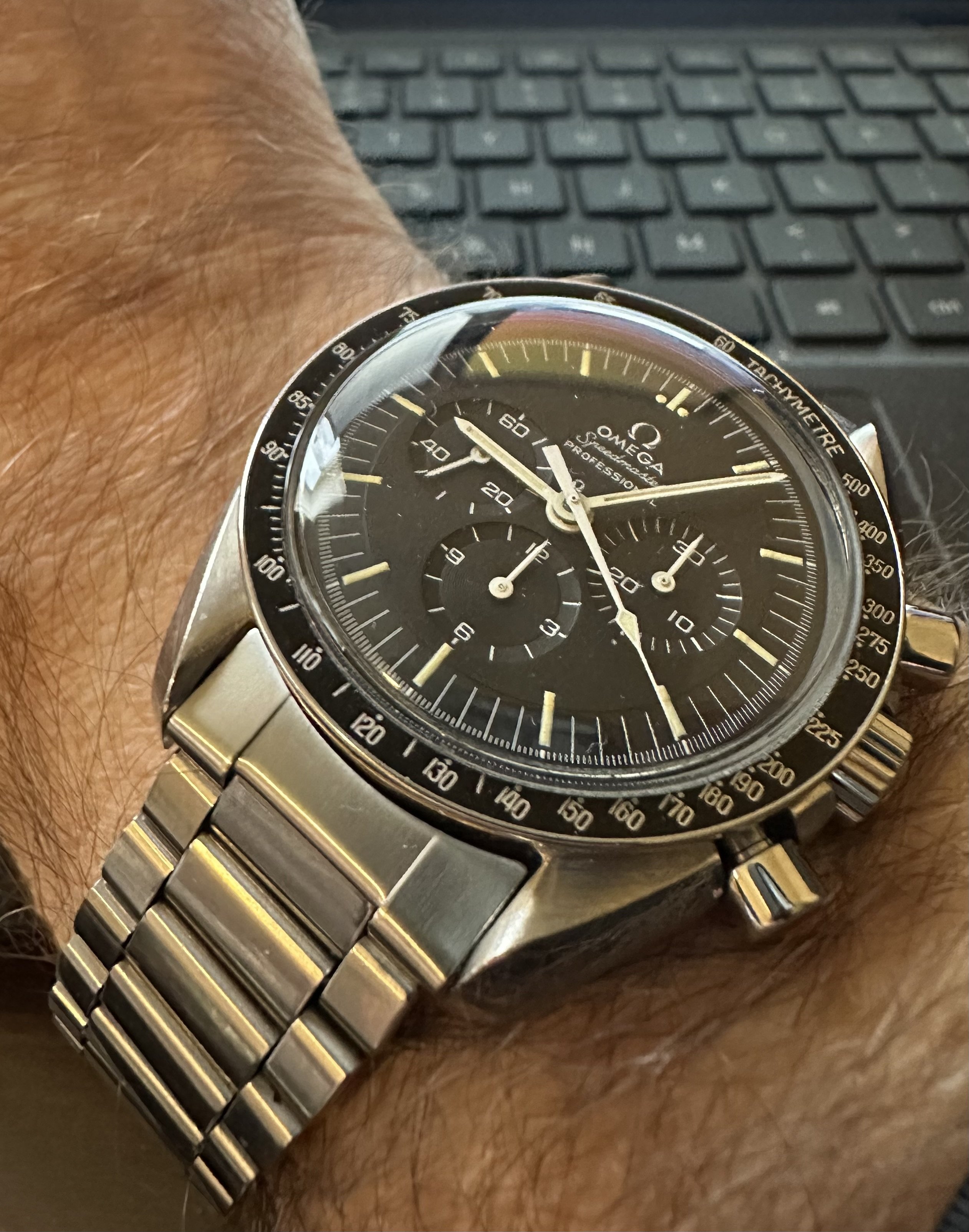 ·Last week I won an auction for a Speedmaster 145.022-69 “Straight Writing”. The auction website pictures were not good, and after requesting additional pictures from the auction house, I recieved images that were slightly better/more informative, but still did not give a full picture of the watch. I went ahead and bid with my max being $5k USD as the watch is from the original owner and looked to be in overall good condition.