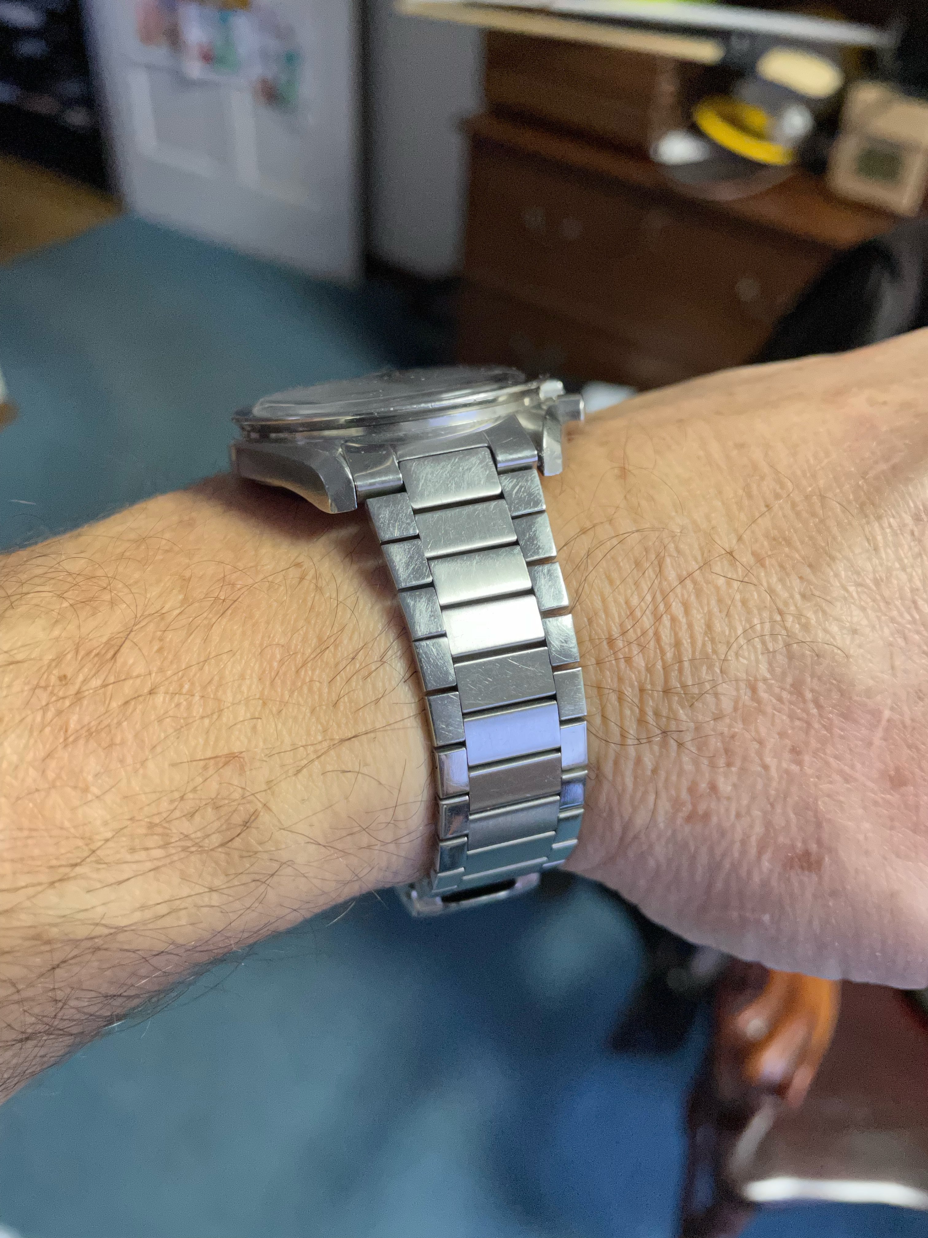The most interesting thing is the red center chronograph hand. Several long time members, with high post counts (I know that only really means that they like to talk) mentioned that over the years these have been infrequently seen and by all accounts are genuine from the factory. This makes sense given other things that I have read about production of these watches in that there are not a lot of very clear lines about what when on various references; a bit of overlap with things.