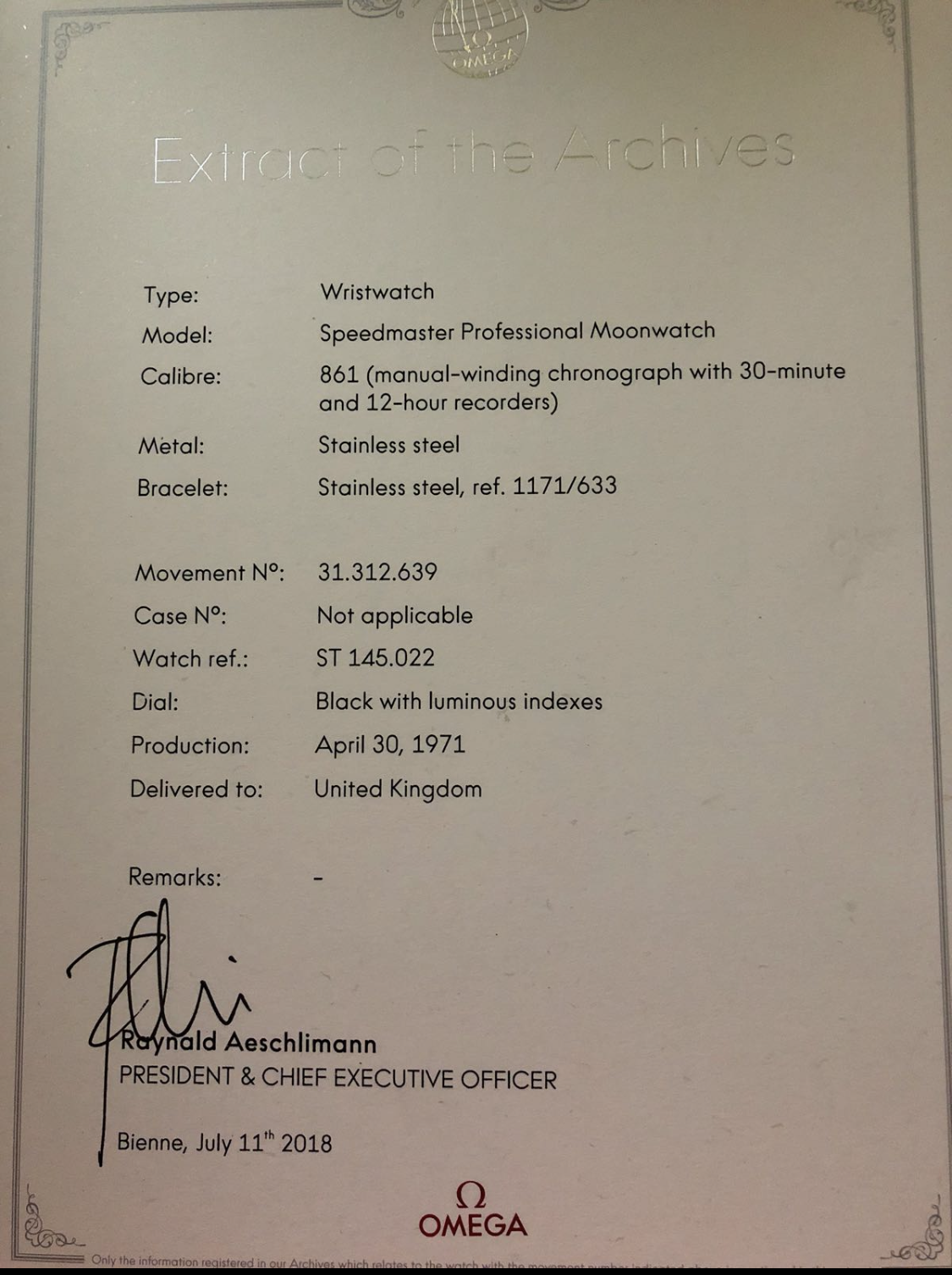 That's a lovely example you have there. If you do ever decide to obtain an extract, please do consider sharing it and popping the results into the ilovemyspeedmaster database. There aren't a huge number of extracts out there for these (yet), so every little extra bit of information is helpful. 👍