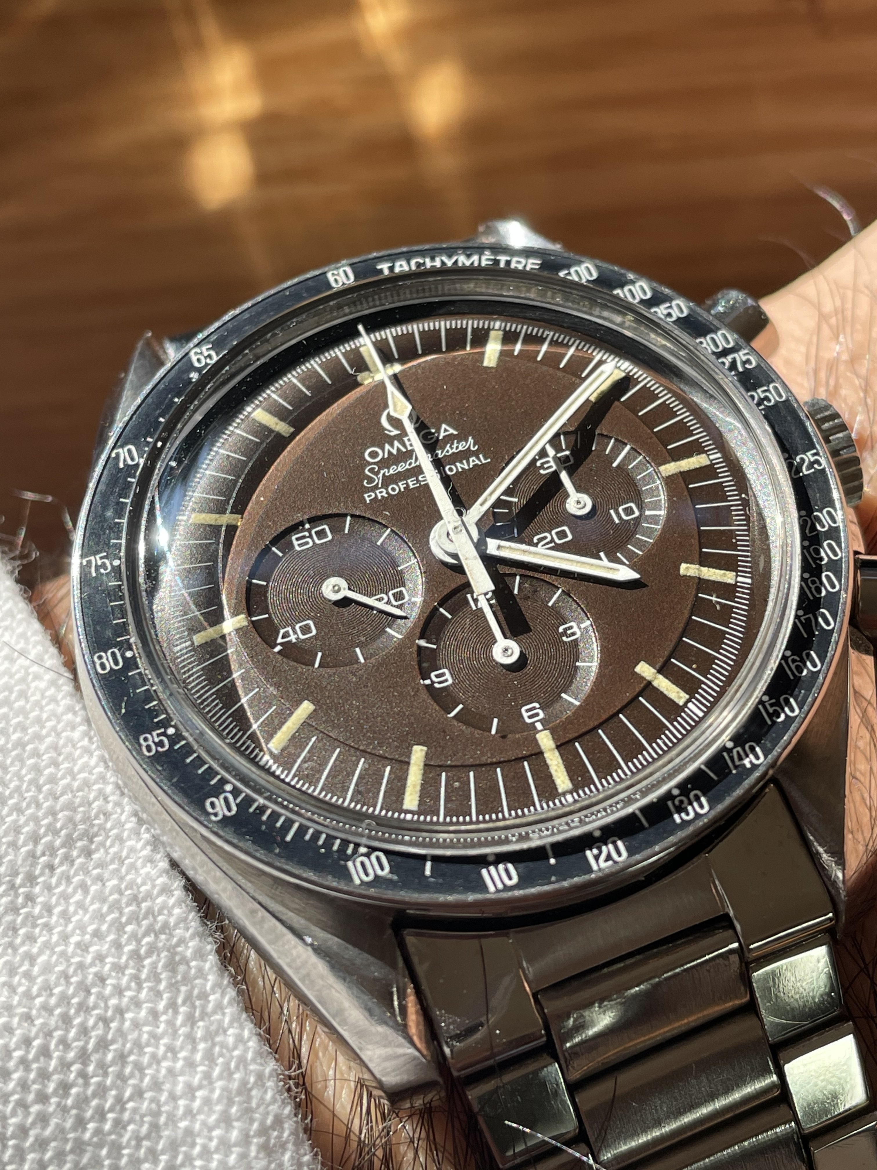 Posts 24,261 Likes 54,031 Dan S ·Sep 23, 2023 The top photo is my 2911xxxx brown dial in sunlight. In the photo below, it is shown with two other -69s, black dial on the left, and a 2960xxxx that is less dramatically brown.