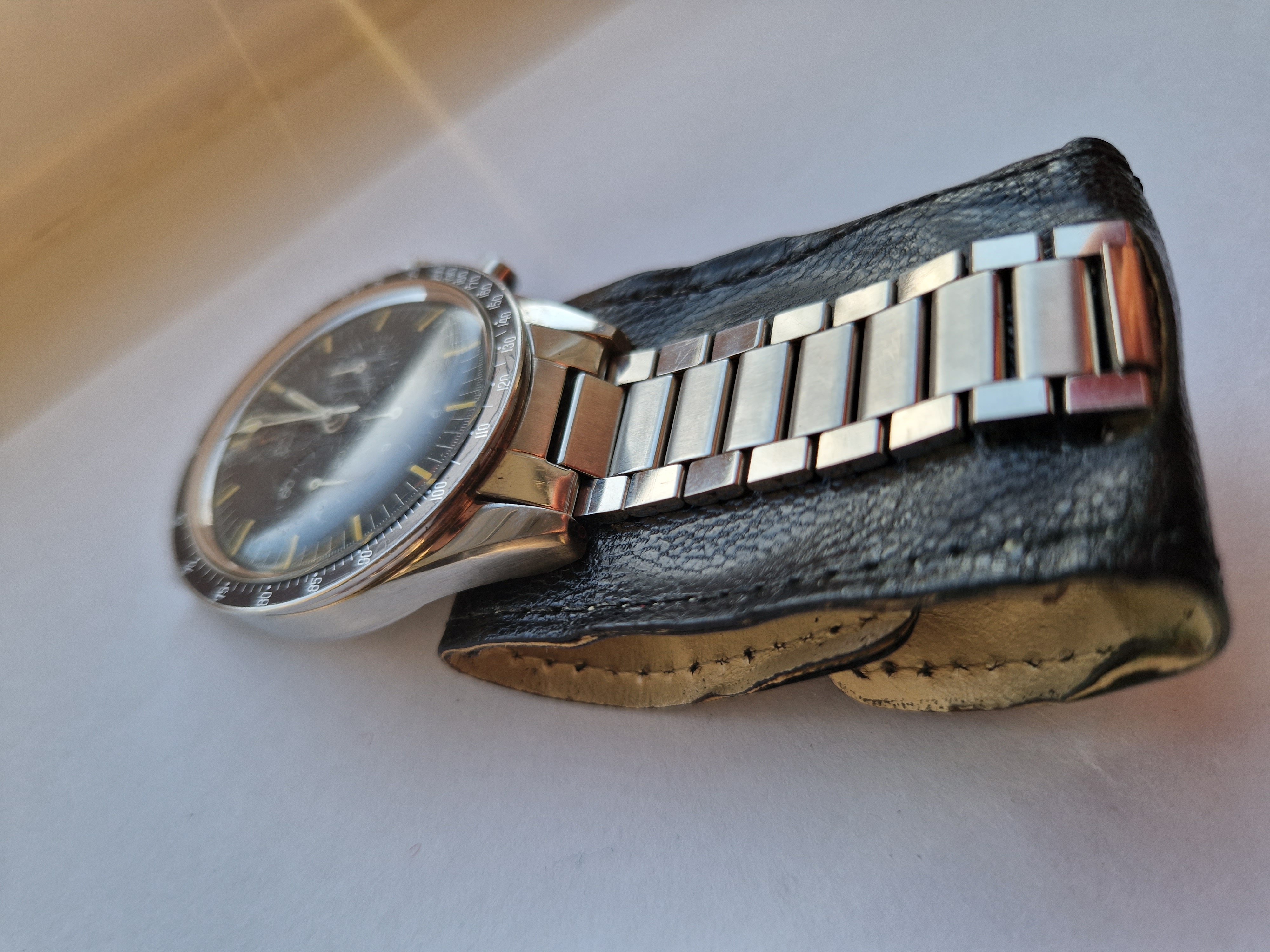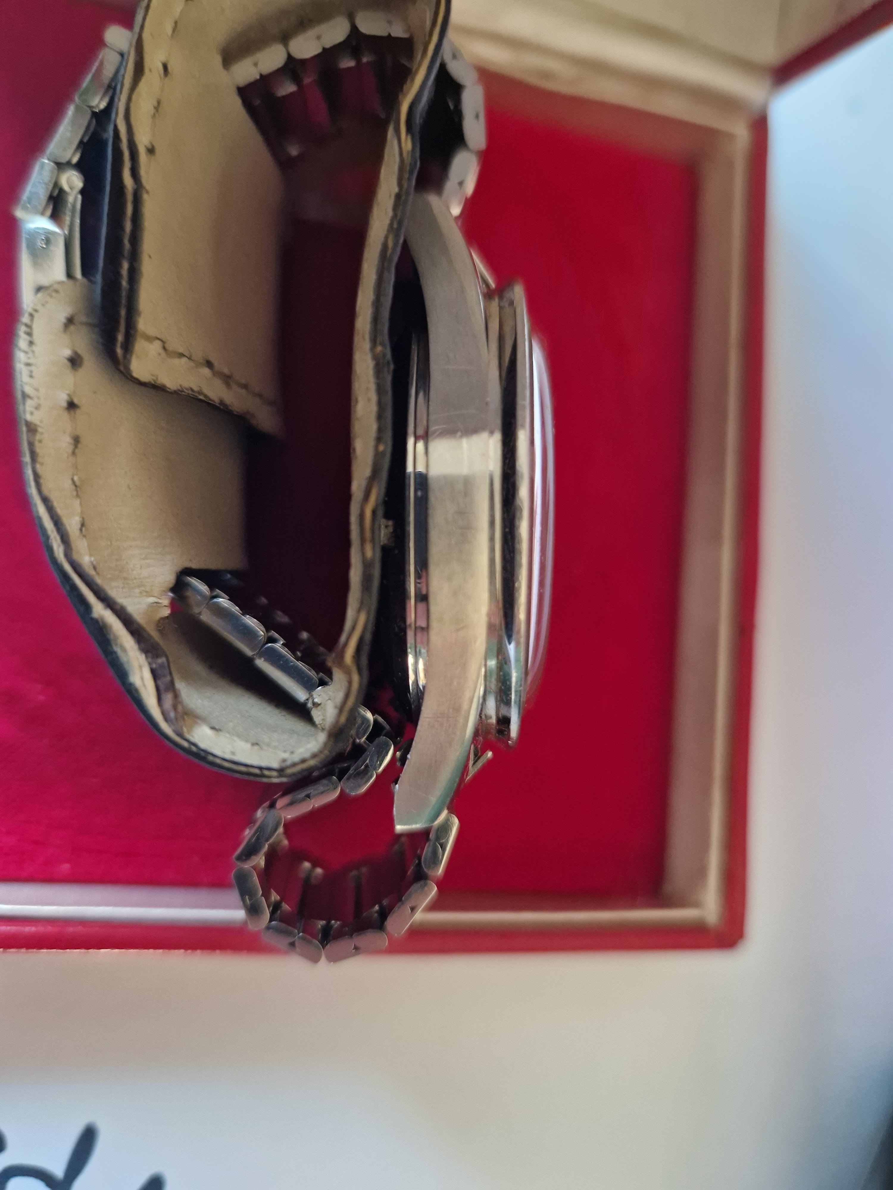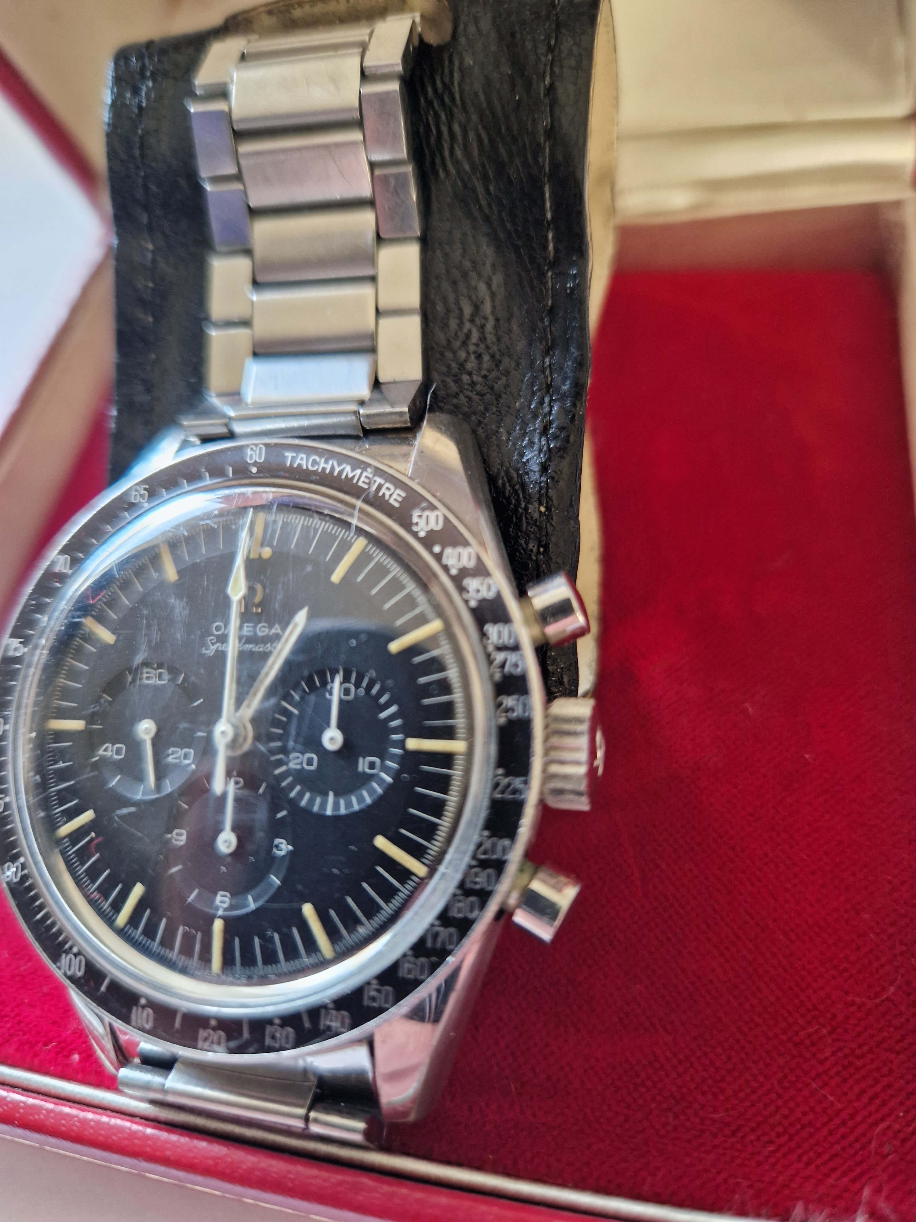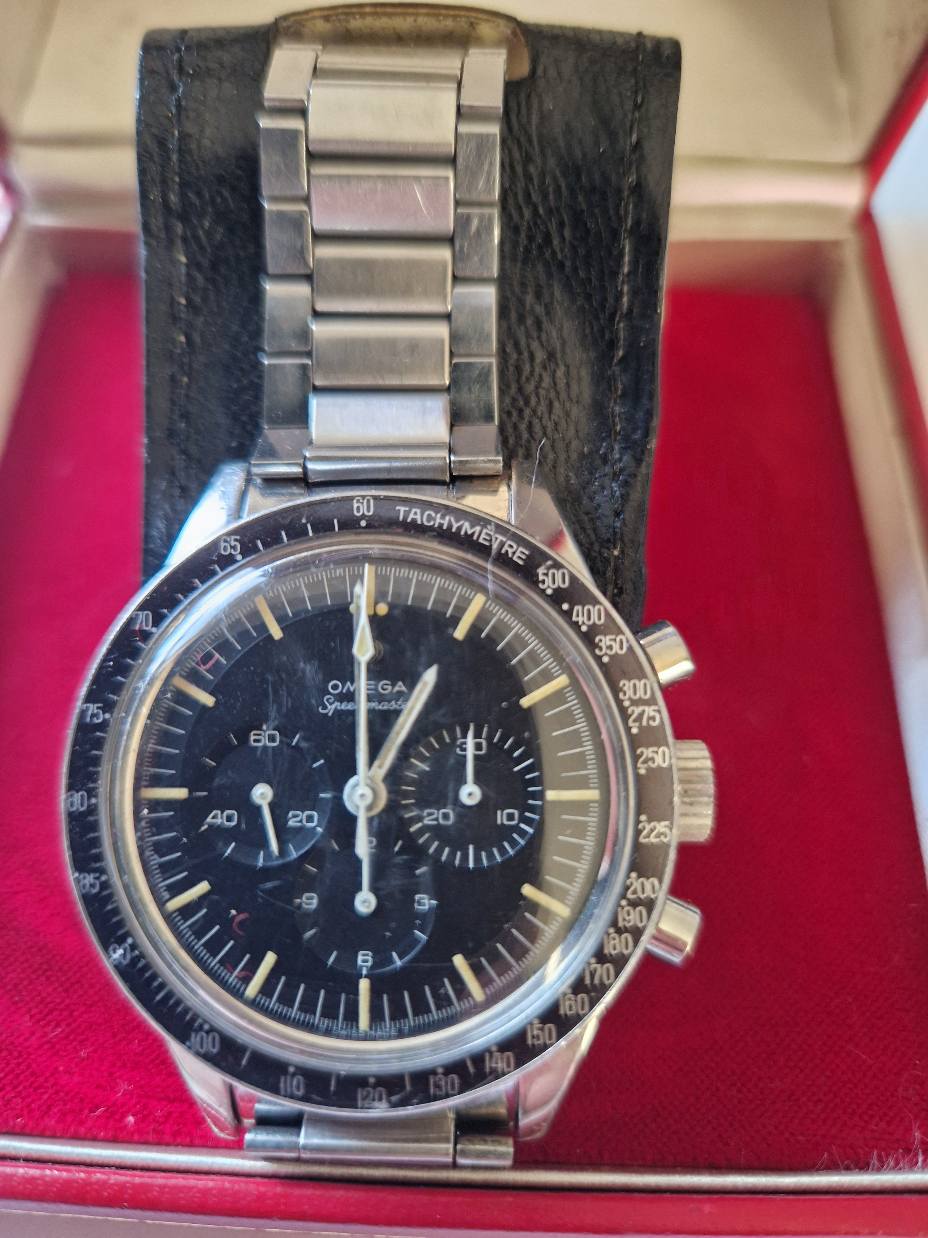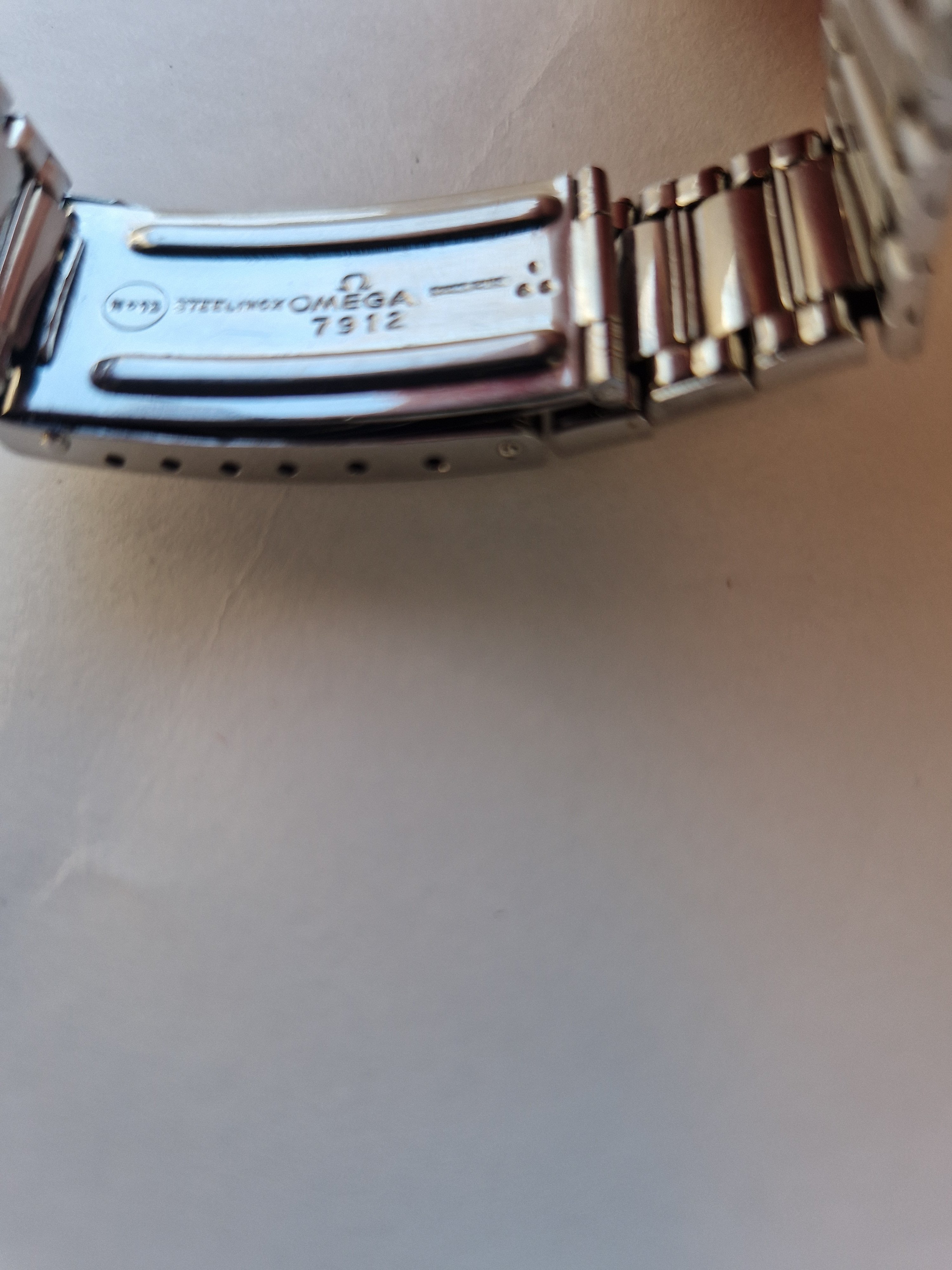 It is on its original bracelet 7912/6 and has its box and some paperwork such as the receipt from the jewellers in the 60's, an insurance certificate, omega service receipt and omega gurantee.
