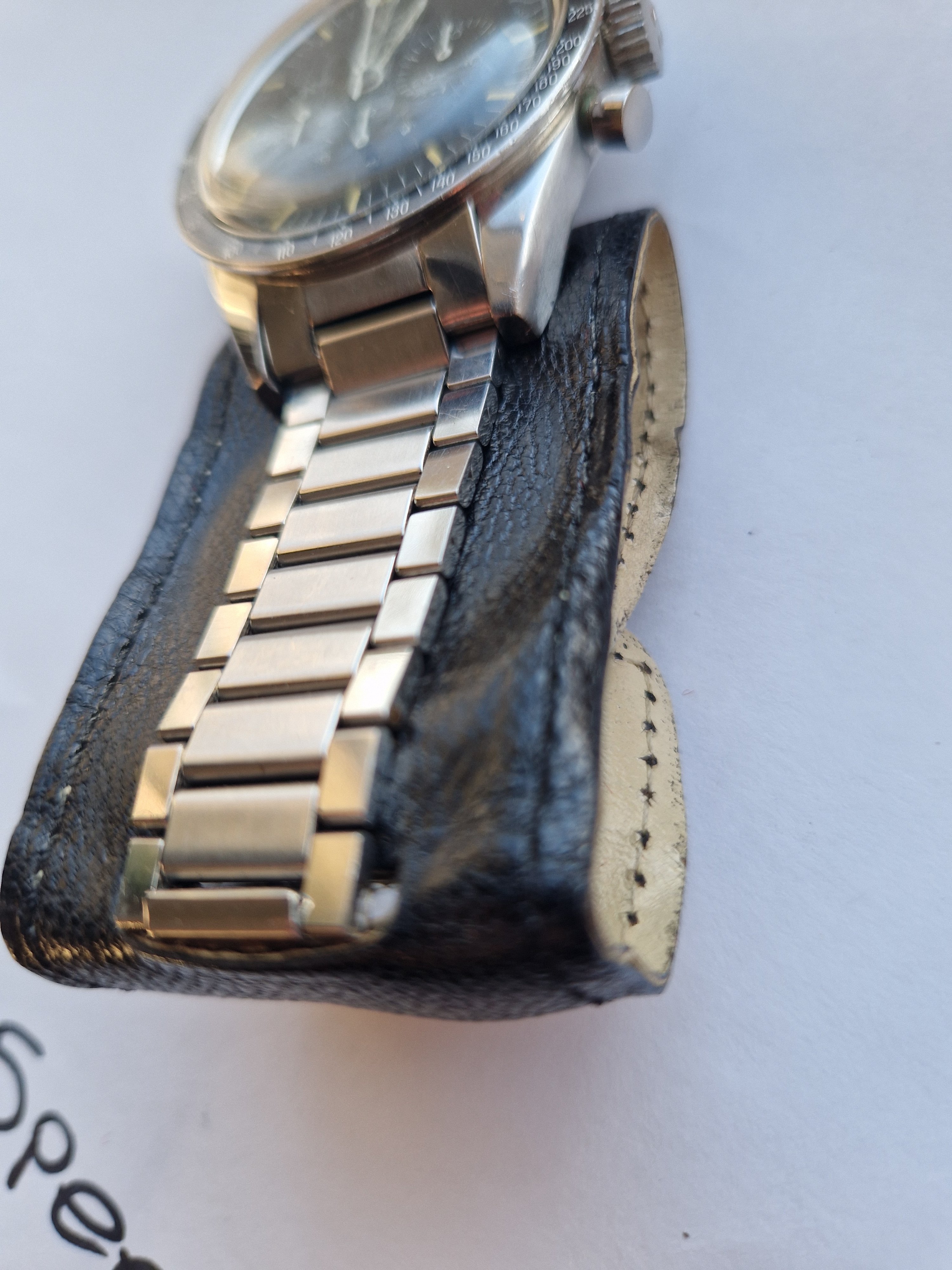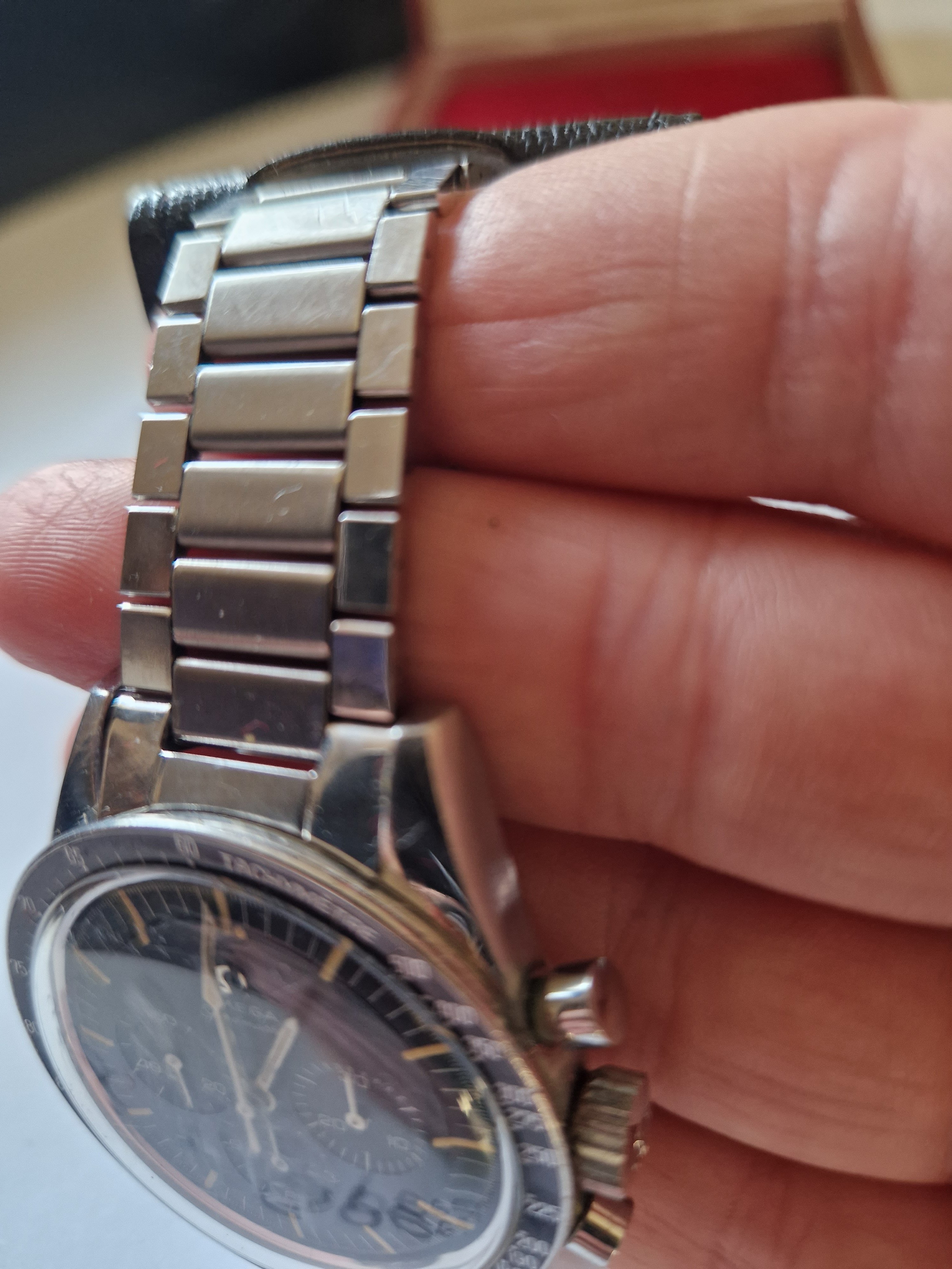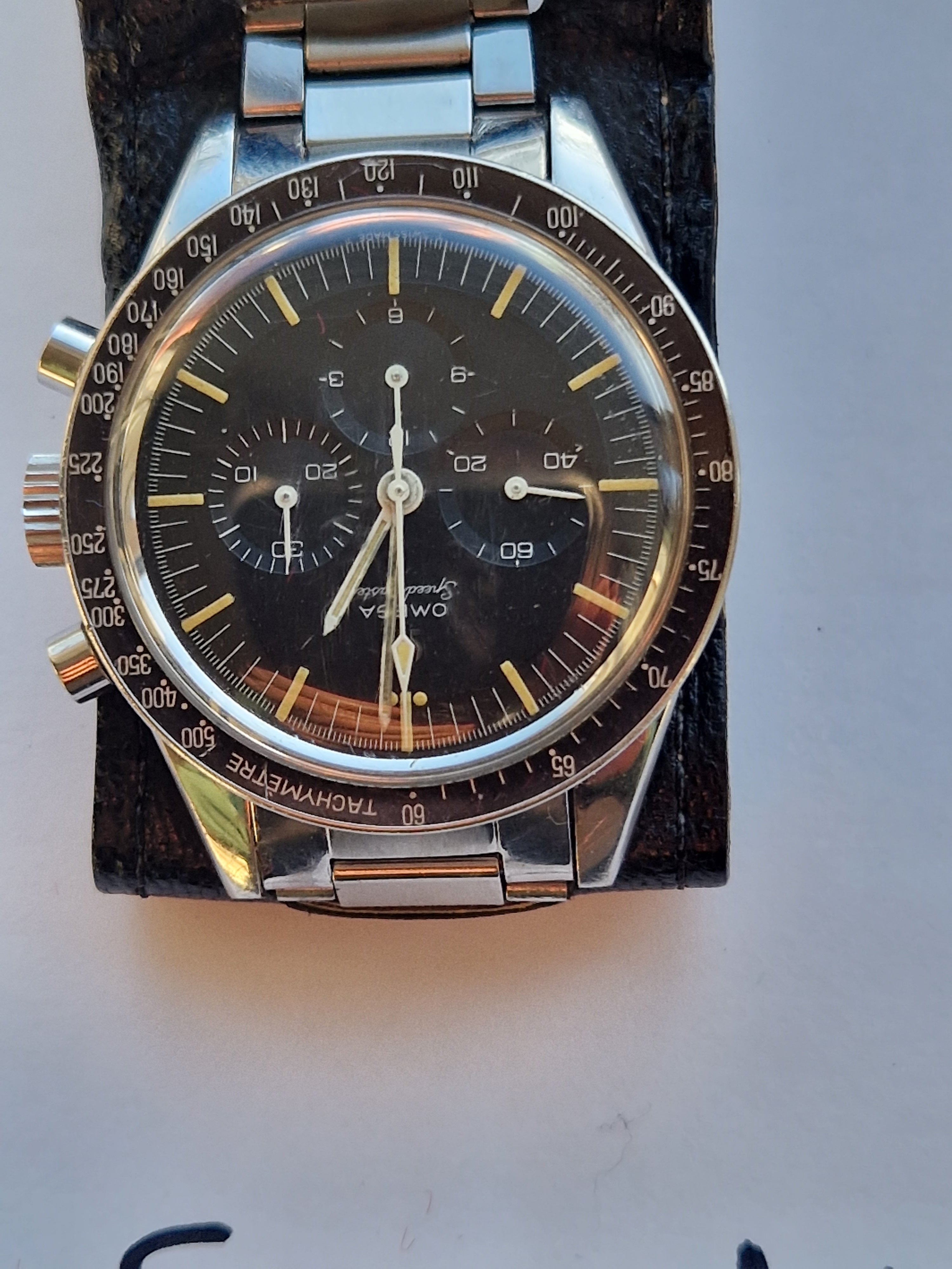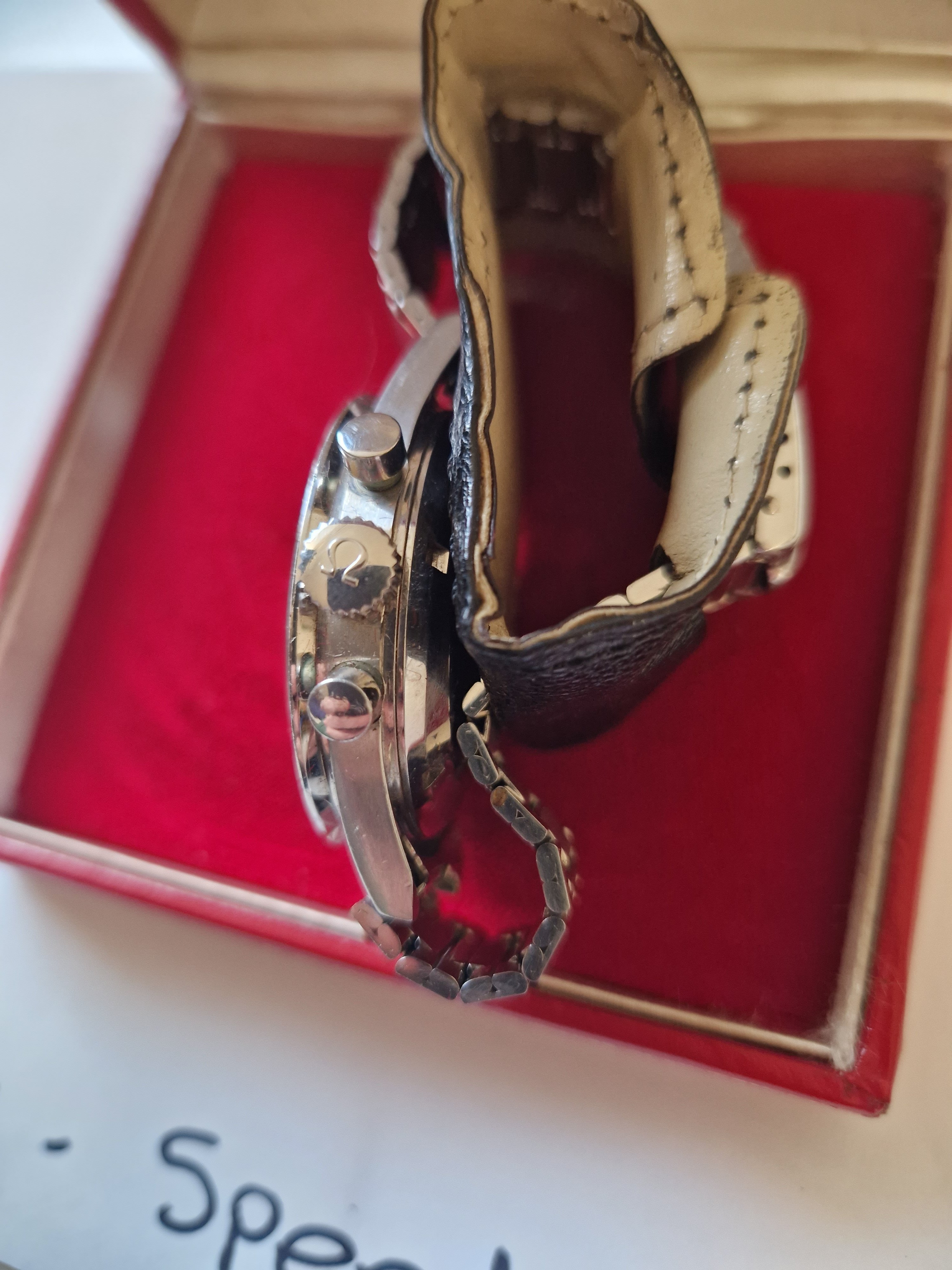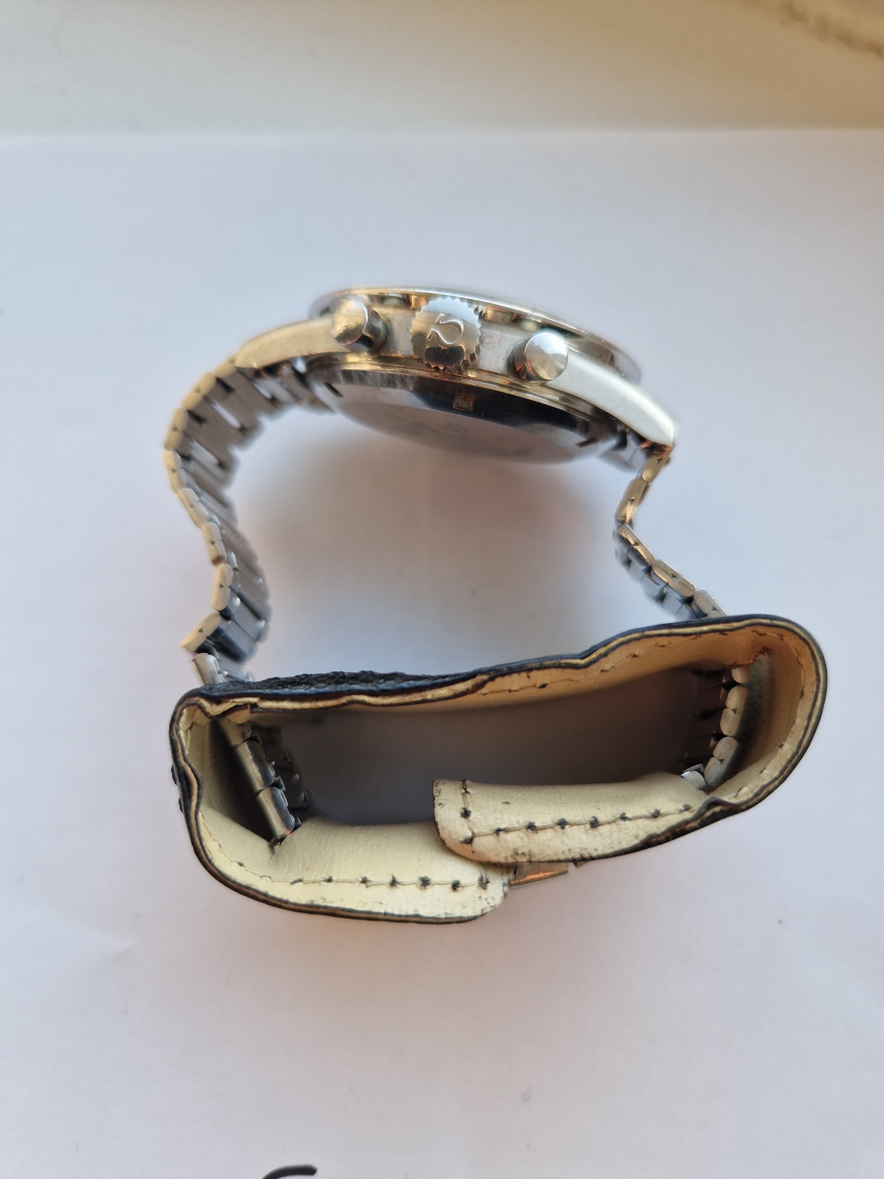 It is on its original bracelet 7912/6 and has its box and some paperwork such as the receipt from the jewellers in the 60's, an insurance certificate, omega service receipt and omega gurantee.