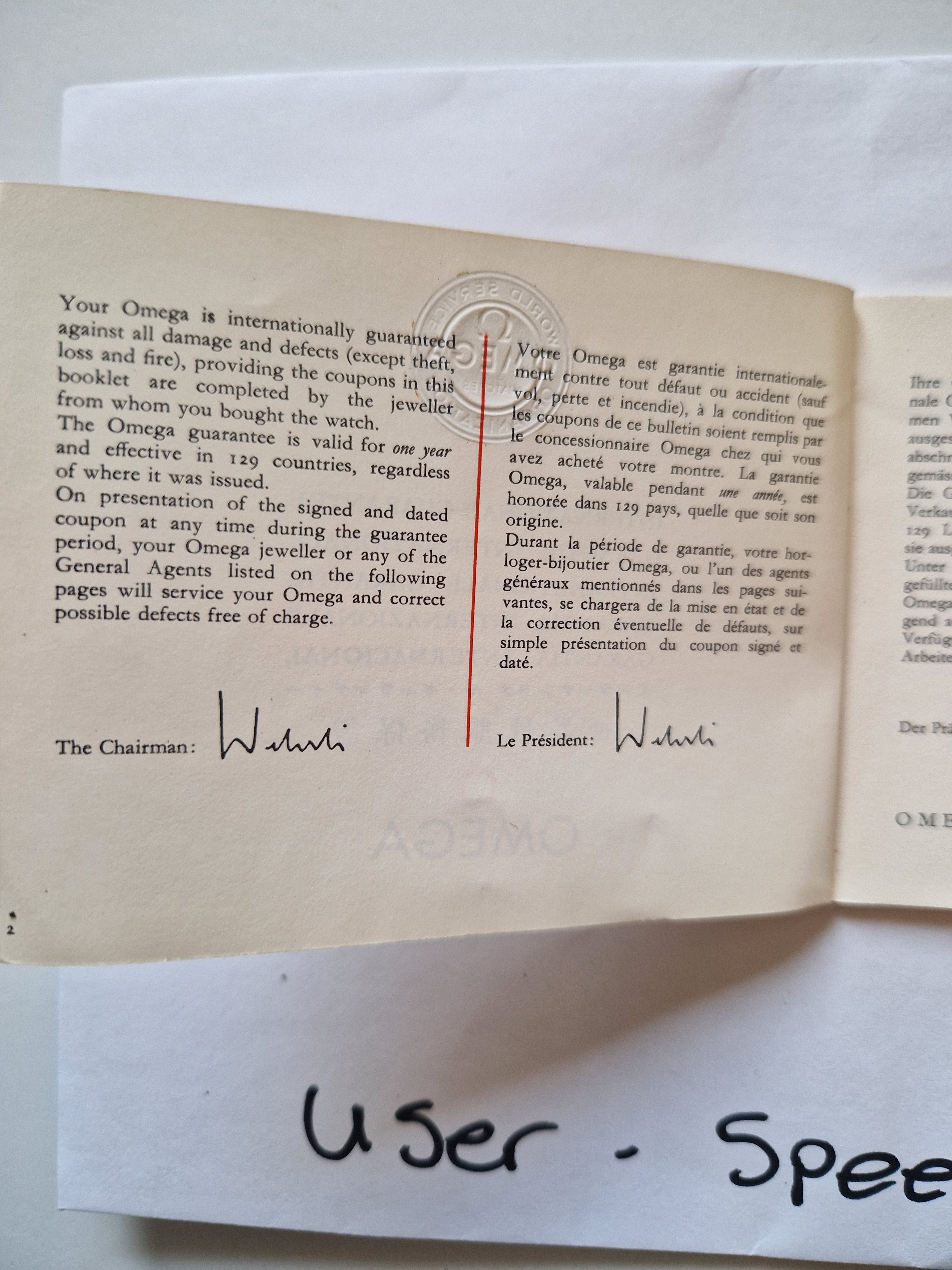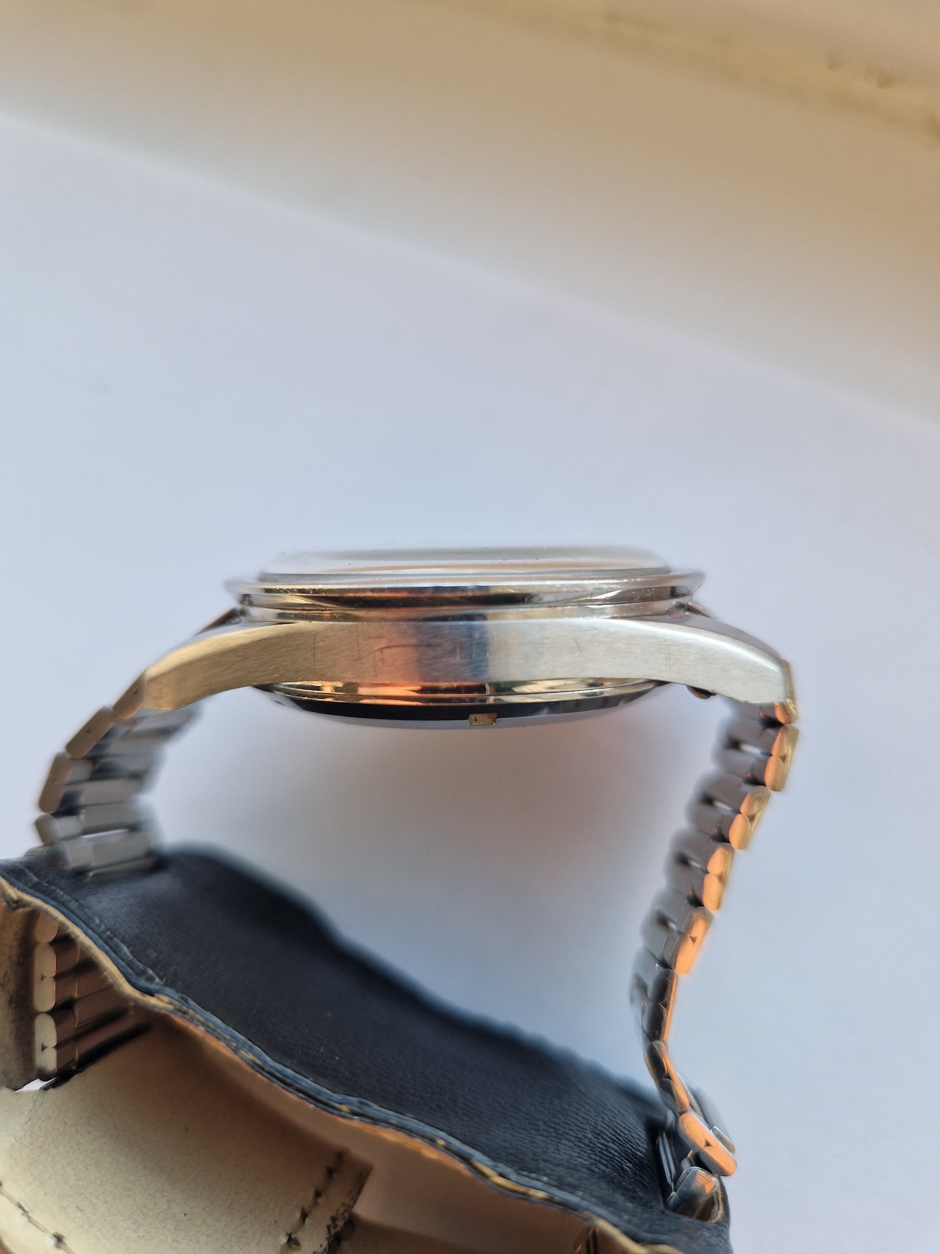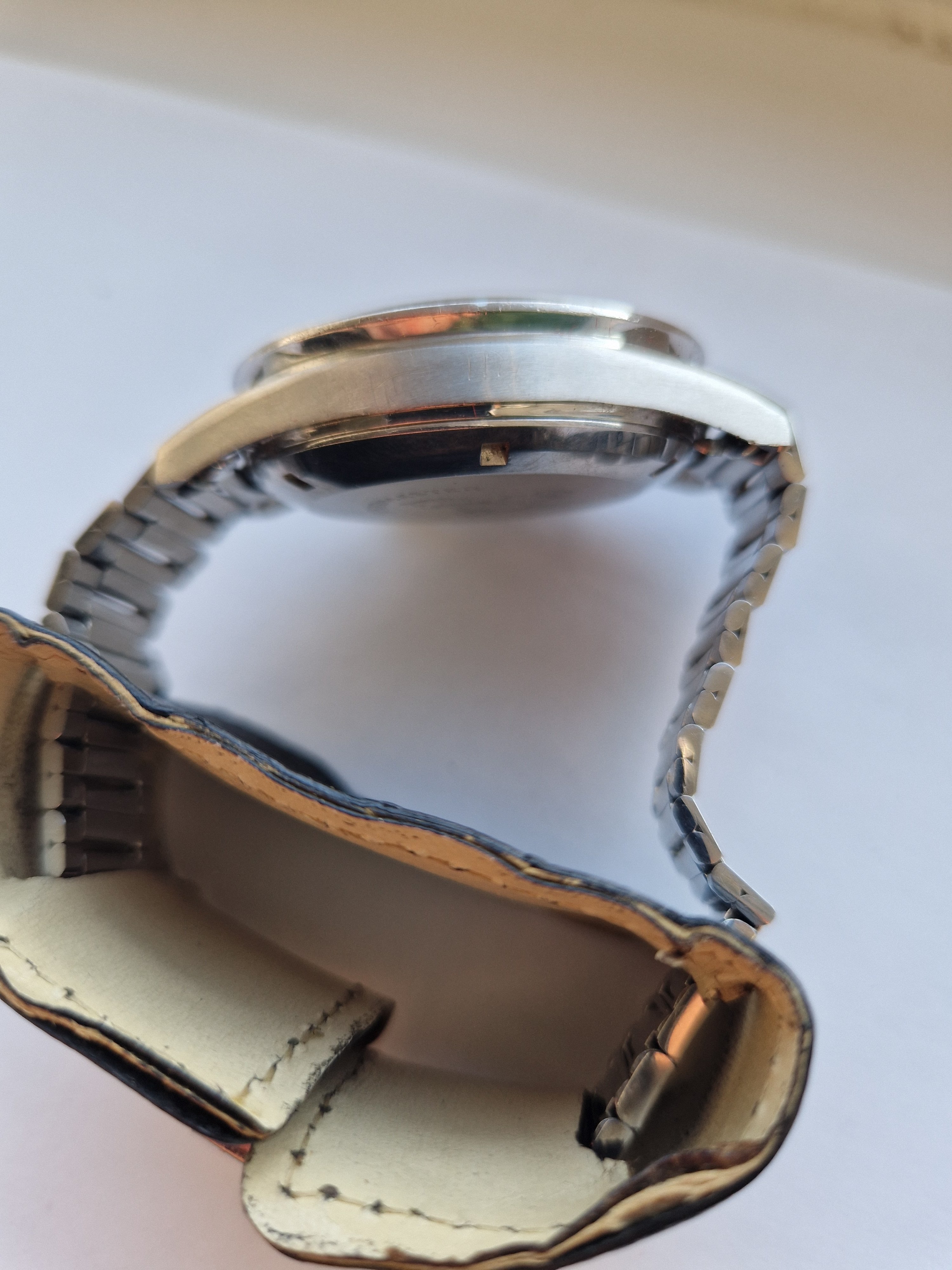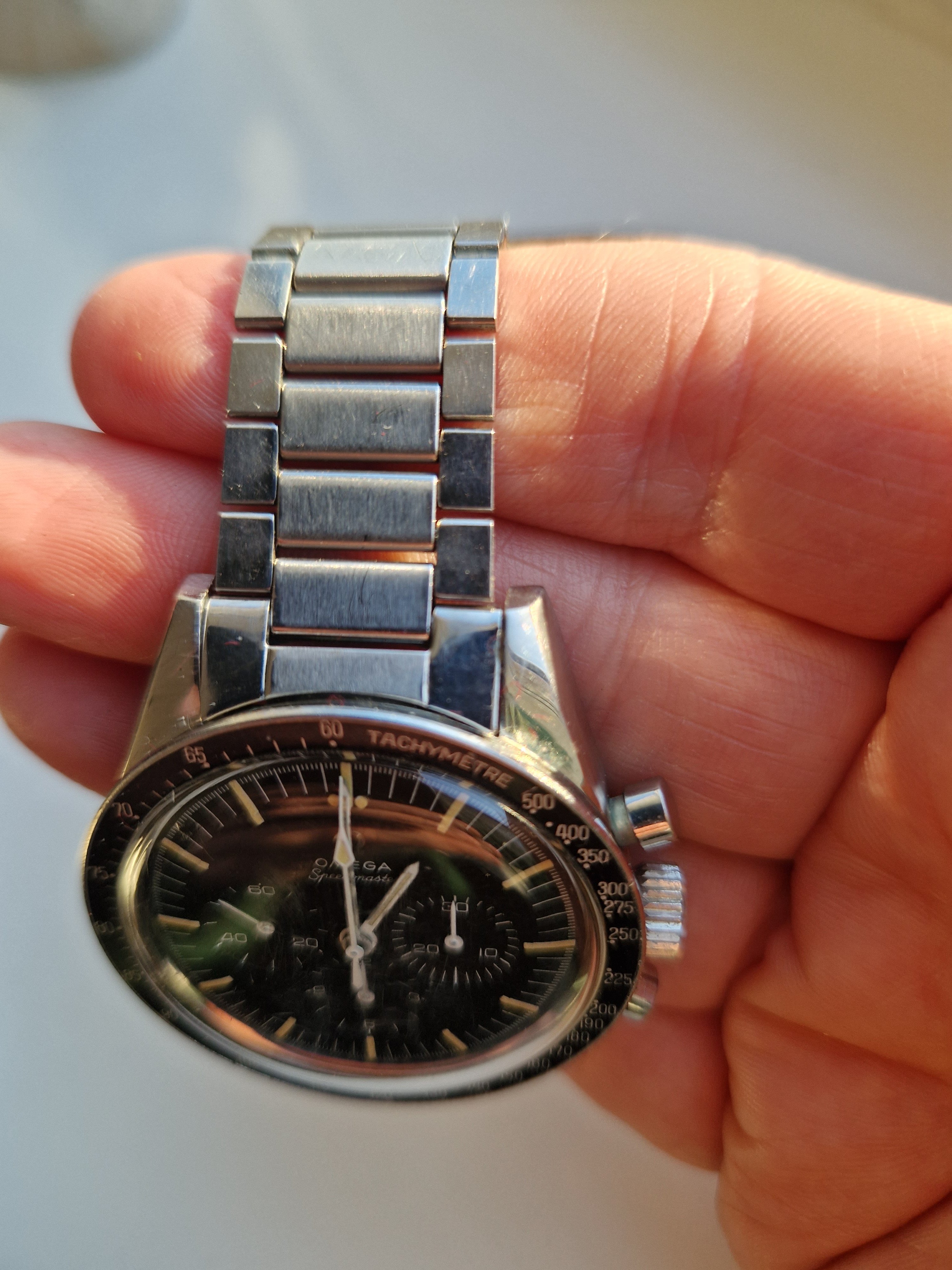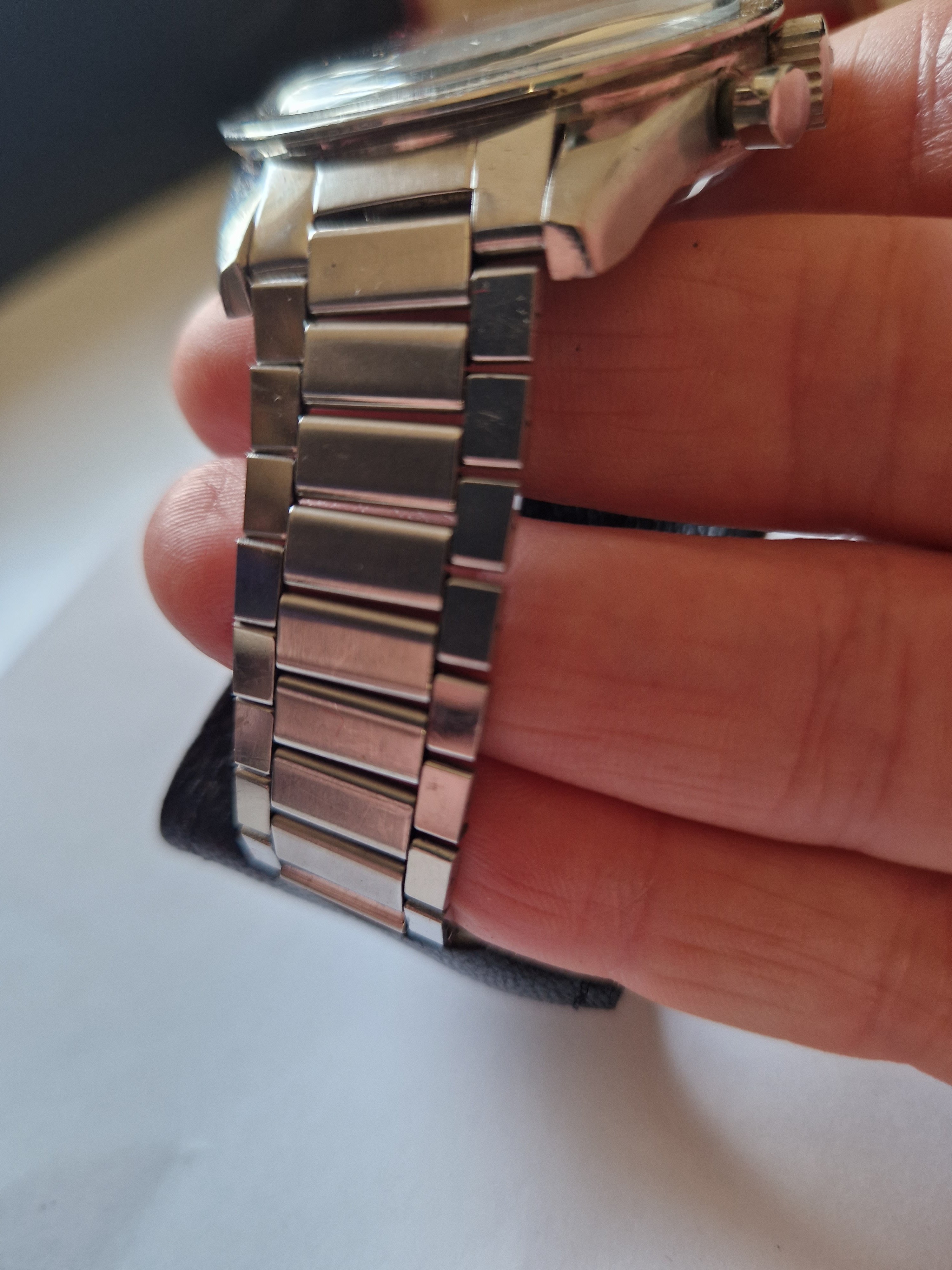 It is on its original bracelet 7912/6 and has its box and some paperwork such as the receipt from the jewellers in the 60's, an insurance certificate, omega service receipt and omega gurantee.