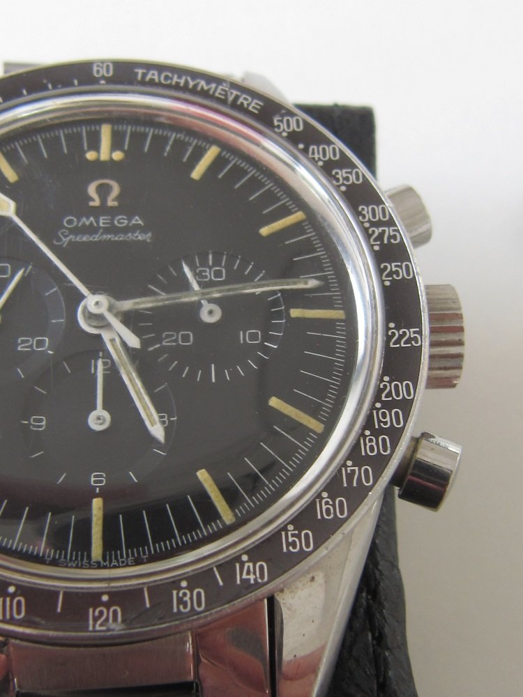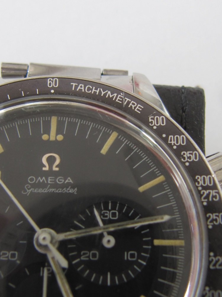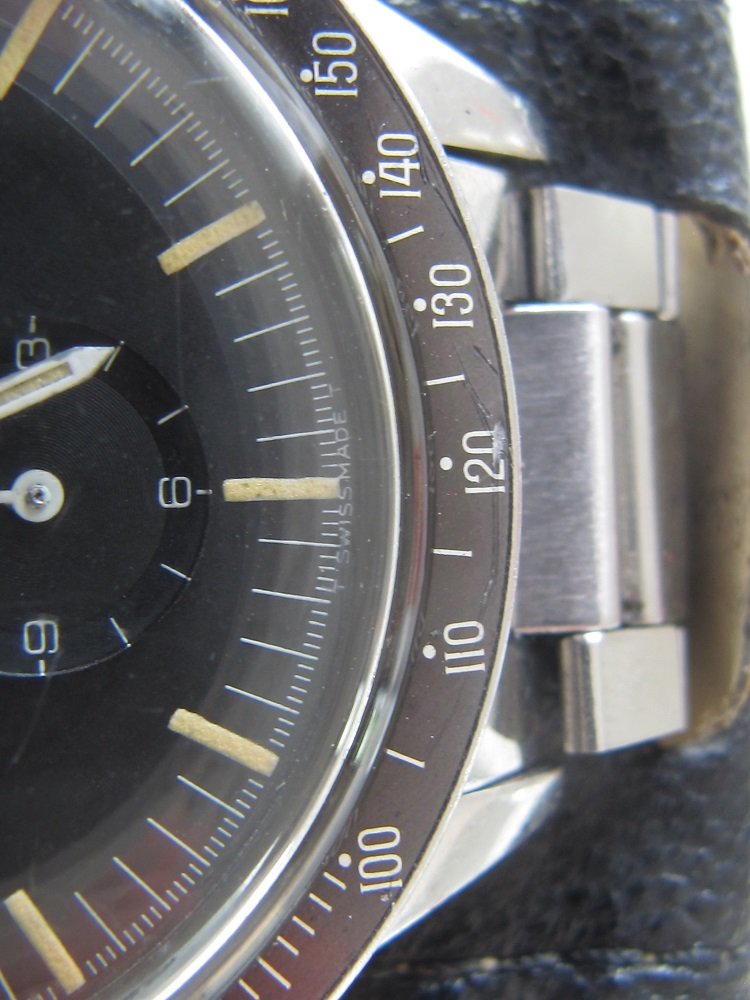 As far as I can see: under magnifying glasses the dial is without scratches or dings or discolouration, the lume is fully intakt and has a nice cream colour. The bezel with little marks on Techymetre and around the 6 o´clock position. Bezel has a slight fadeout to the exterior. Too bad the minute hand has discolouration on the white part. Allscratches are on the crystal: