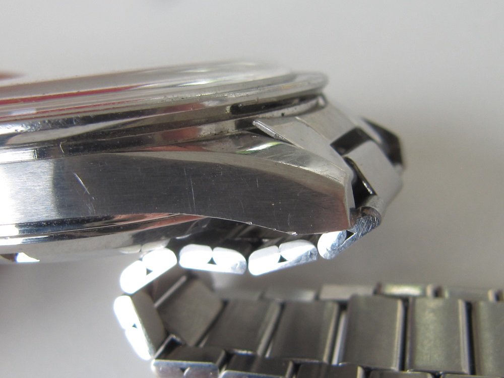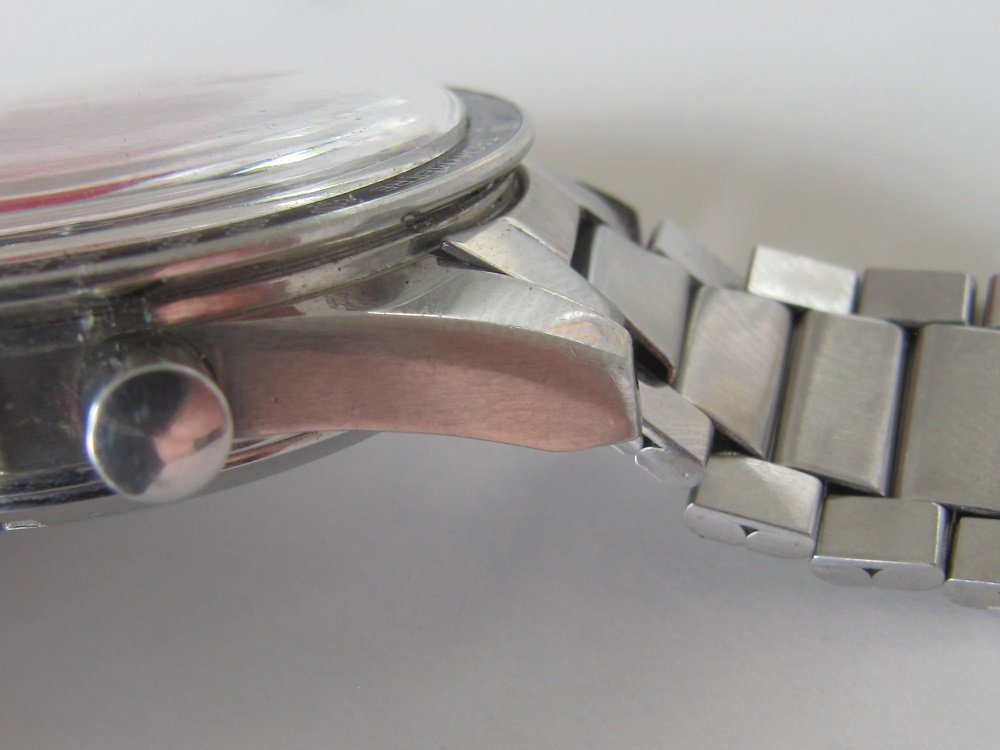 The bracelet 7912/6 with its elastic links fully intakt, its endpieces sit firm. Almost expected this: quick-release bars on both sides. Date should be ok for a 64: