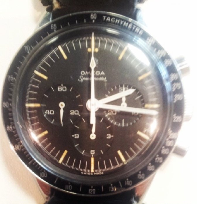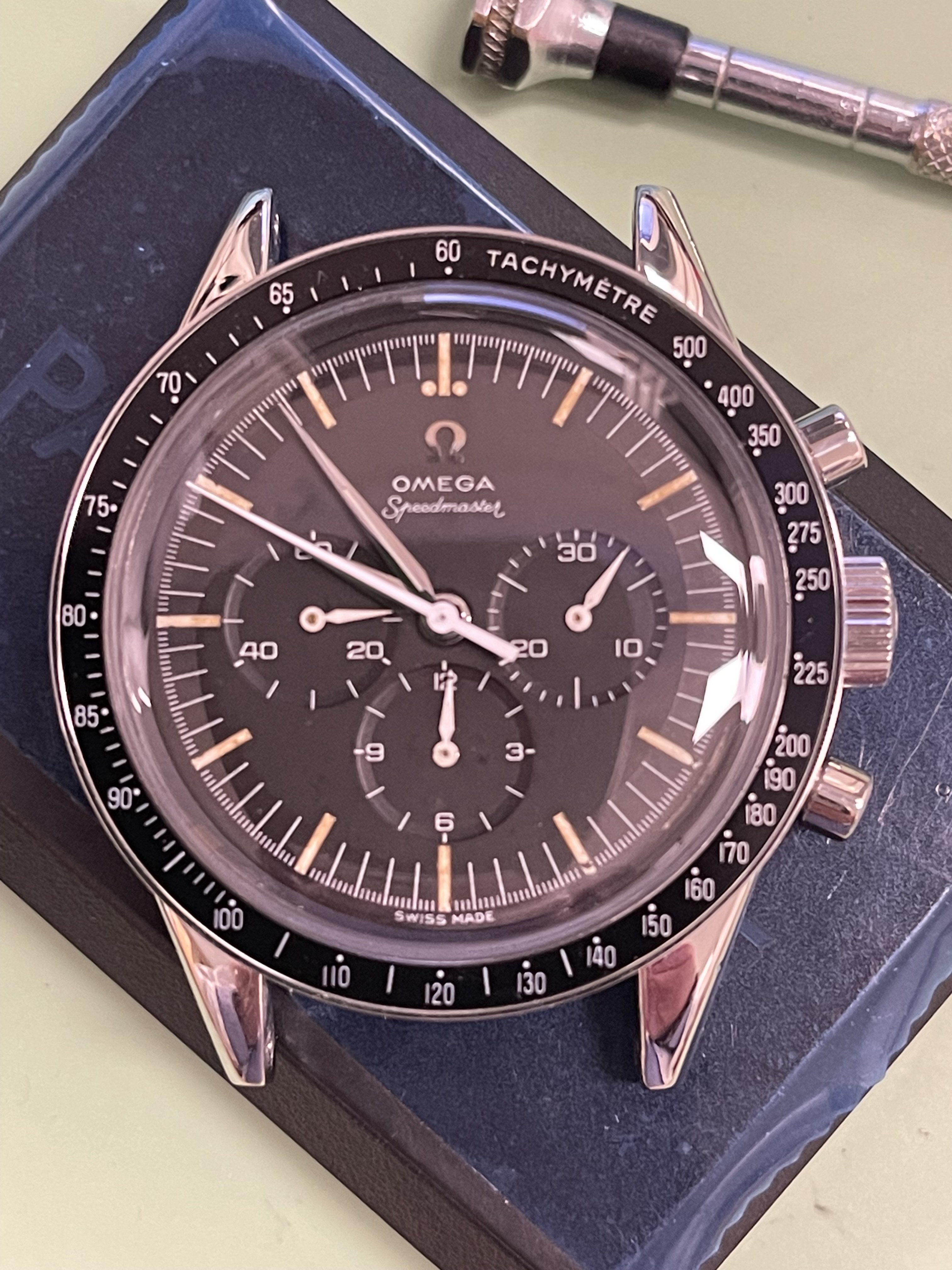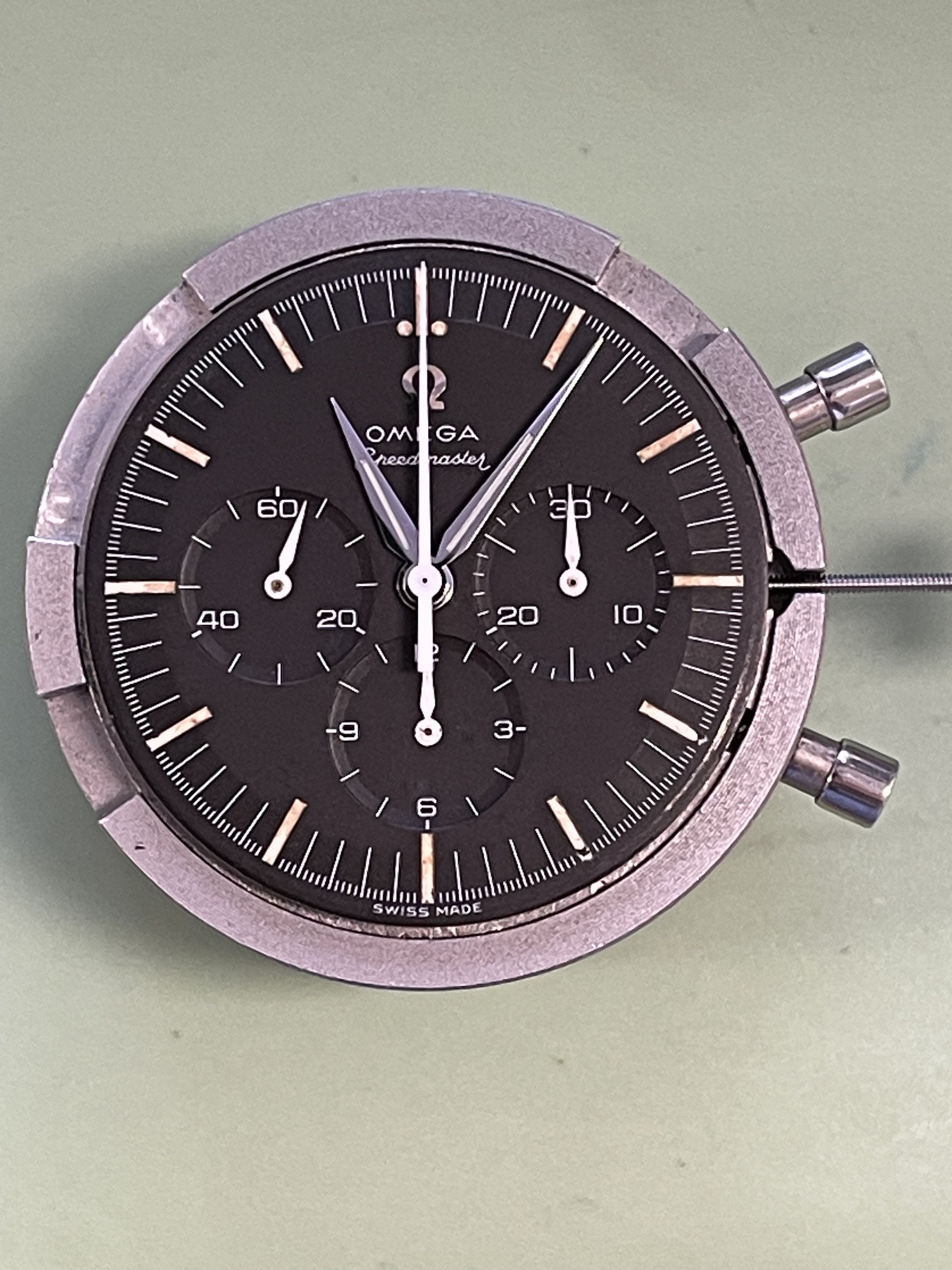 Photo of watch prior to service. new hands are original from omega and period correct. As you would be aware, any new parts are generally replaced with current day spares. Very lucky to find original hands for this model from omega. It’s been a daily wear by me for the last 45 years. The fact that it looks brand new after 65years is amazing. all servicing has been done by omega and only original parts used. I have replaced and kept the base 1000 bezel.