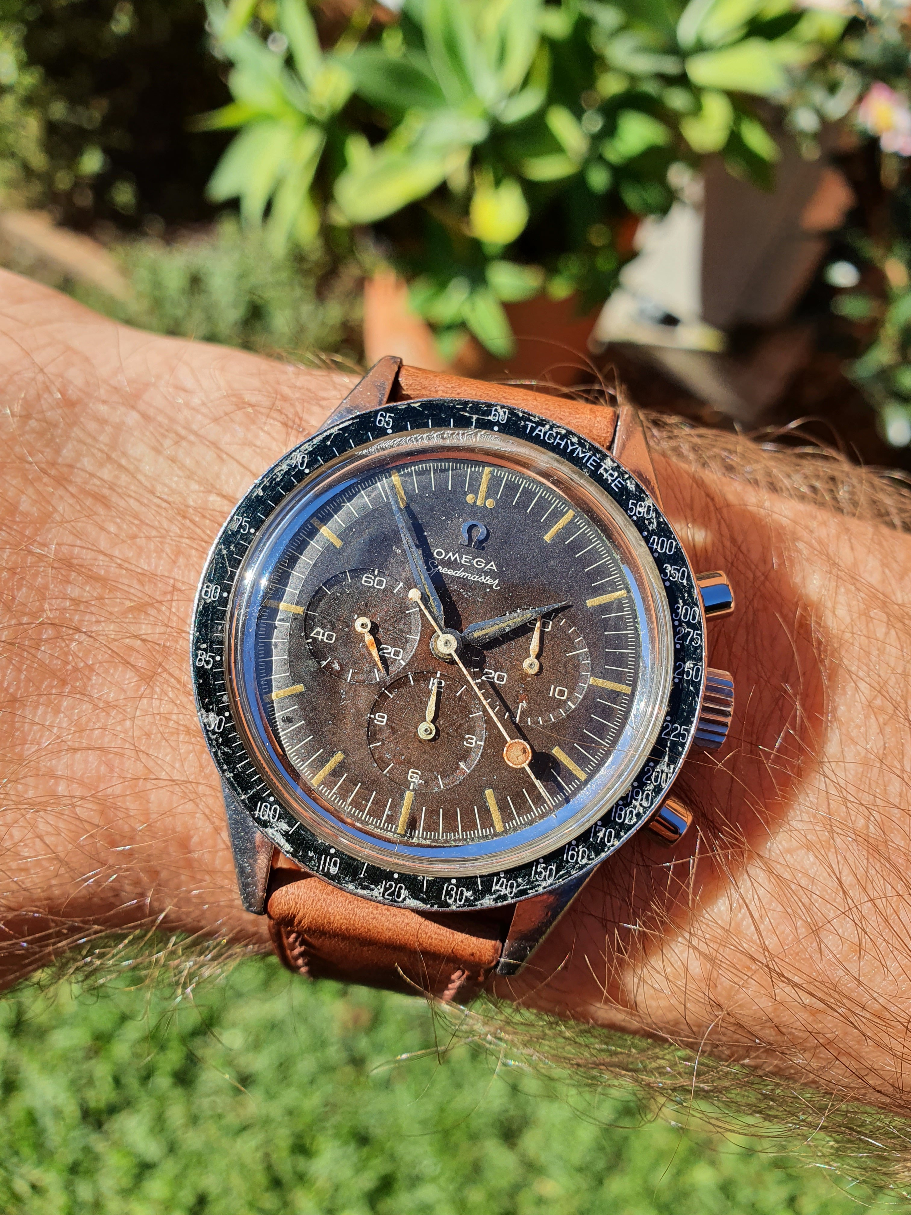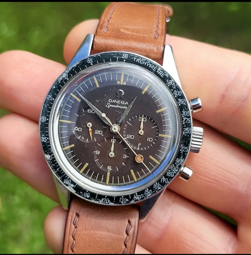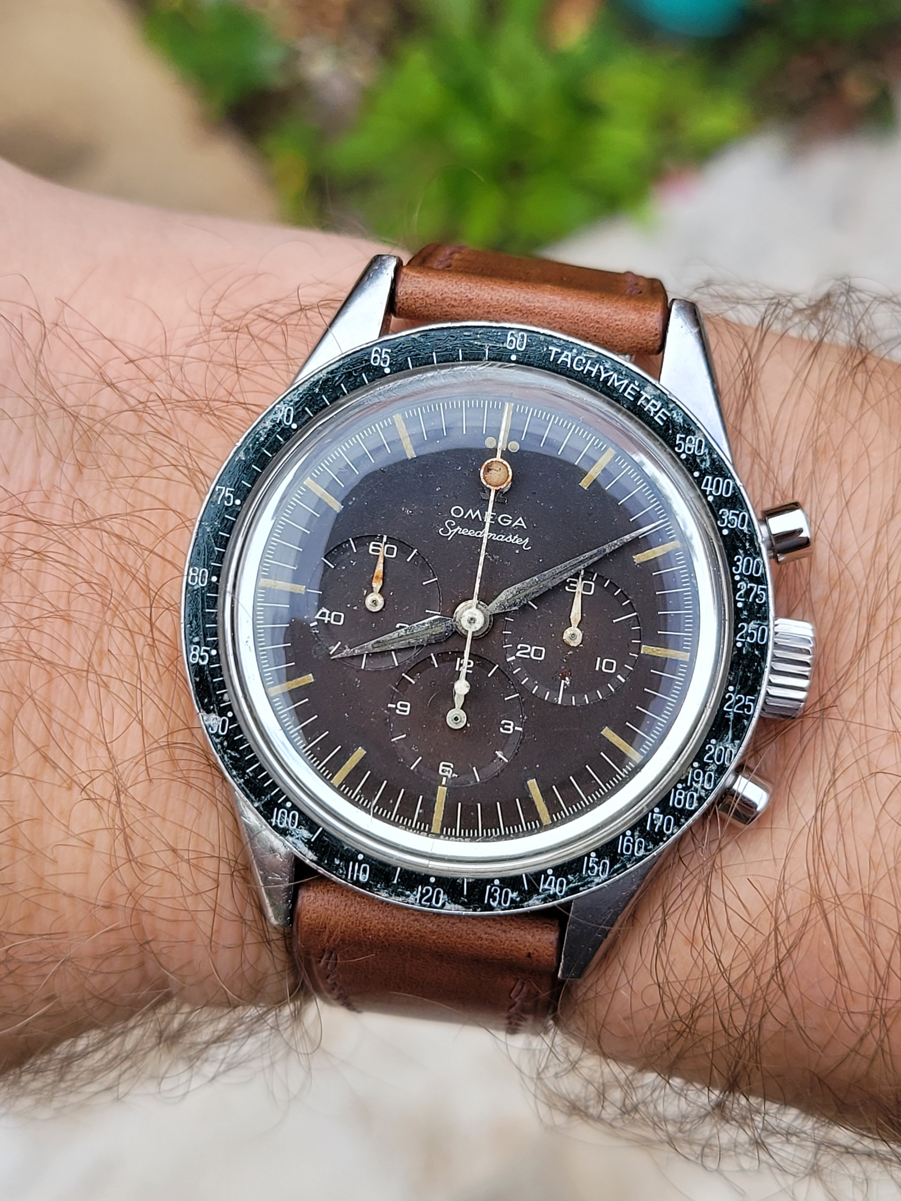 Speedmaster 2998-2 1960 with Lollipop hand and heavy patina.