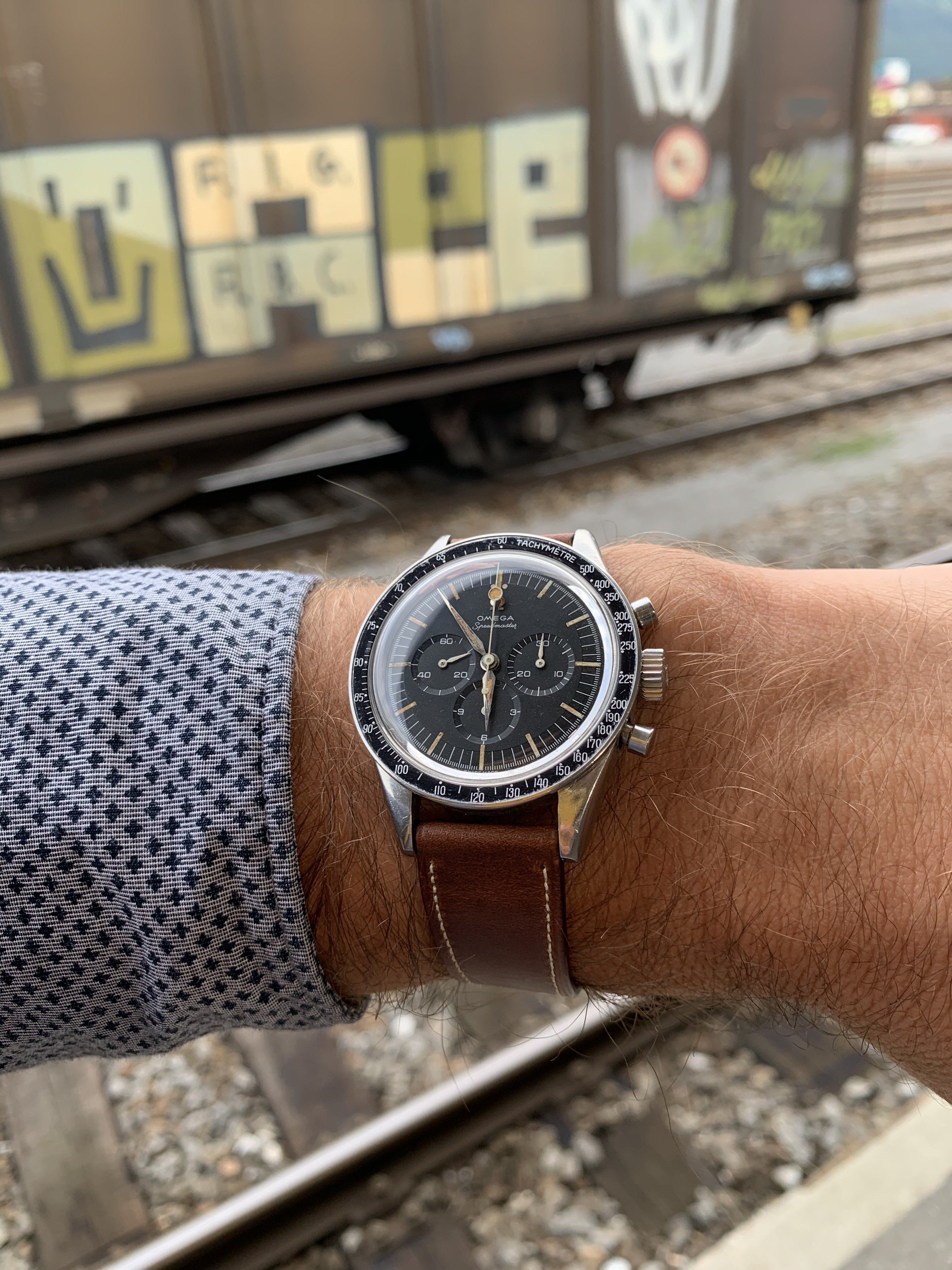 The bracelet it has is good but not Omega. So I thought about the 7912/6 route which needs around £3K ish to get a decent original, (I have since bought a 1965 JB Champion mesh bracelet but not tried it on with the watch yet, going down the astro route !! ) other thought is leather strap. I am aware originally the 2998-4 was worn with leather as well as steel but wanted to ask if I tried that route is it worth looking at any NOS leather straps or just sticking to a decent modern variant by Omega or the many very good strap makers around on the net. Would appreciate any view you guys have on leather straps for the speedmasters. Thanks all