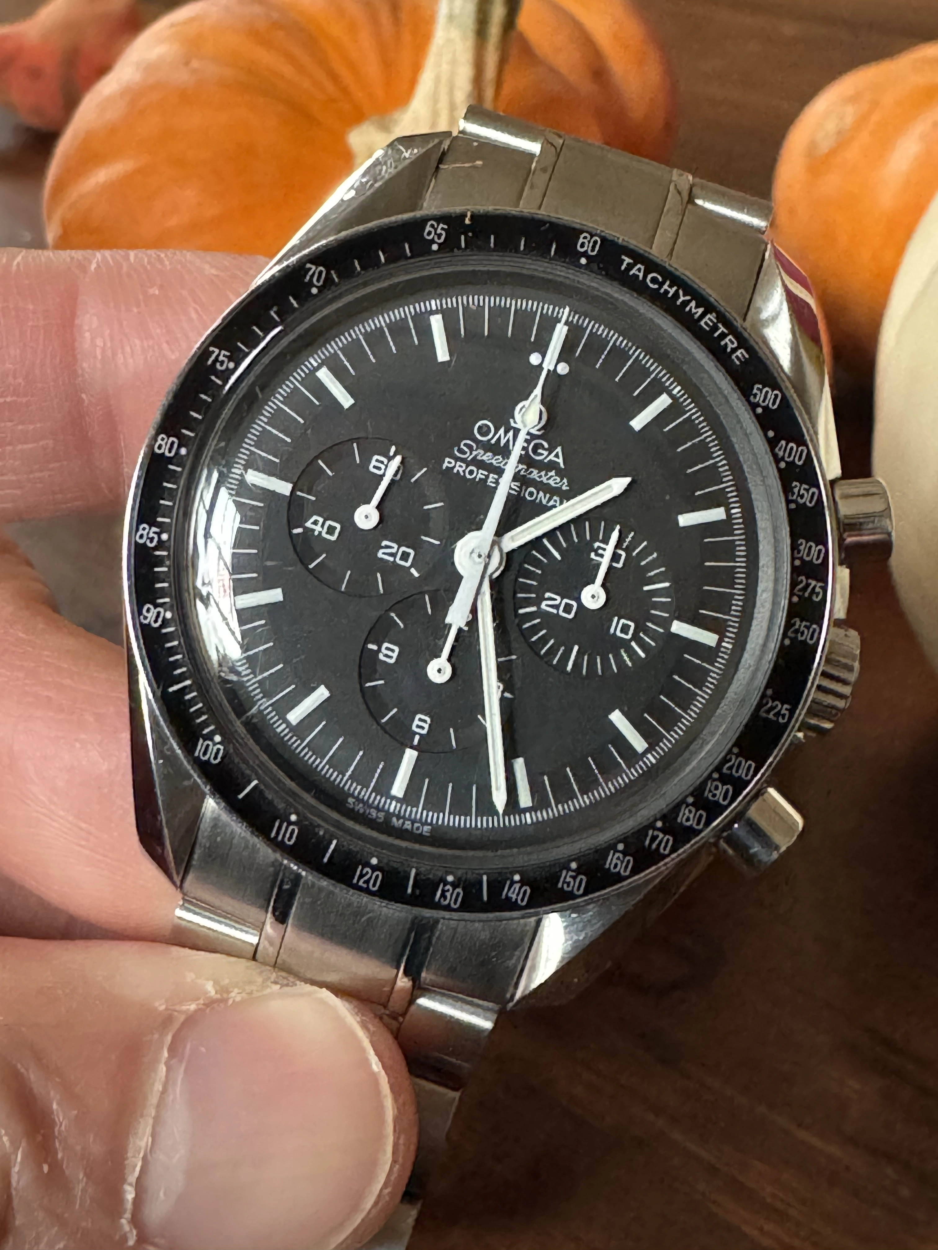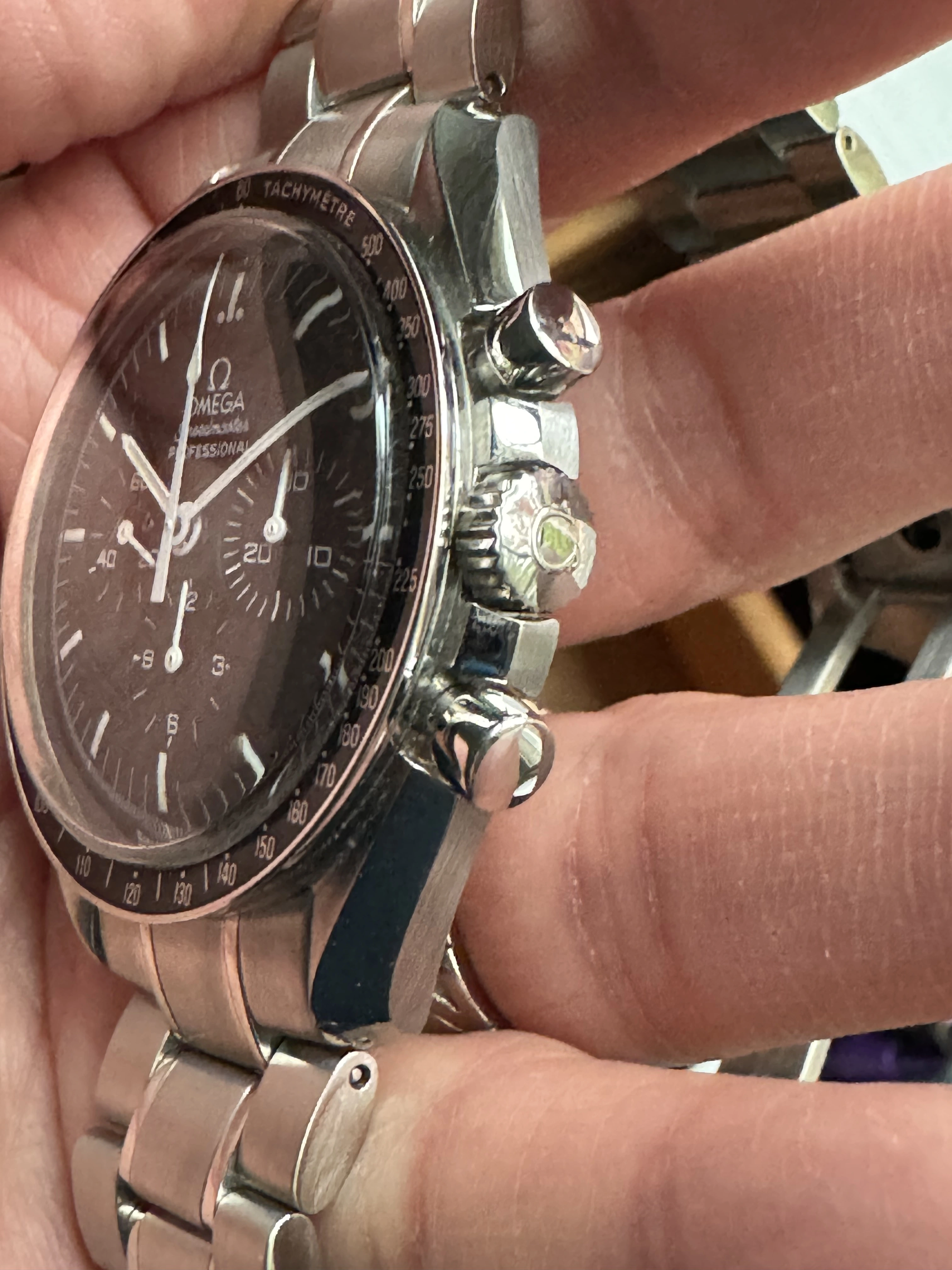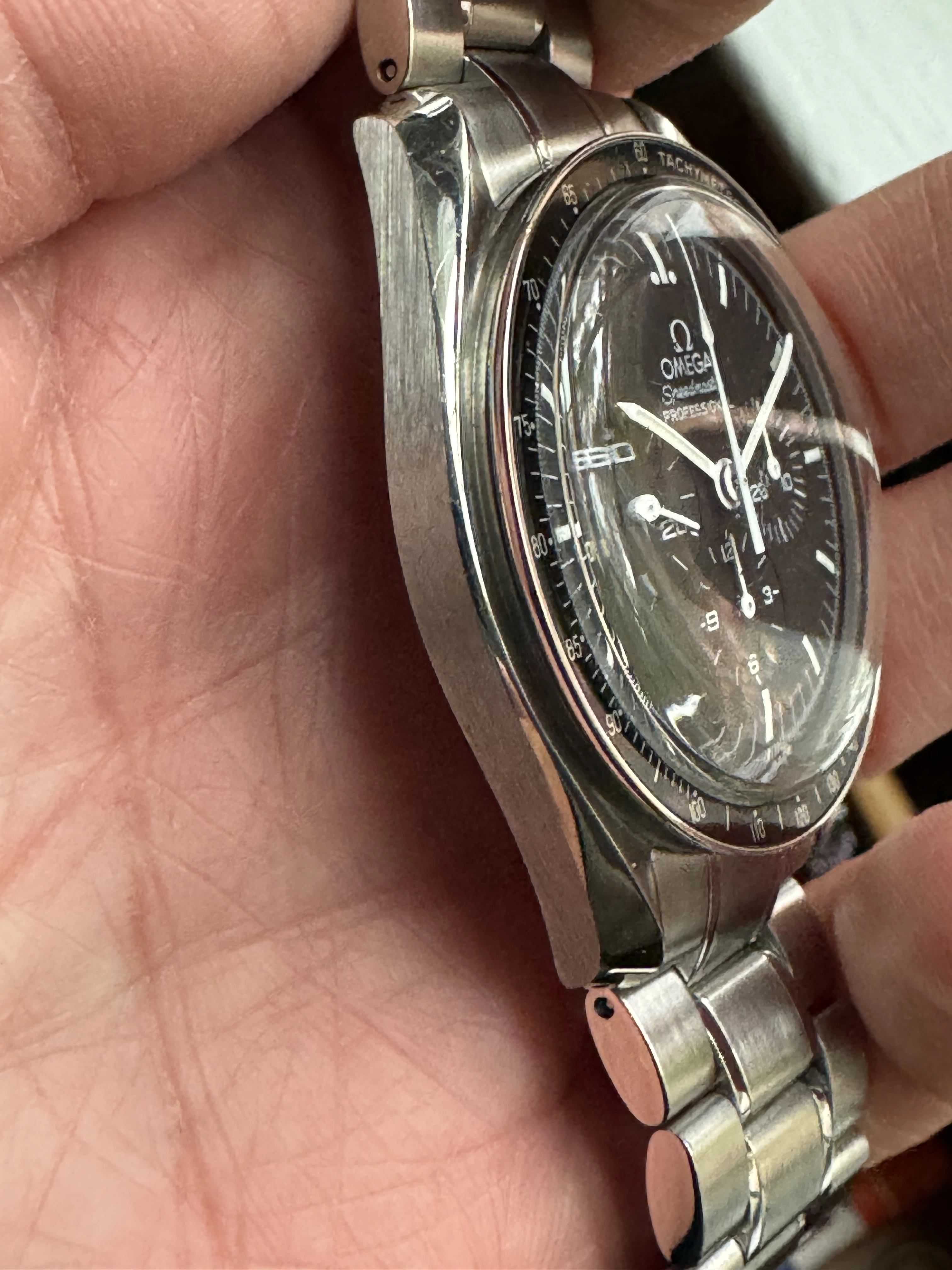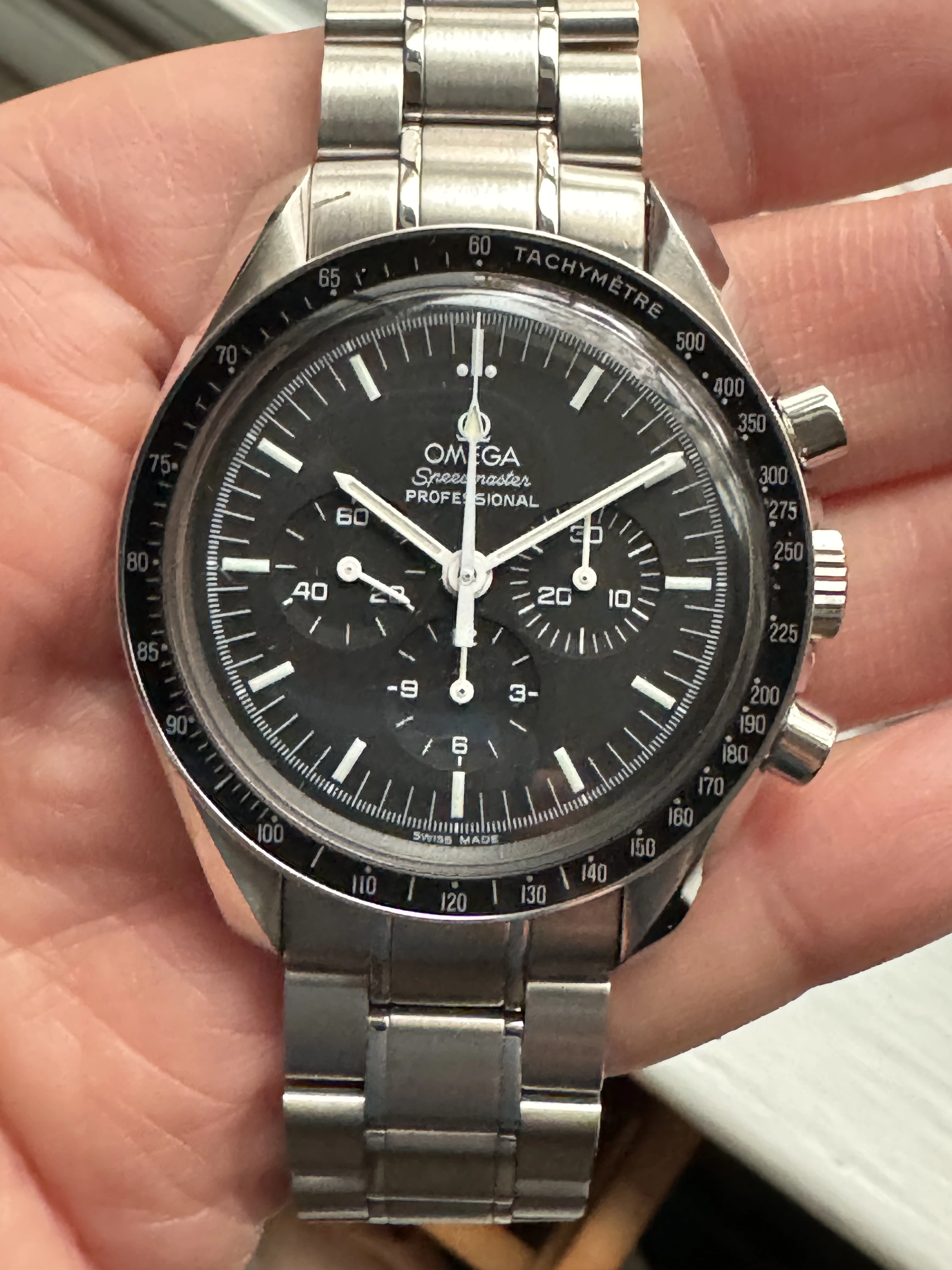 ·For sale is my Omega Speedmaster 3570.50. Comes with box and papers. Was bought from Crown and Caliber (RIP!) in 2017 as a serviced watch, worn sparingly since then. Comes with inner and outer box and papers, card dated 2008. Keeping good time, everything working fine, has the bracelet, has not been timed for accuracy but I haven’t noticed any issues at all.