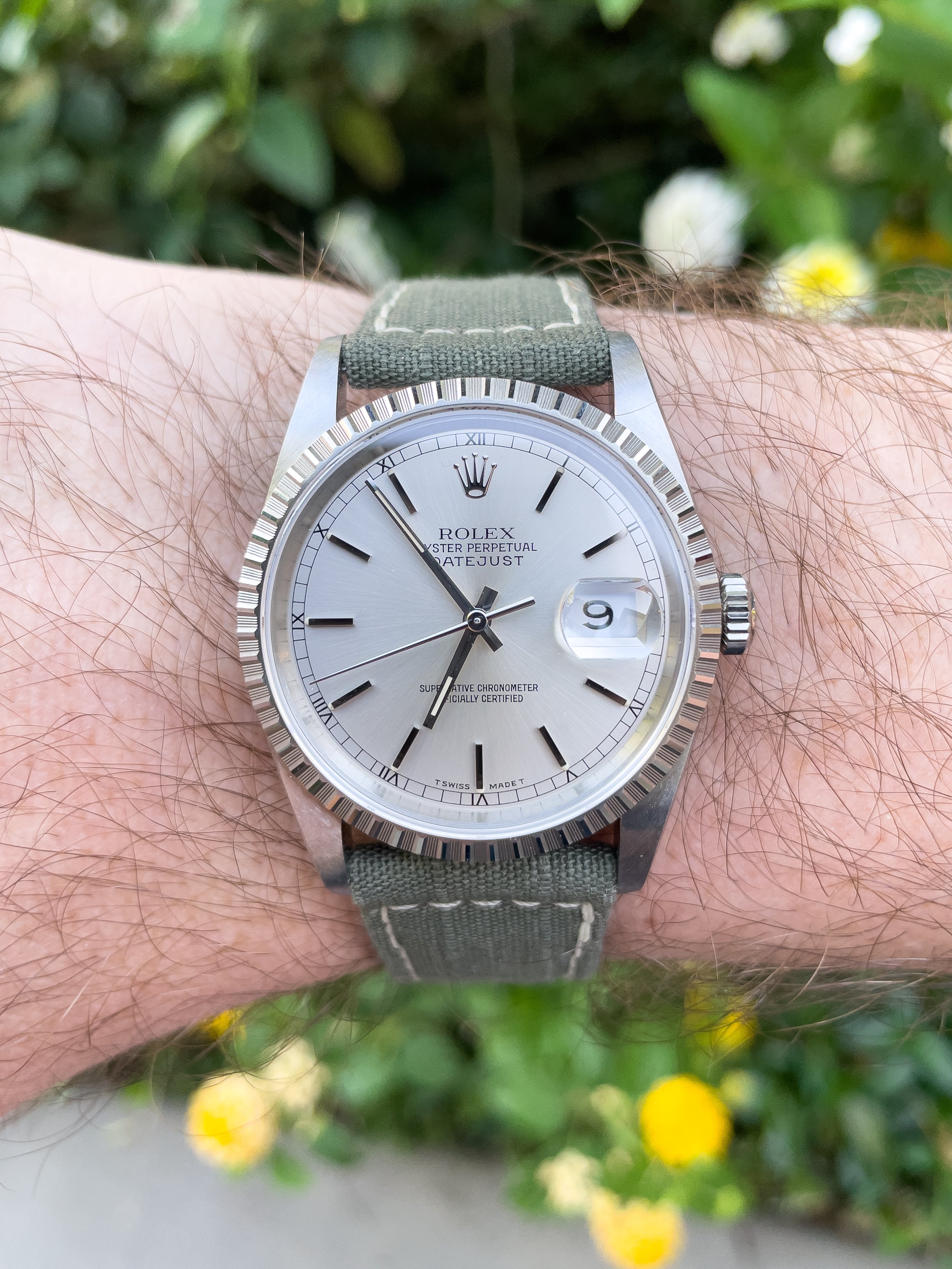Thanks! It’s B&S’s Ripstop strap. I bought it 3 years ago and like how it has aged. I have a blue version of it as well and look forward to whenever it gets to this stage too. The green strap lives on my CASD but while it’s out for servicing, the strap has been making rounds to my other watches.