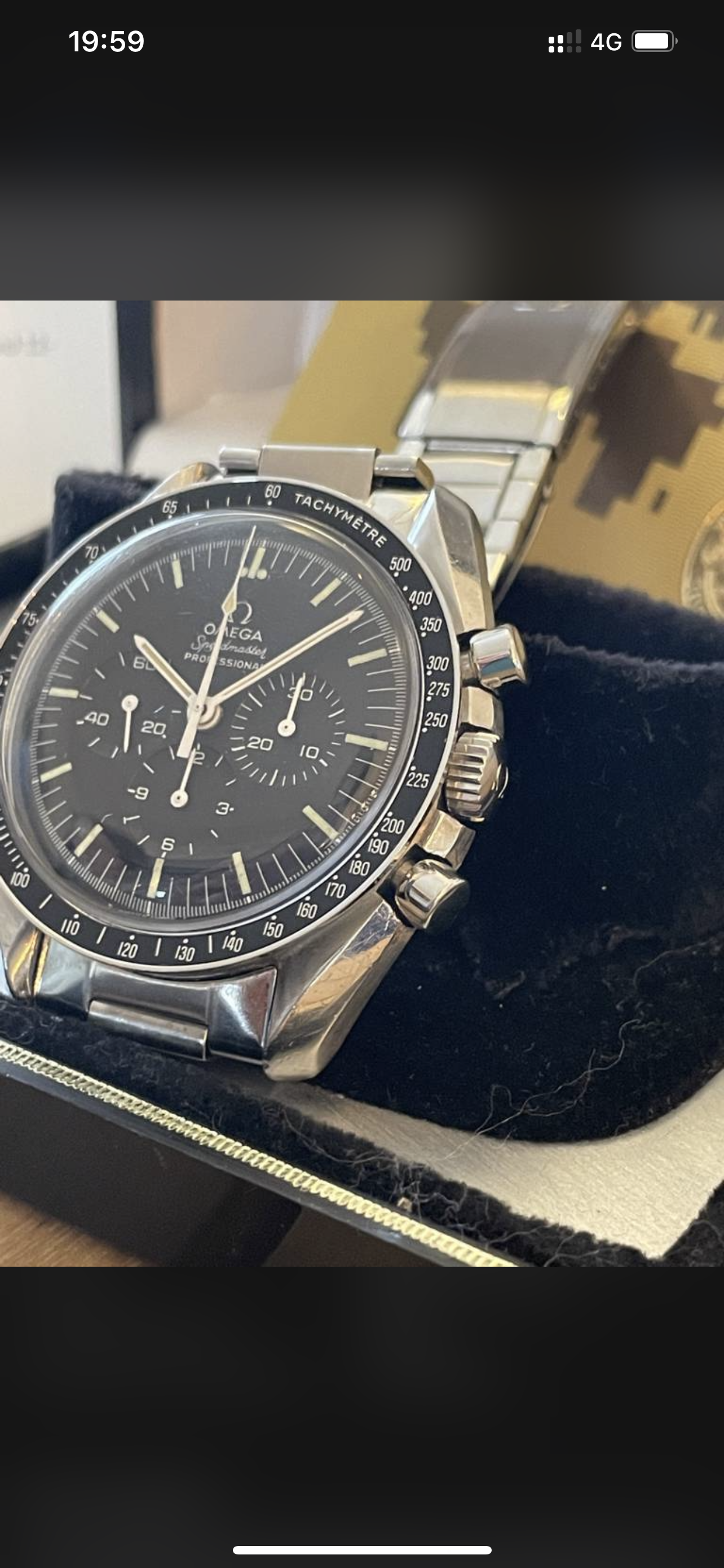 I agree that the combo is appealing, it's nice to have an OEM bracelet as part of the deal. Understand your nervousness with vintage Speedies -- there are a lot pitfalls. It's a matter of ruling out as much of the questionable stuff as possible. At least this one still has its original bezel. It looks like it has been loved, worn, serviced. Speaking of which, did you get a picture of the movement, just to make sure the serial number is appropriate, and that the casebook is original 145.022-69 and not a service part?