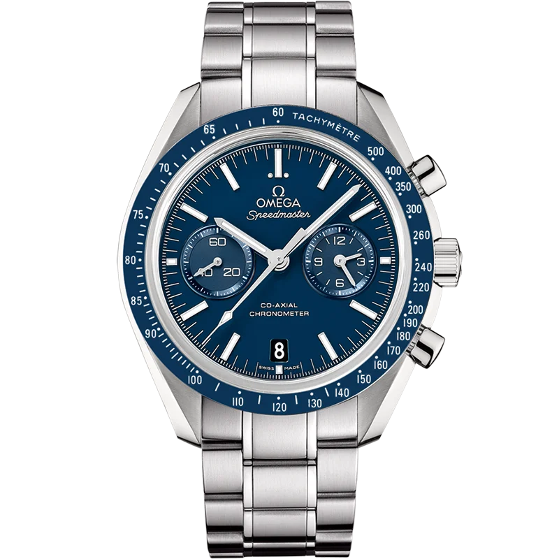 https://www.hodinkee.com/articles/a-week-on-the-wrist-the-omega-speedmaster-dark-side-of-the-moon). Probablemente porque el estilo es tan cercano al Speedmaster Professional tradicional, Omega opt贸 por llamar a esta referencia el "Moonwatch Co-axial Chronometer". Esta es una elecci贸n un poco controvertida porque para los oficiales de Speedmaster, el t茅rmino moonwatch se refiere a un Speedmaster de cuerda manual, con tres subregistros, sin fecha y, por lo general, un cristal de hesalita (