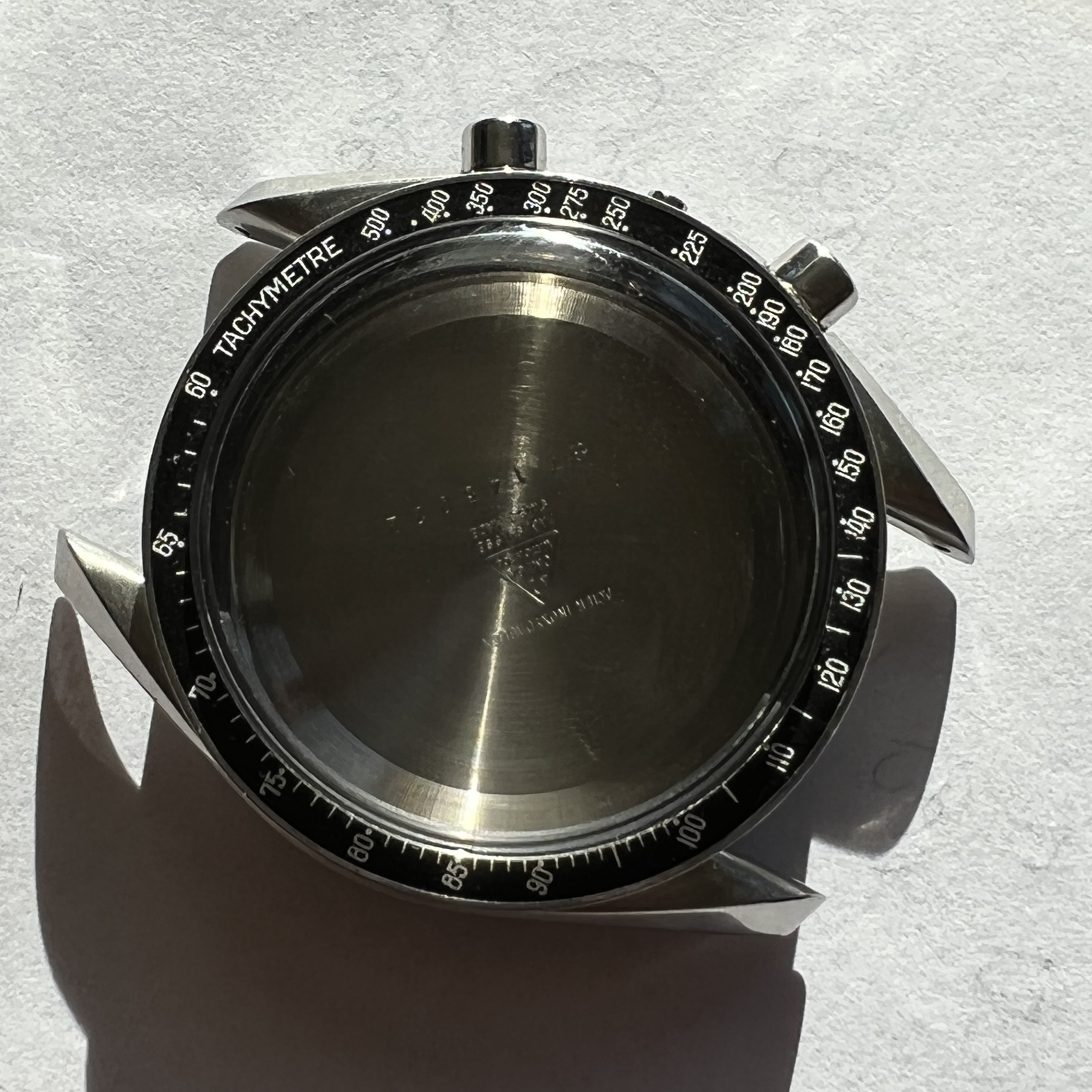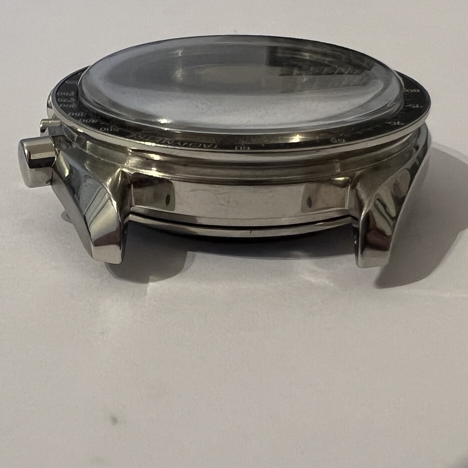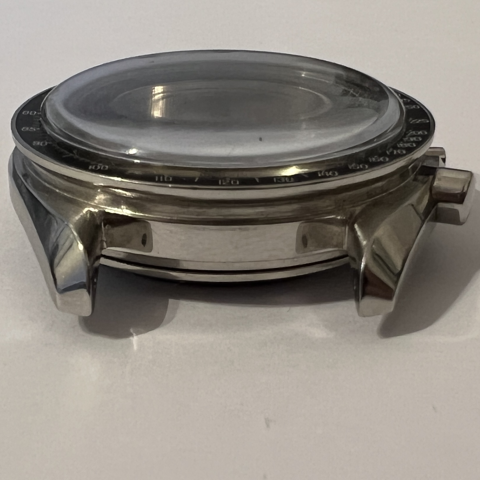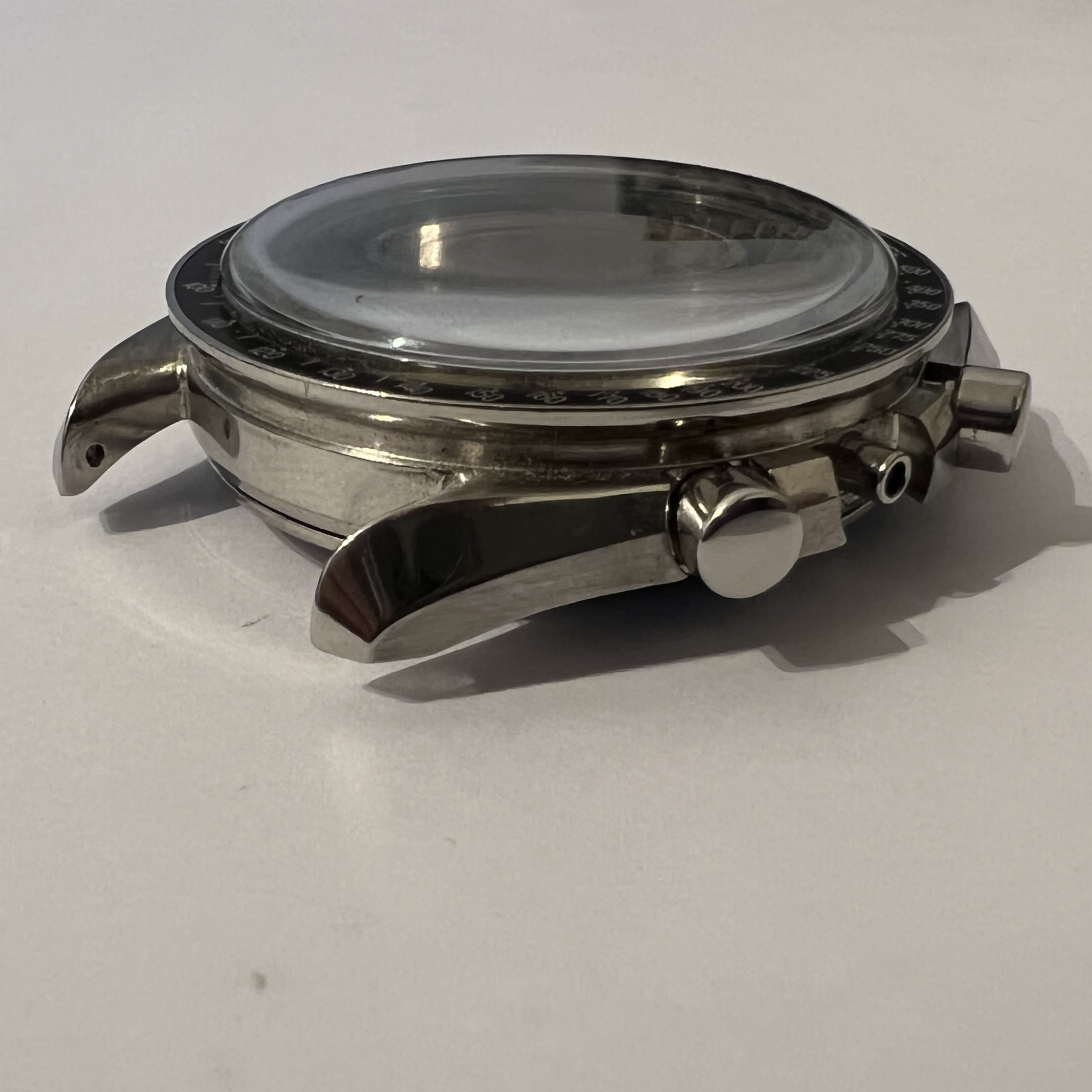 Case / Midcase: Nice fat case, coming from an '84 Speedmaster (44-serial) I've bought earlier this year. It is one of the less common ADB-cases as opposed to the more common CRS ones. The watch it came with had recently been serviced and pushers and plexi had been replaced with genuine Omega parts. So far for the good news. Unfortunately, it has also been polished and pretty seriously so on the lower lugs, particularly the lower right one, which is visibly thinner than it should be. Could certainly make for a perfect case of a beater watch, but isn't collector grade! Still, someone less pedantic than myself will certainly get a lot of enjoyment out of it. 😁
