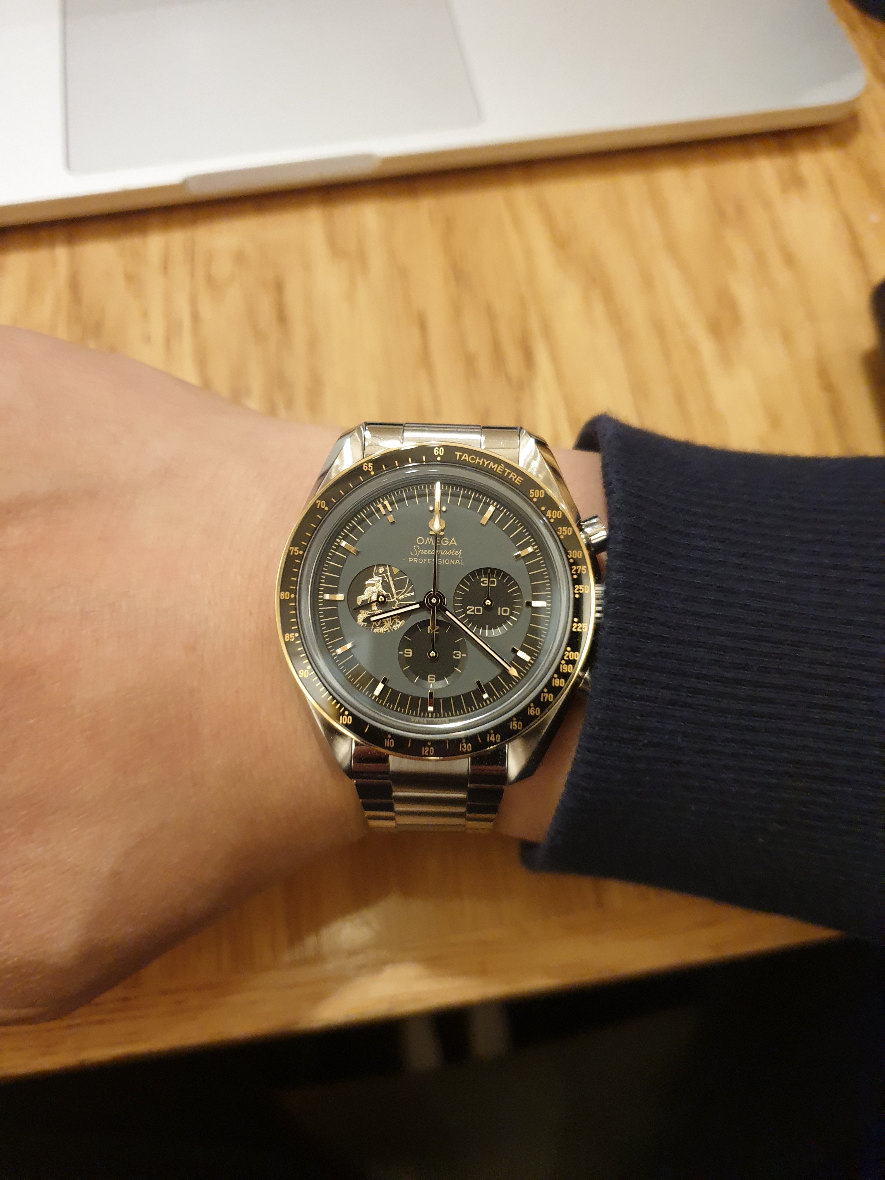 I feel myself a little bit stupid to miss this important Speedmaster, but it is what it is. I would appreciate a lot if all you lucky ones who have the steel or gold version, could share your experiences (pros+cons) with the 50th Ann. Speedmasters. With pics, ofcourse.