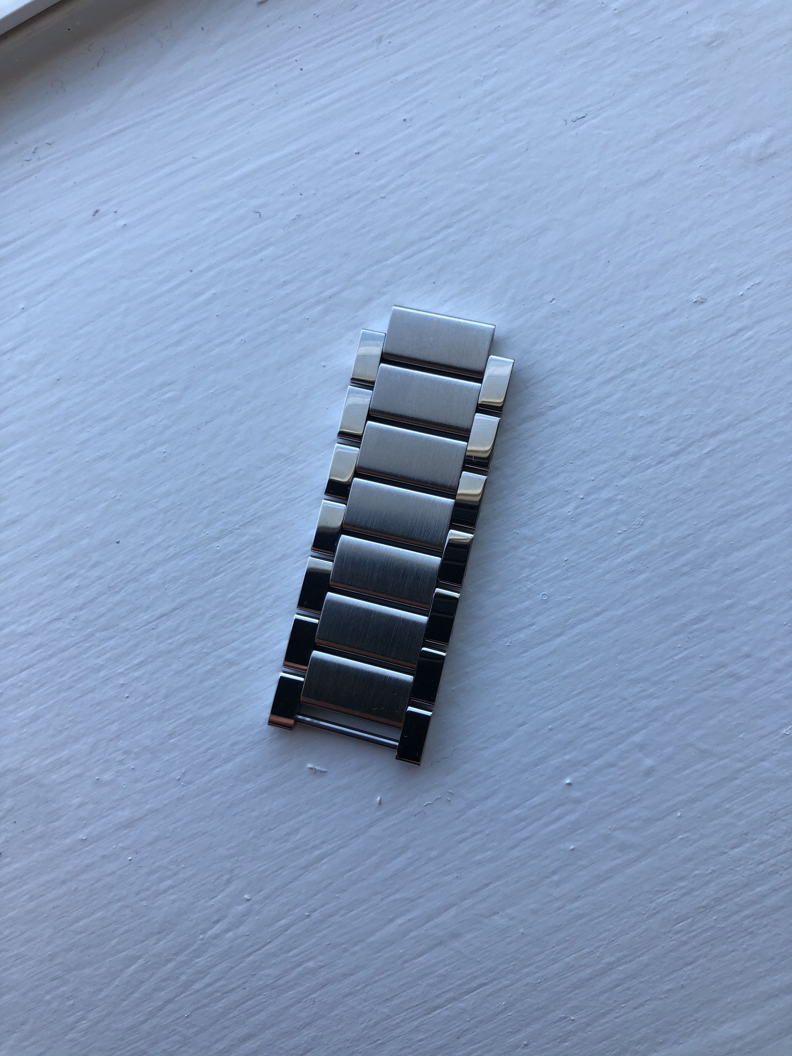 For sale is a very lightly worn Speedmaster stainless steel bracelet that came on the Apollo 11 50th anniversary model. Reference number: STZ011628. It almost looks brand new besides a couple extremely faint marks on the clasp (which I tried to photography, but it’s hard to tell). Comes with all links.