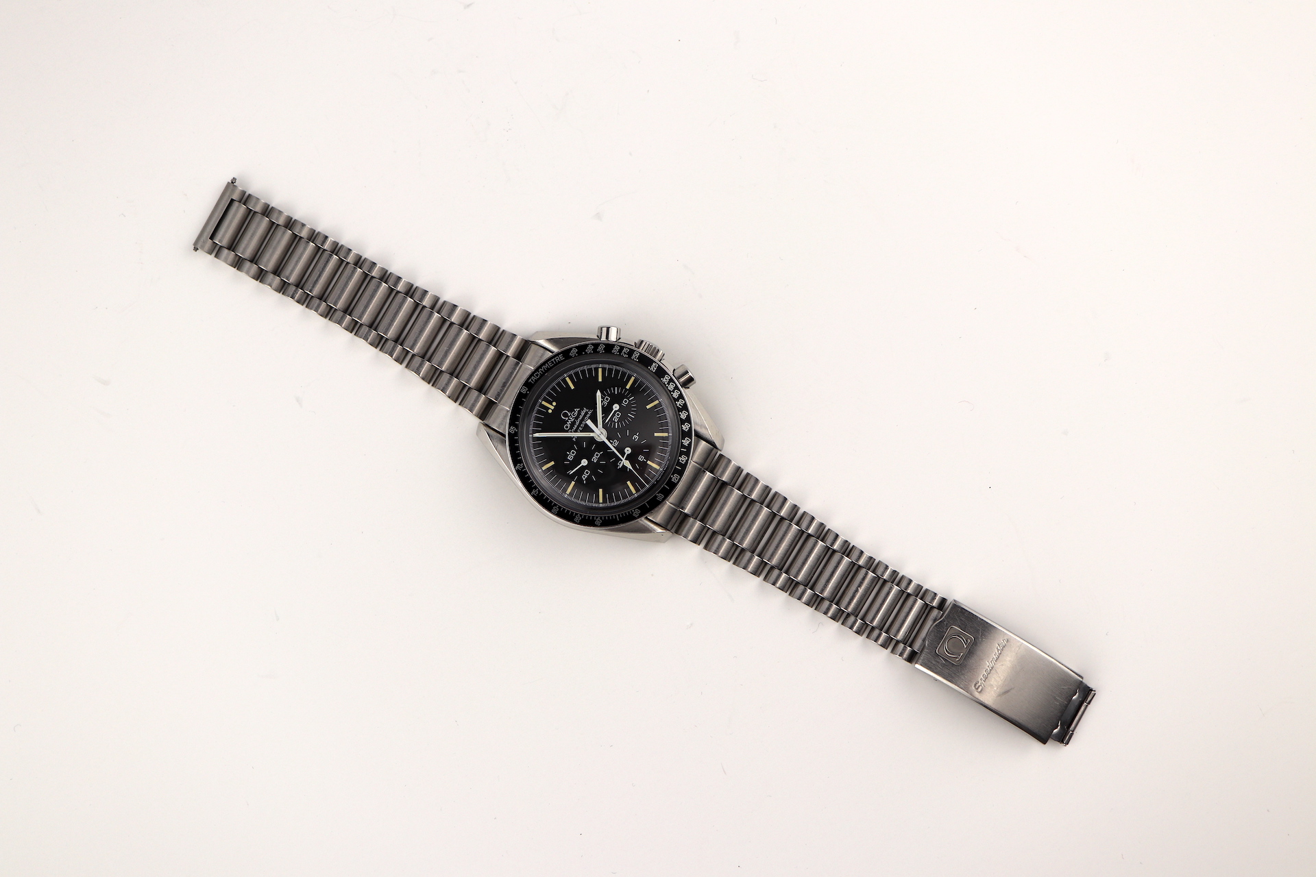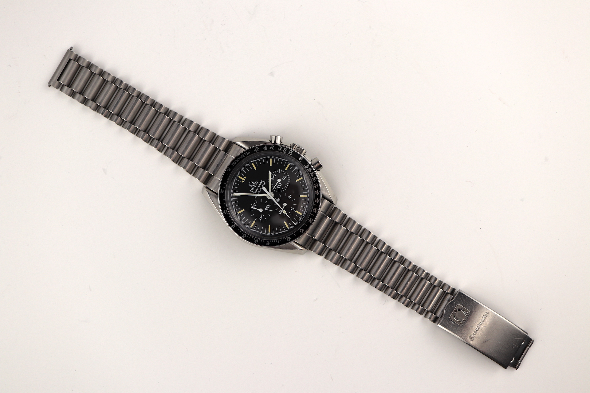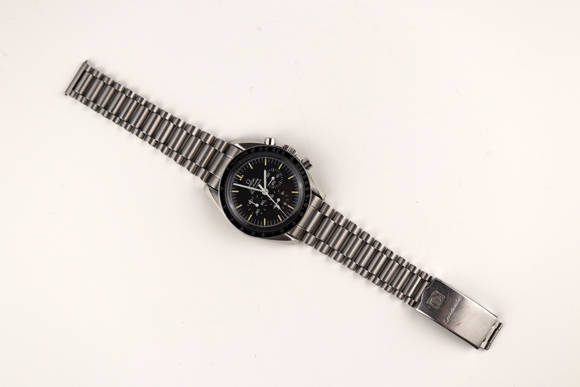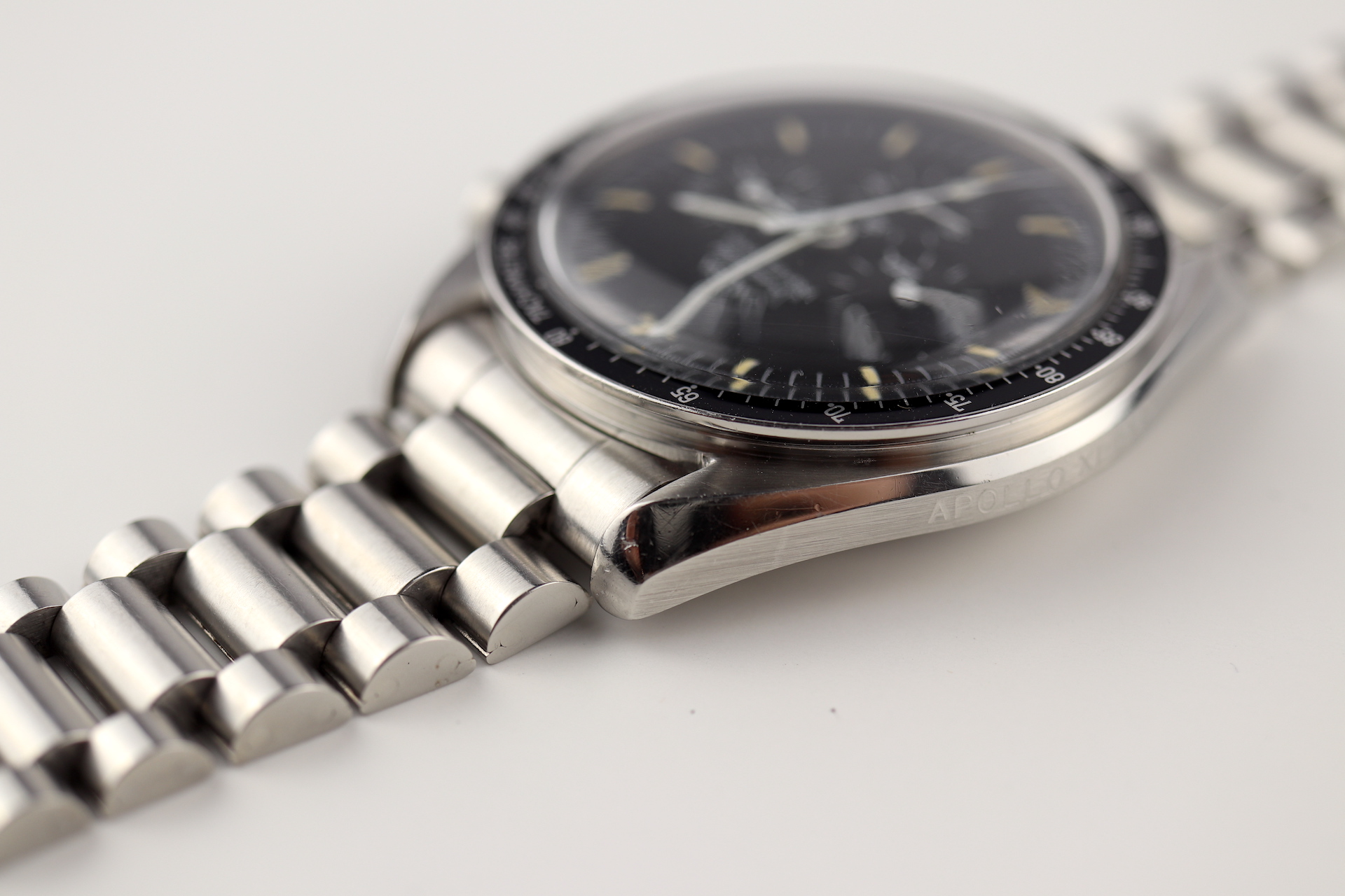 ·For sale, I have an Omega Speedmaster Apollo XI 20th Anniversary Edition. It has the Caliber 861 which is a manual winding movement. This is one of the 4,000 pieces made for the global market. The case measures 42mm without the crown. The watch was just serviced and all functions are working as they should. The watch will come with the original and sought after1450 bracelet and 808 end links.