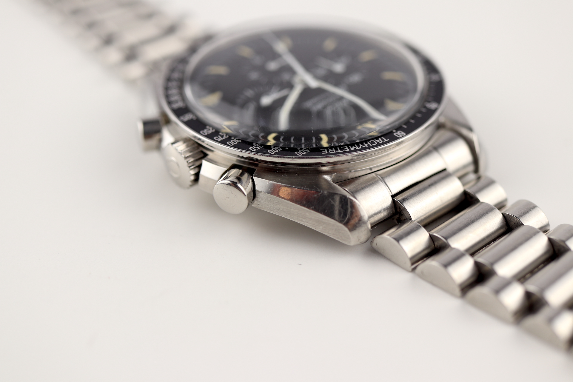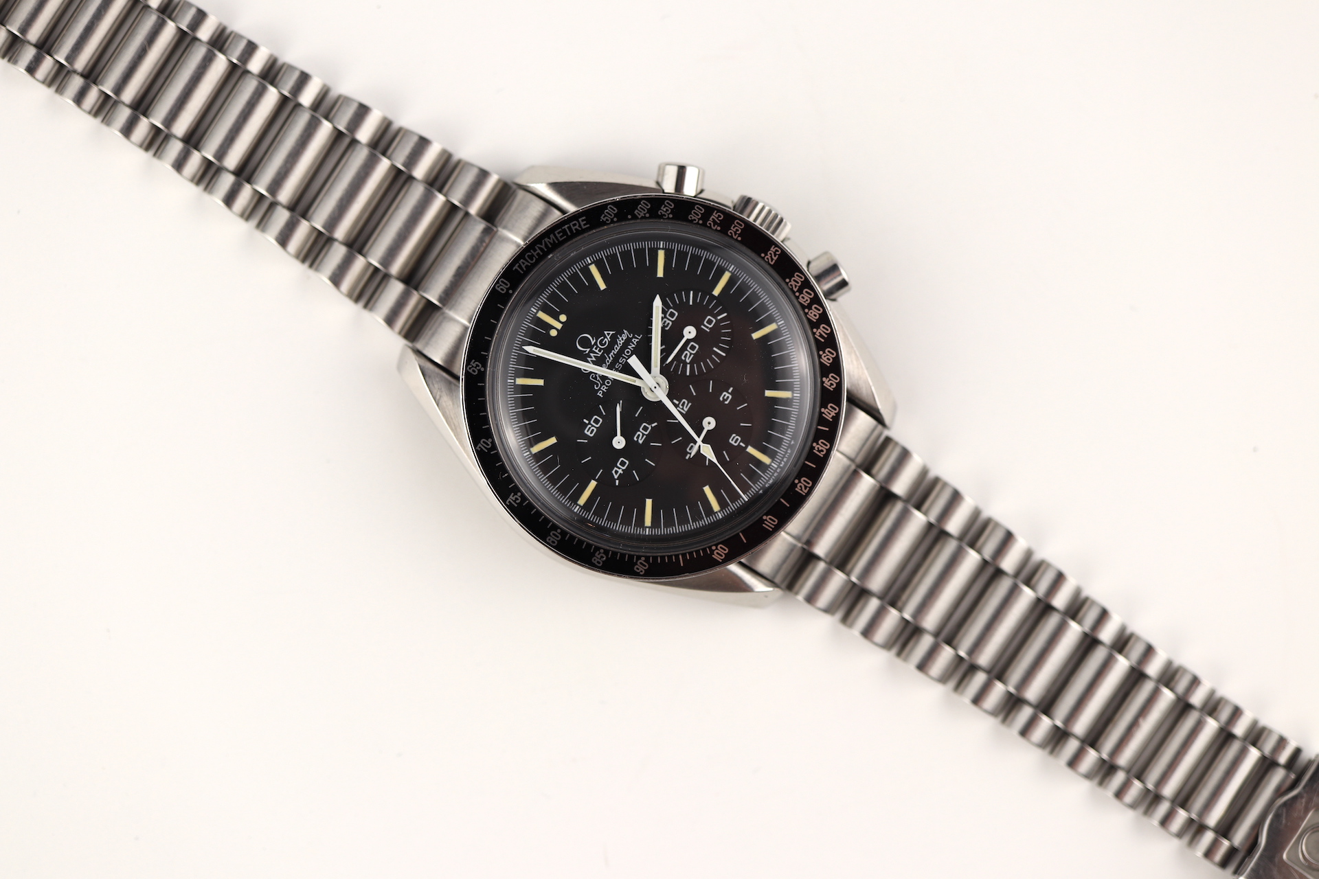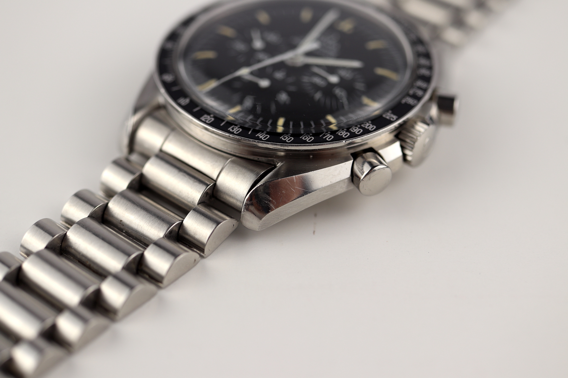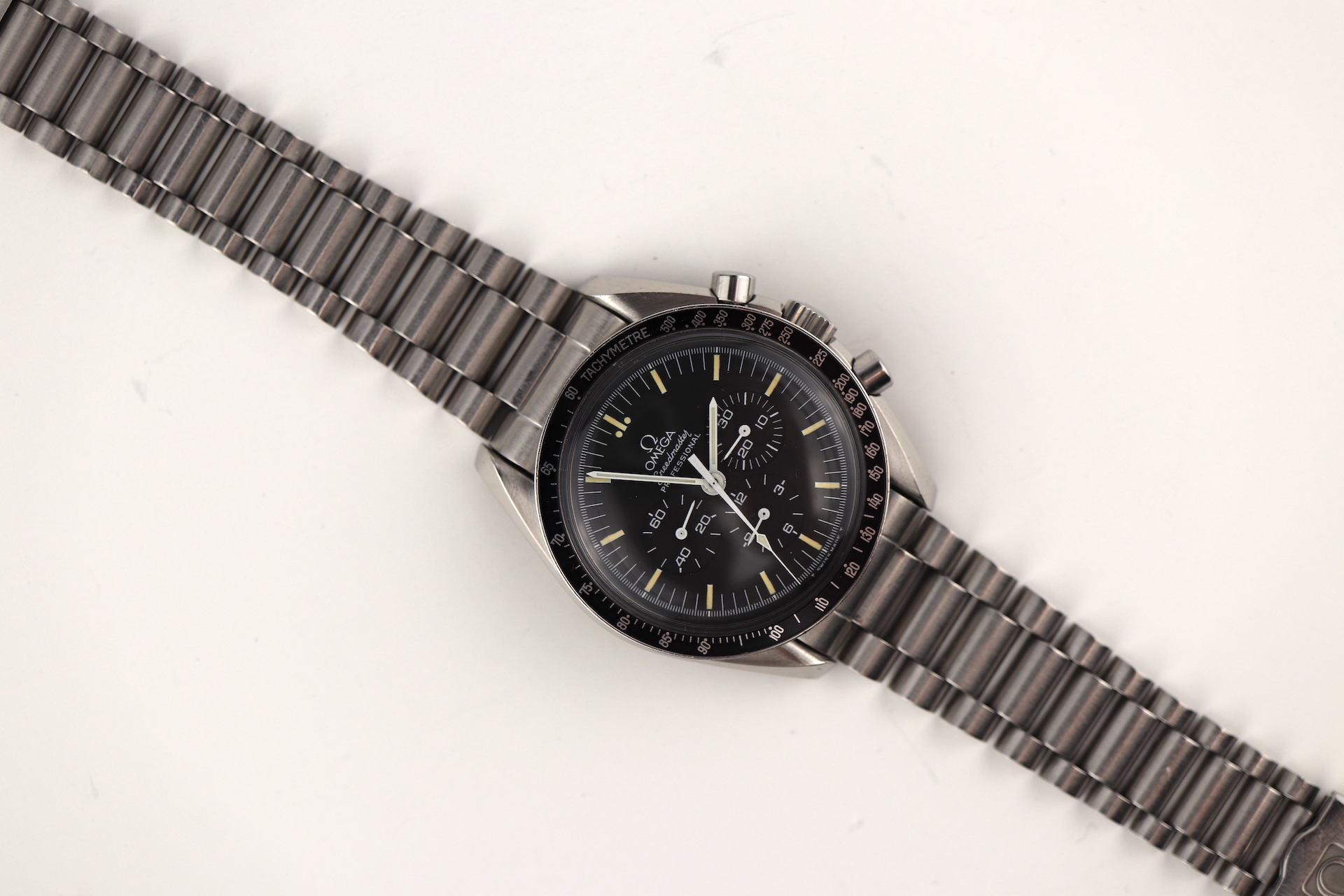 ·For sale, I have an Omega Speedmaster Apollo XI 20th Anniversary Edition. It has the Caliber 861 which is a manual winding movement. This is one of the 4,000 pieces made for the global market. The case measures 42mm without the crown. The watch was just serviced and all functions are working as they should. The watch will come with the original and sought after1450 bracelet and 808 end links.