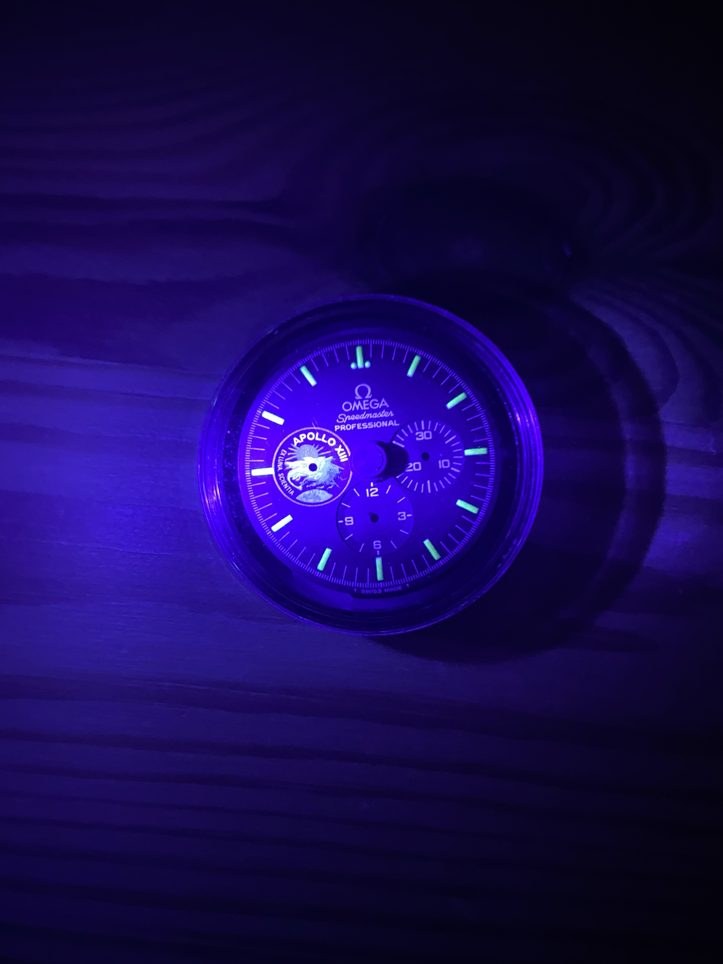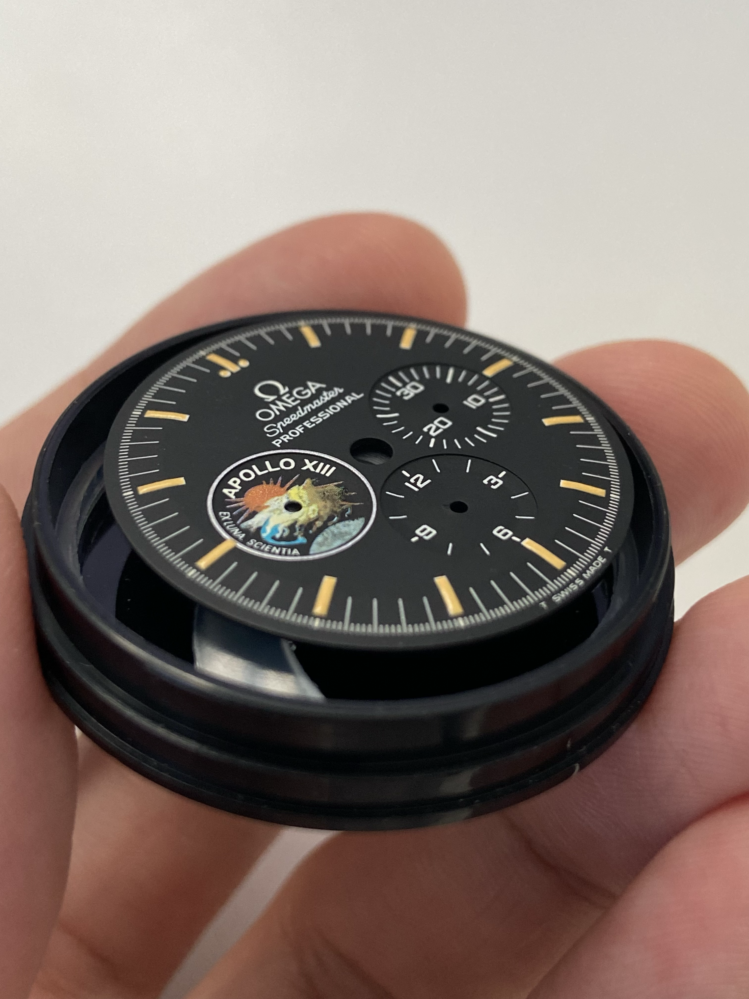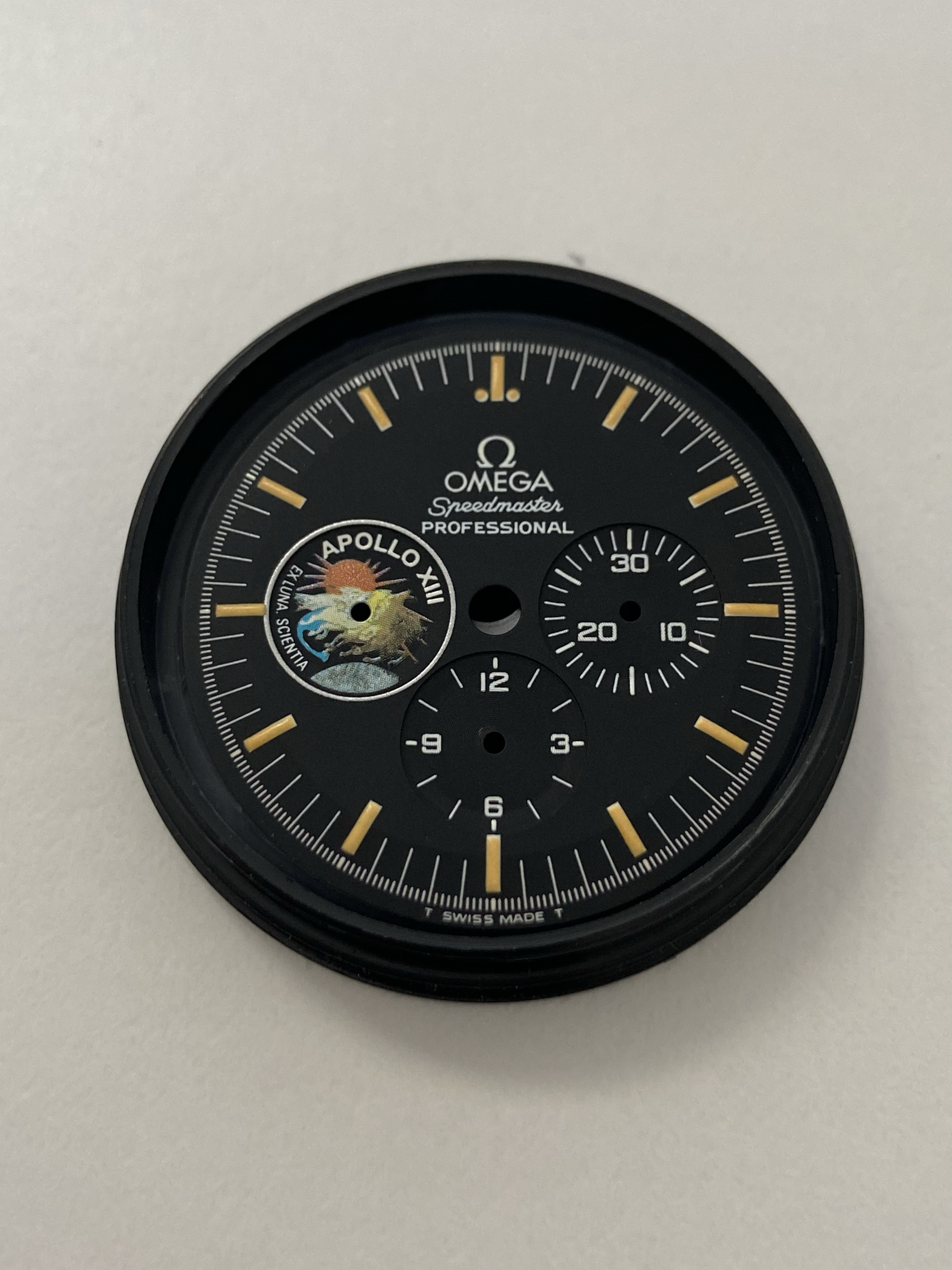 I propose a nice, rare and cool part : A vintage 1995 Omega Speedmaster Apollo XII 25th anniversary tritium dial.