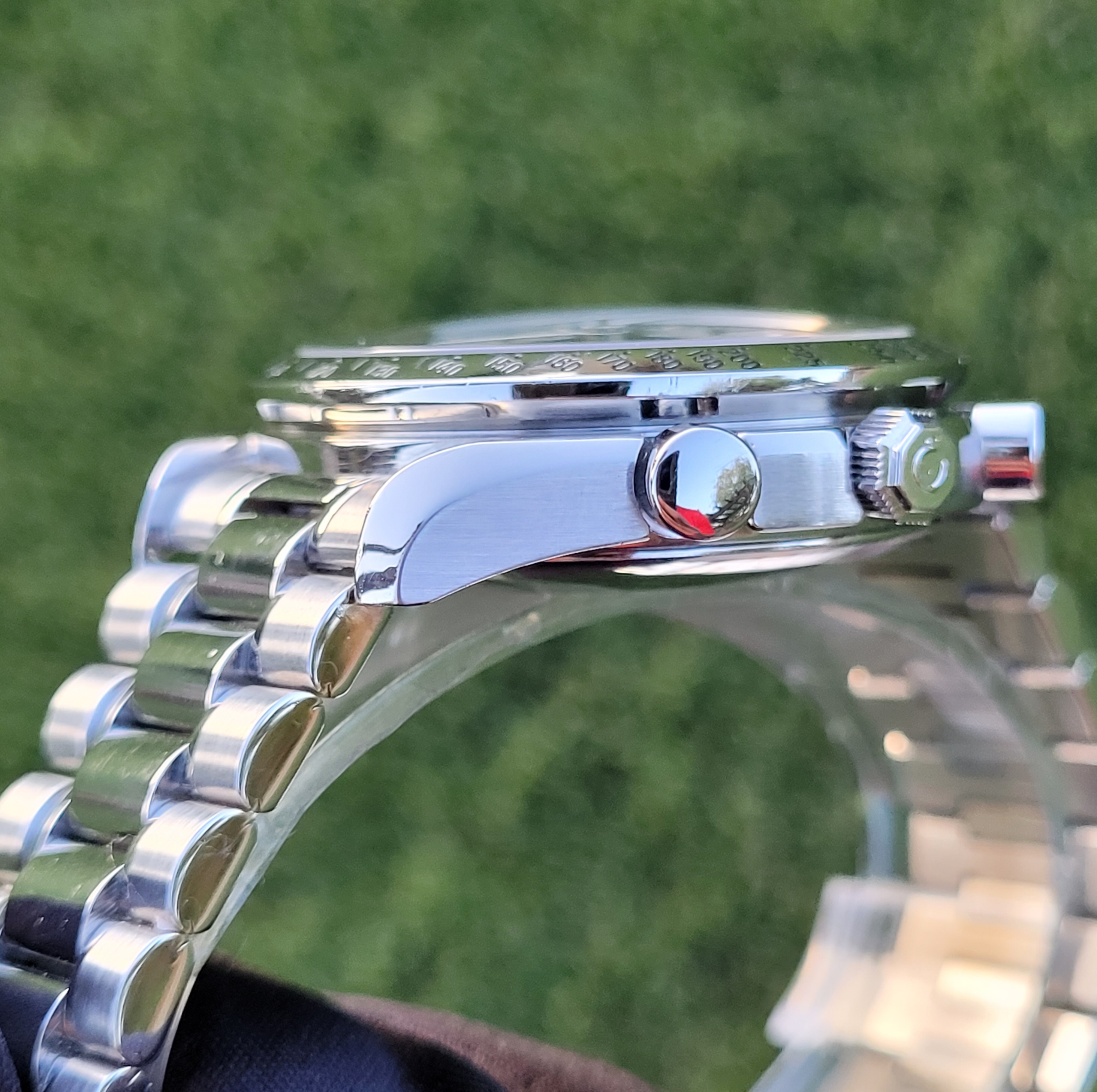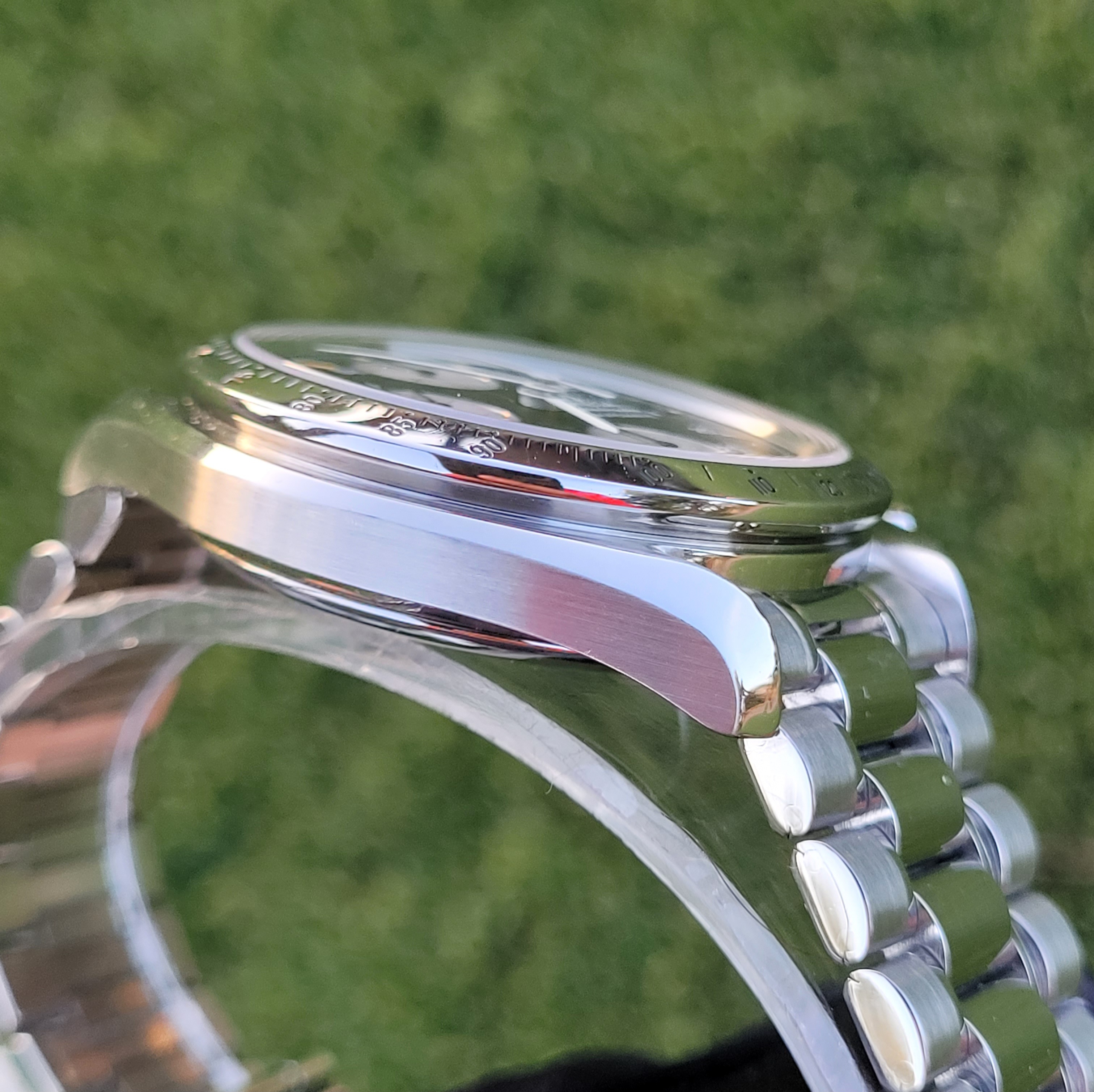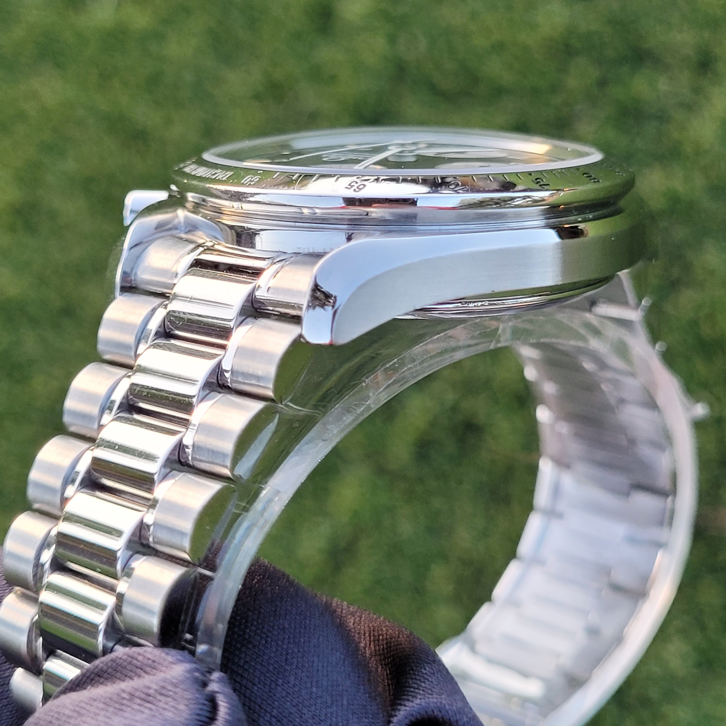 Mechanical Condition: Timegrapher shows strong numbers (+3 sec/day and 265 amplitude). The chronograph starts, stops, and resets to "0". Date change function also is in good working order. The seals and crystal were replaced by my watchmaker in December 2022, and the watch was regulated him as well; receipts for those 2 services will be included with the sale....along with the pressure check printout from his equipment.