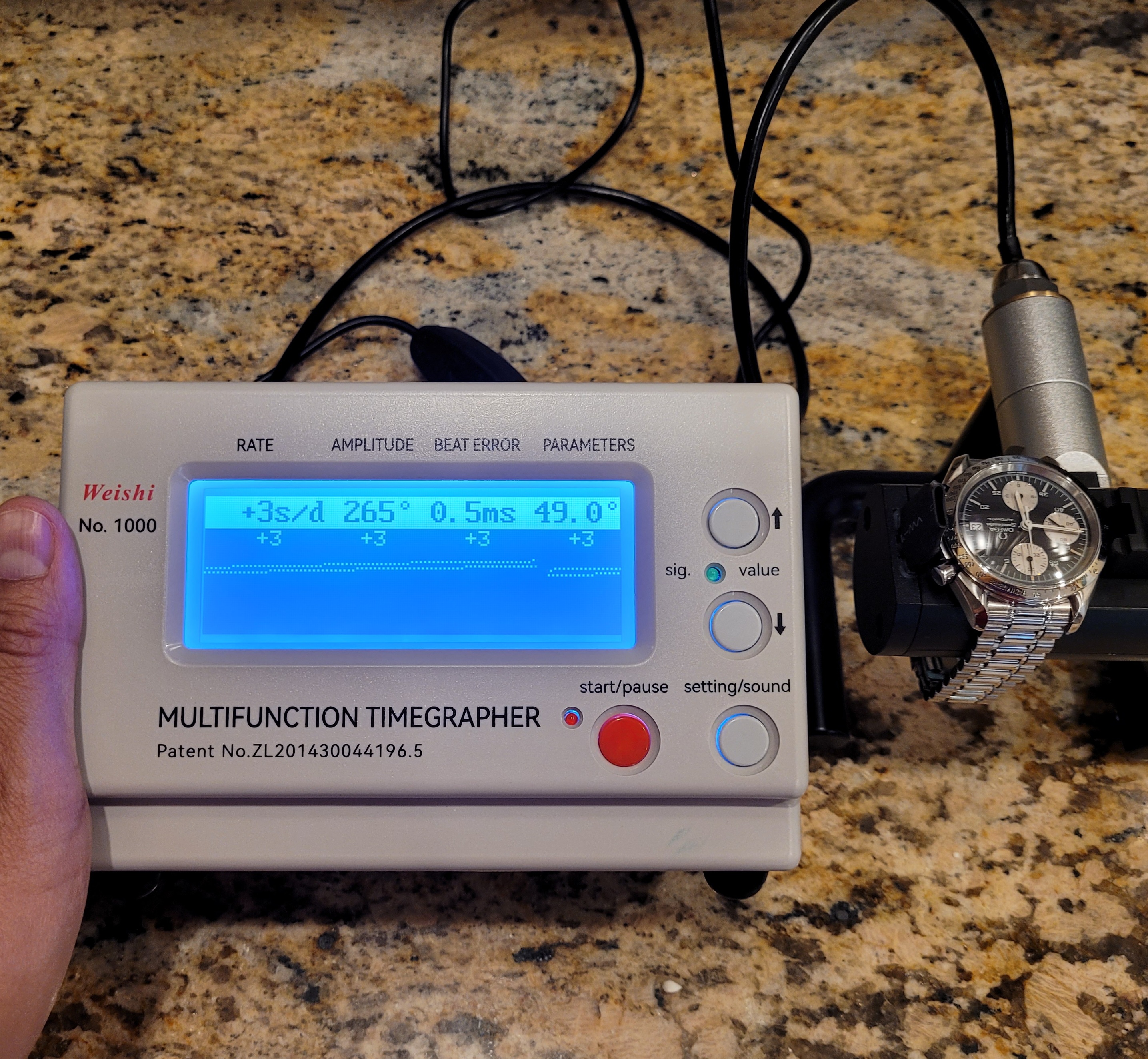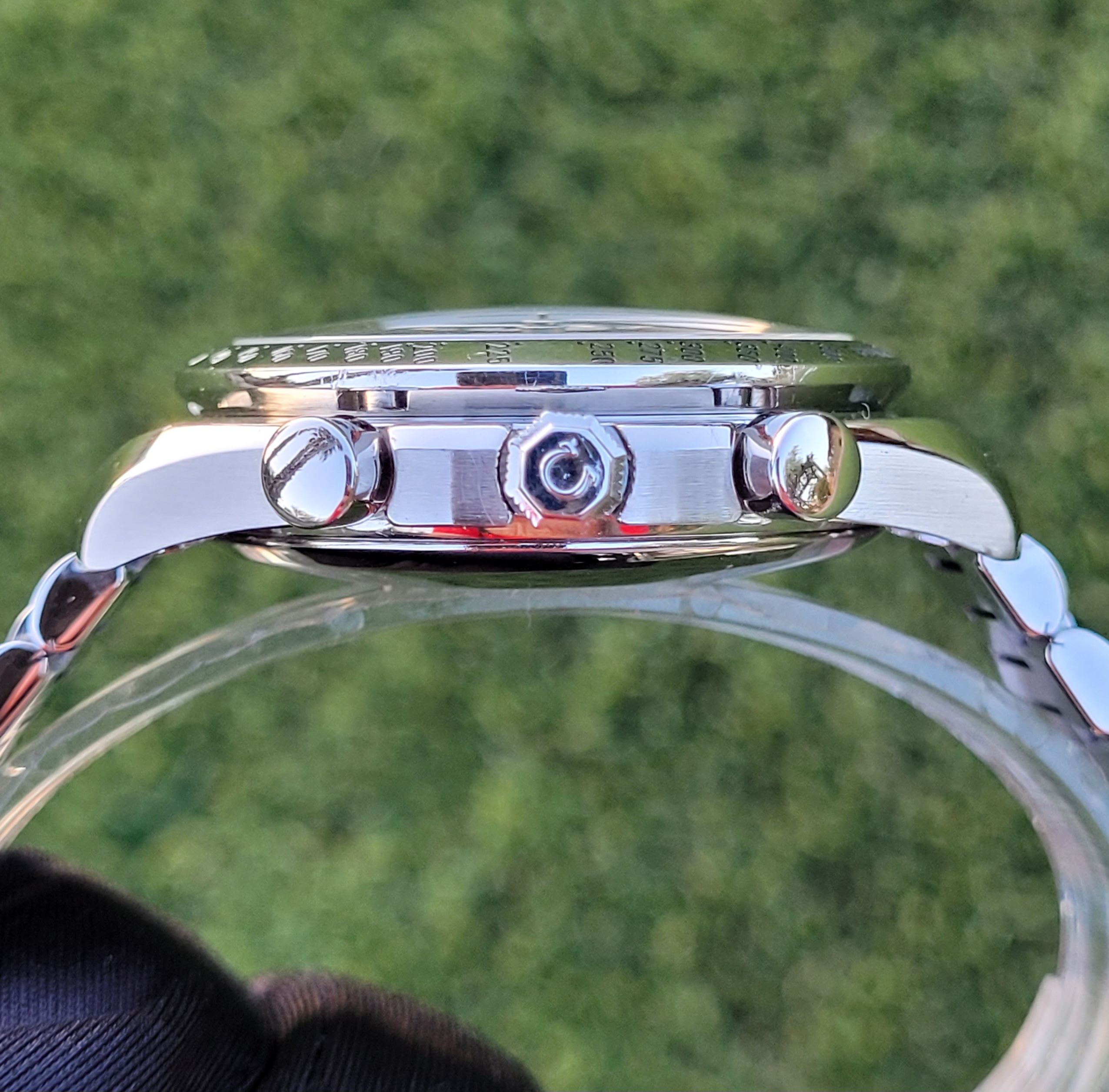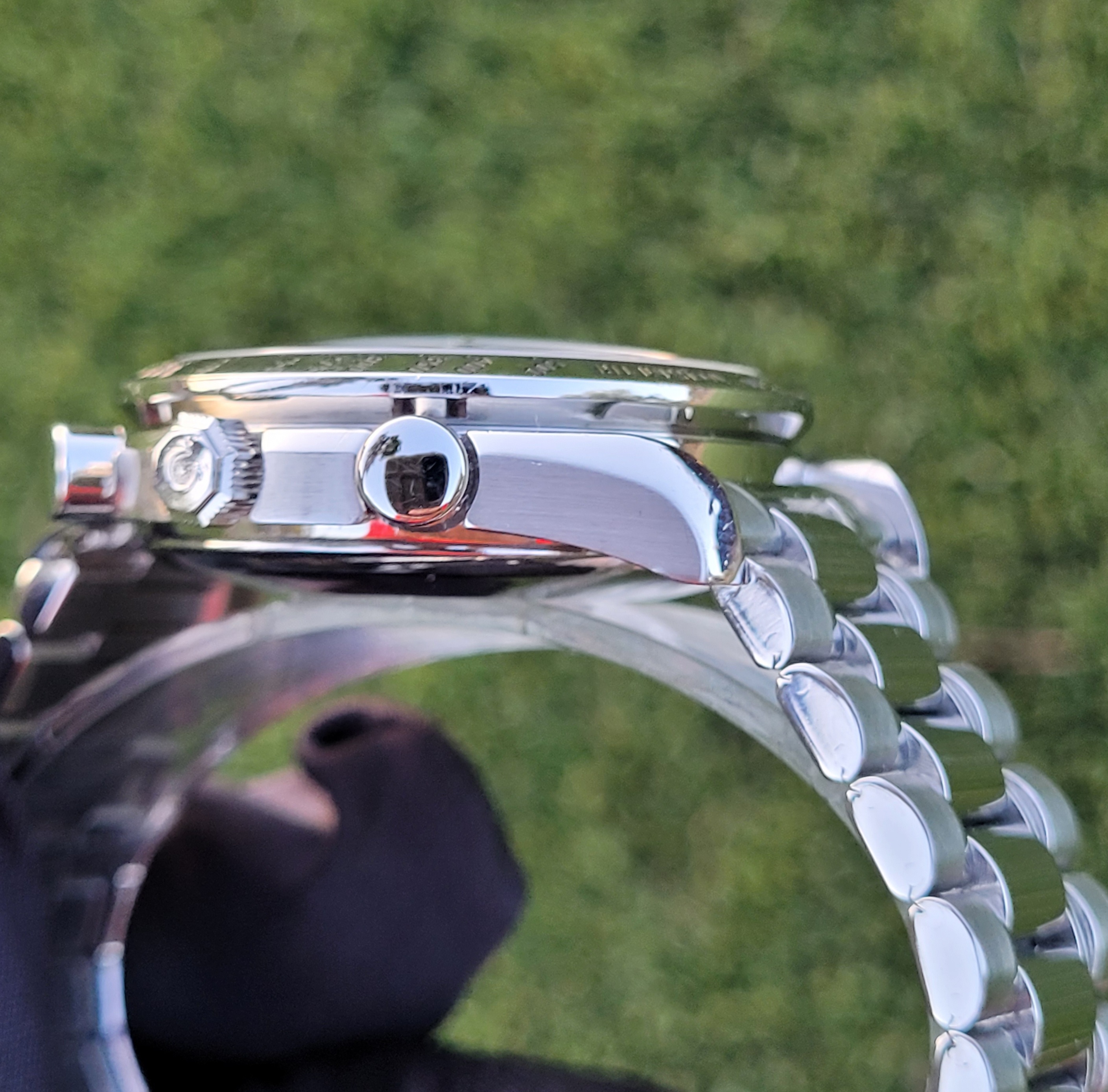 Mechanical Condition: Timegrapher shows strong numbers (+3 sec/day and 265 amplitude). The chronograph starts, stops, and resets to "0". Date change function also is in good working order. The seals and crystal were replaced by my watchmaker in December 2022, and the watch was regulated him as well; receipts for those 2 services will be included with the sale....along with the pressure check printout from his equipment.