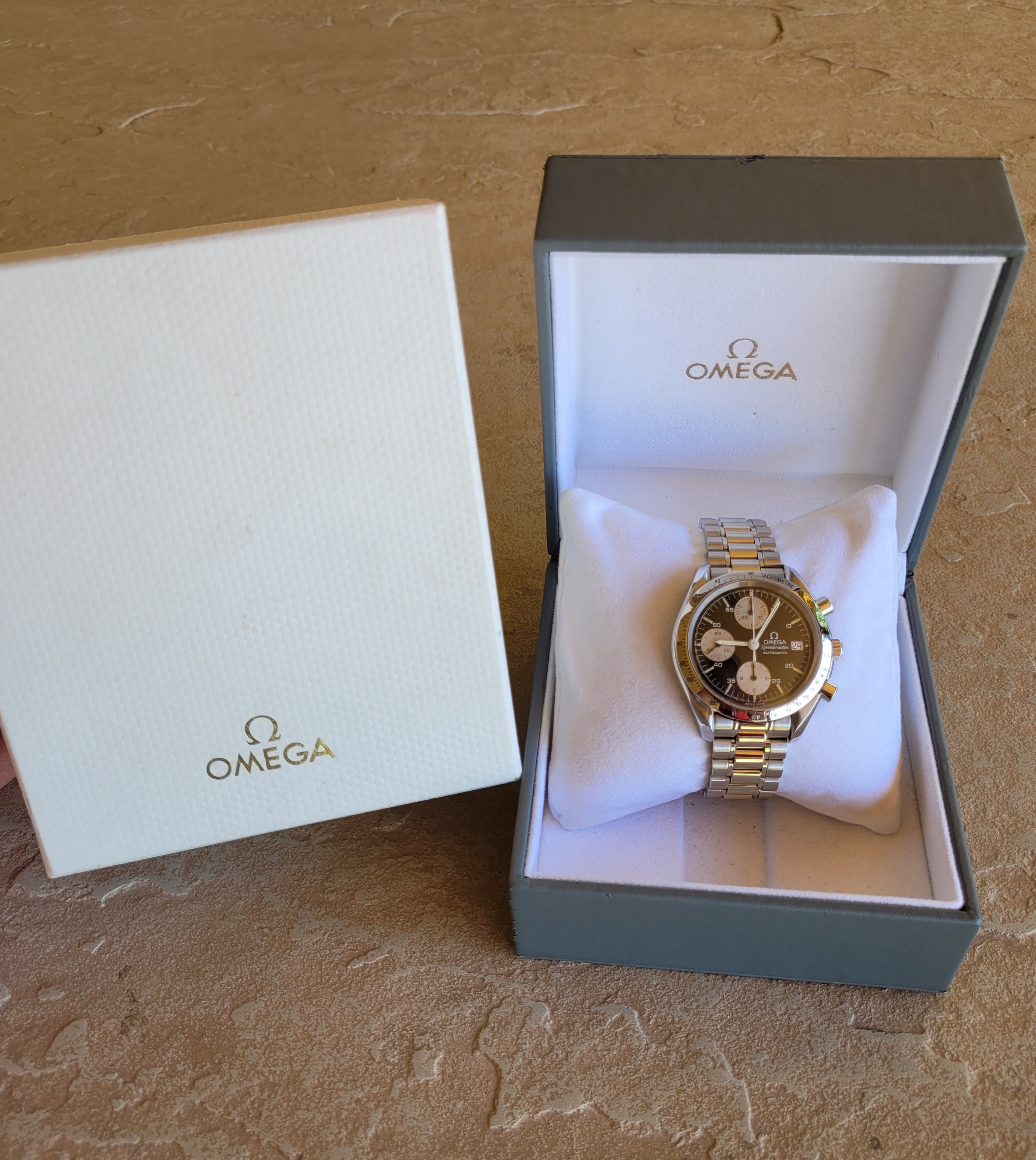 Box & Card: Omega inner and outer presentation boxes are included; no card
