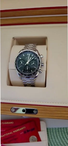 Omega Speedmaster Chronograph 38mm in excellent condition. The watch is equipped with an automatic chronograph movement and comes with the original box and papers.