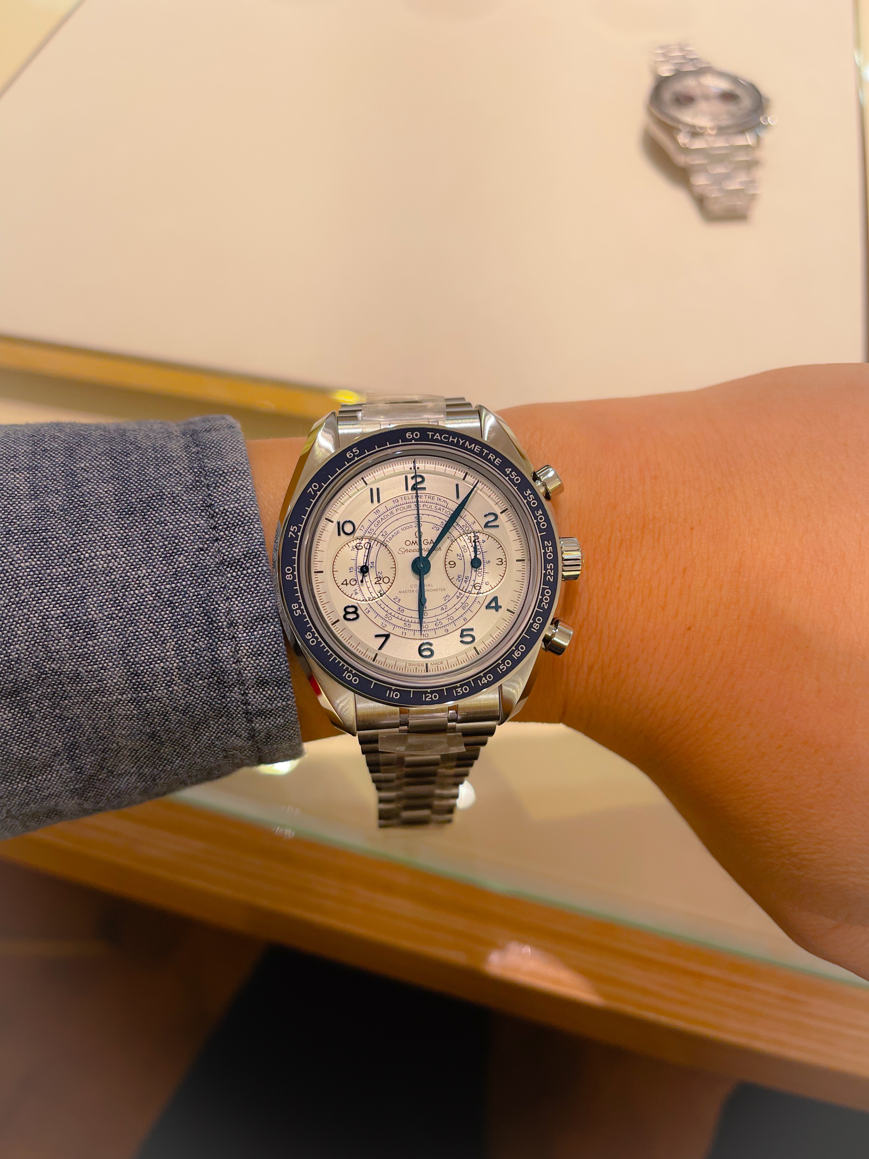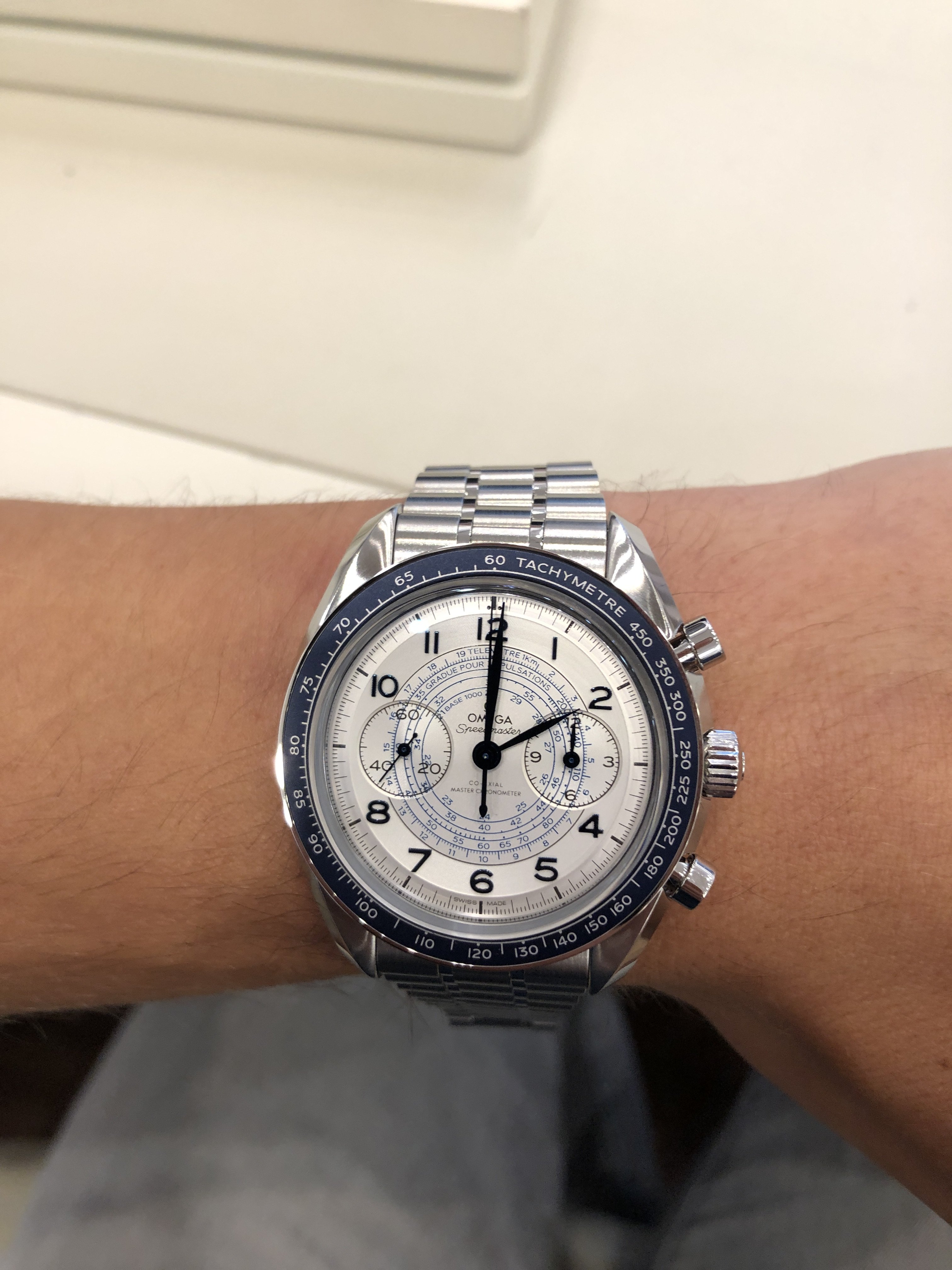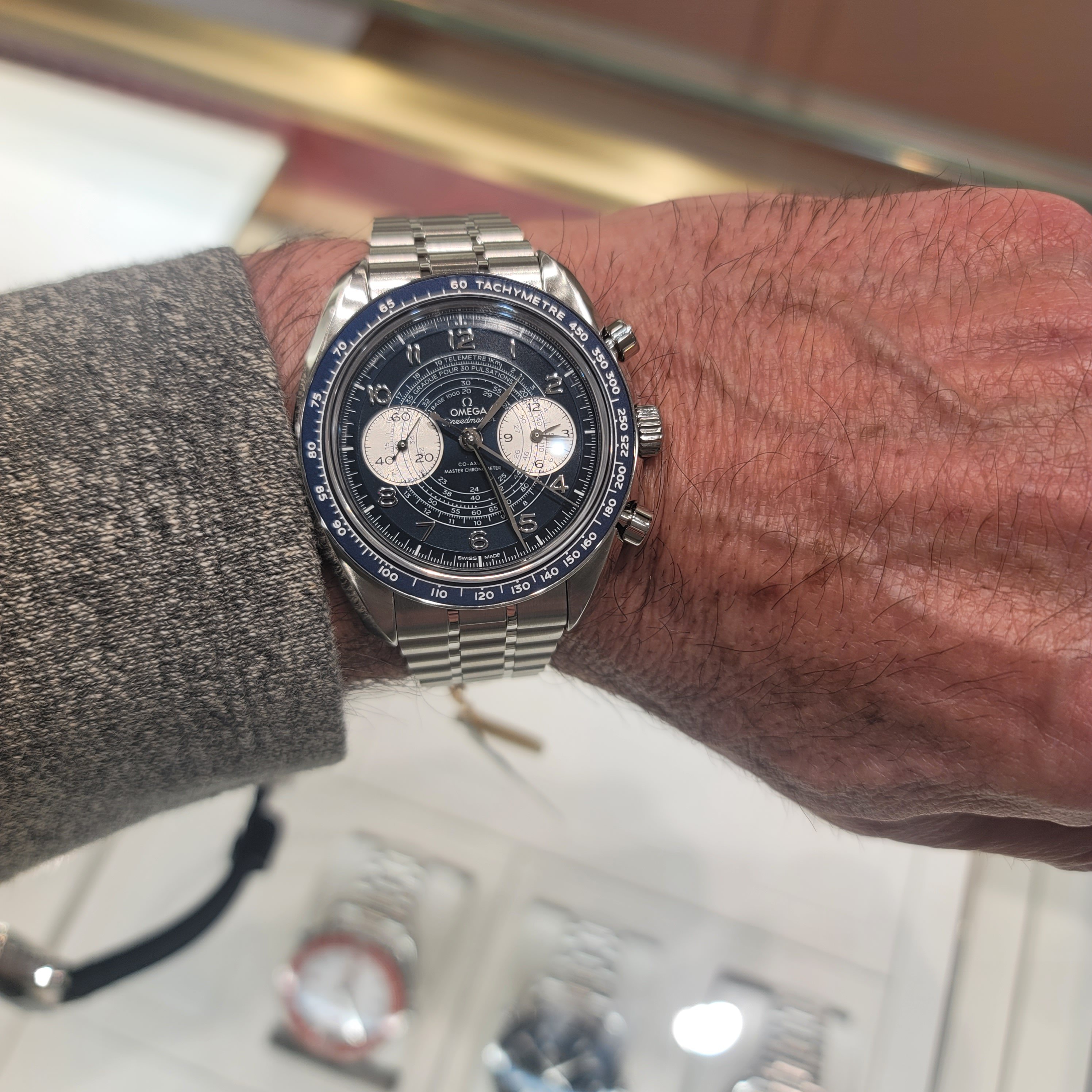 I received a very pleasant text from my OB this afternoon to come see the new Speedmaster Chronoscope novelties that came in. I had signed up to purchase one as soon as the pieces came in.
