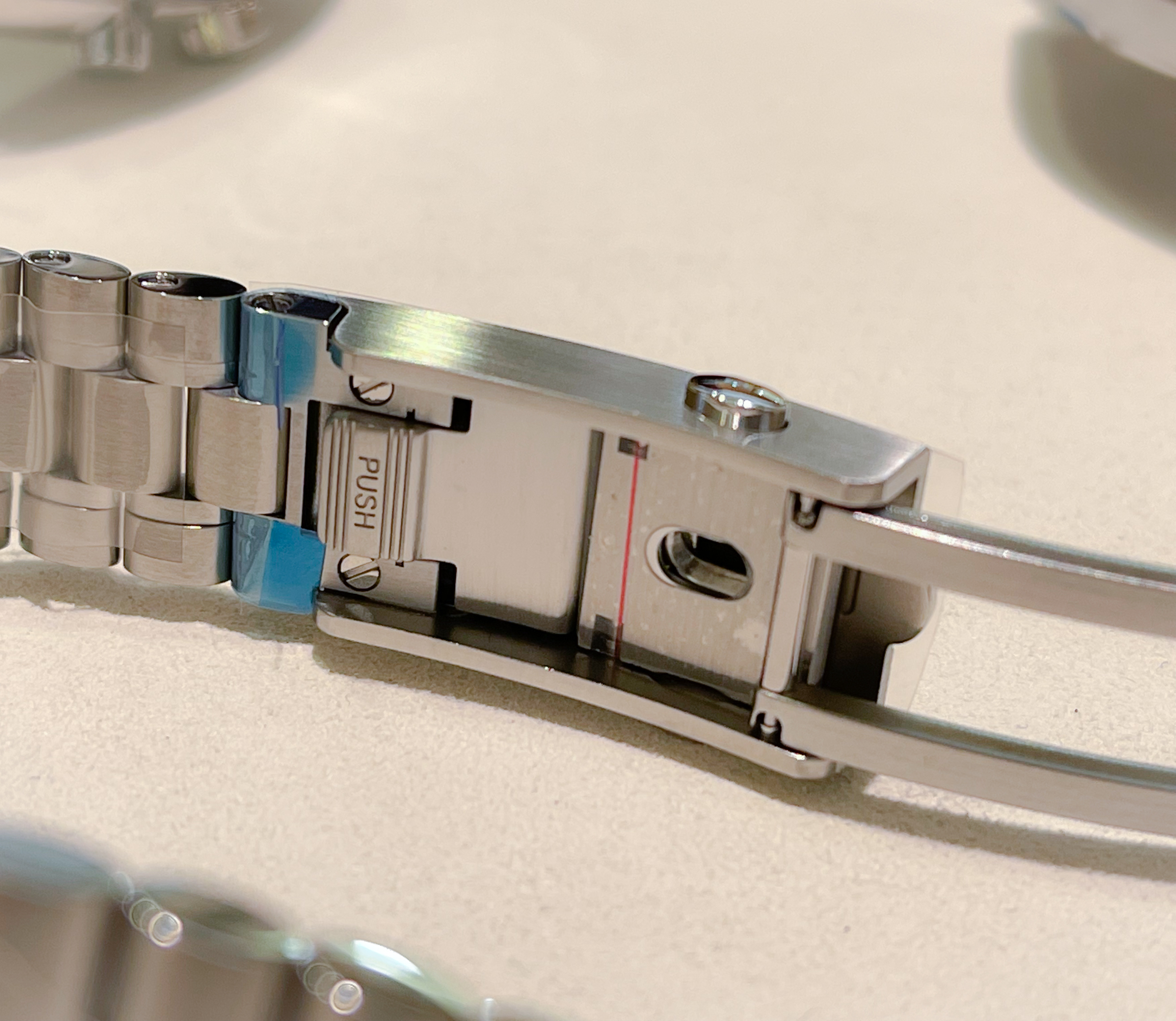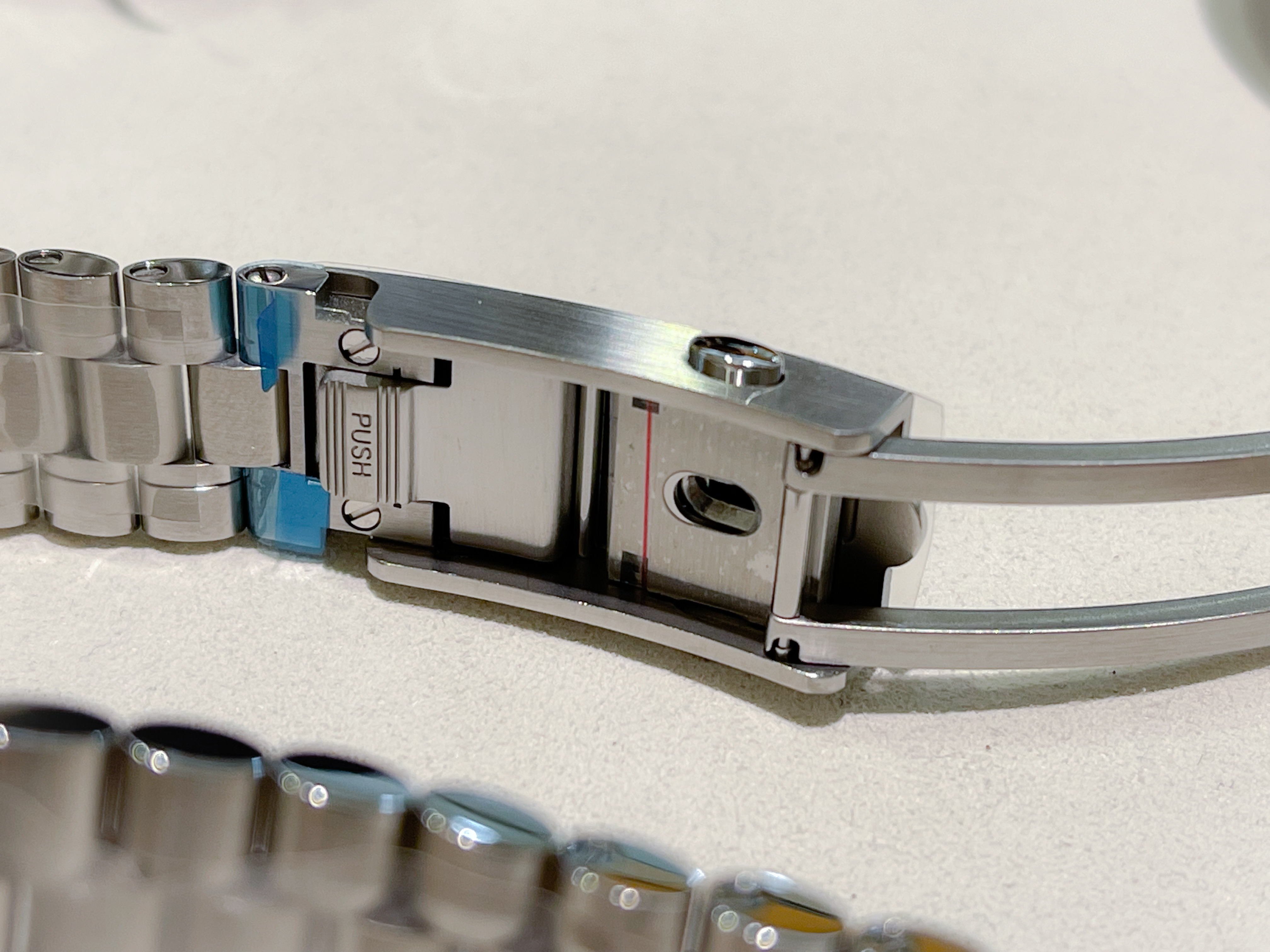 Now, we have the improved Speedy clasp with a two-position adjust. It’s a push and pull design with two positions as you can see below.