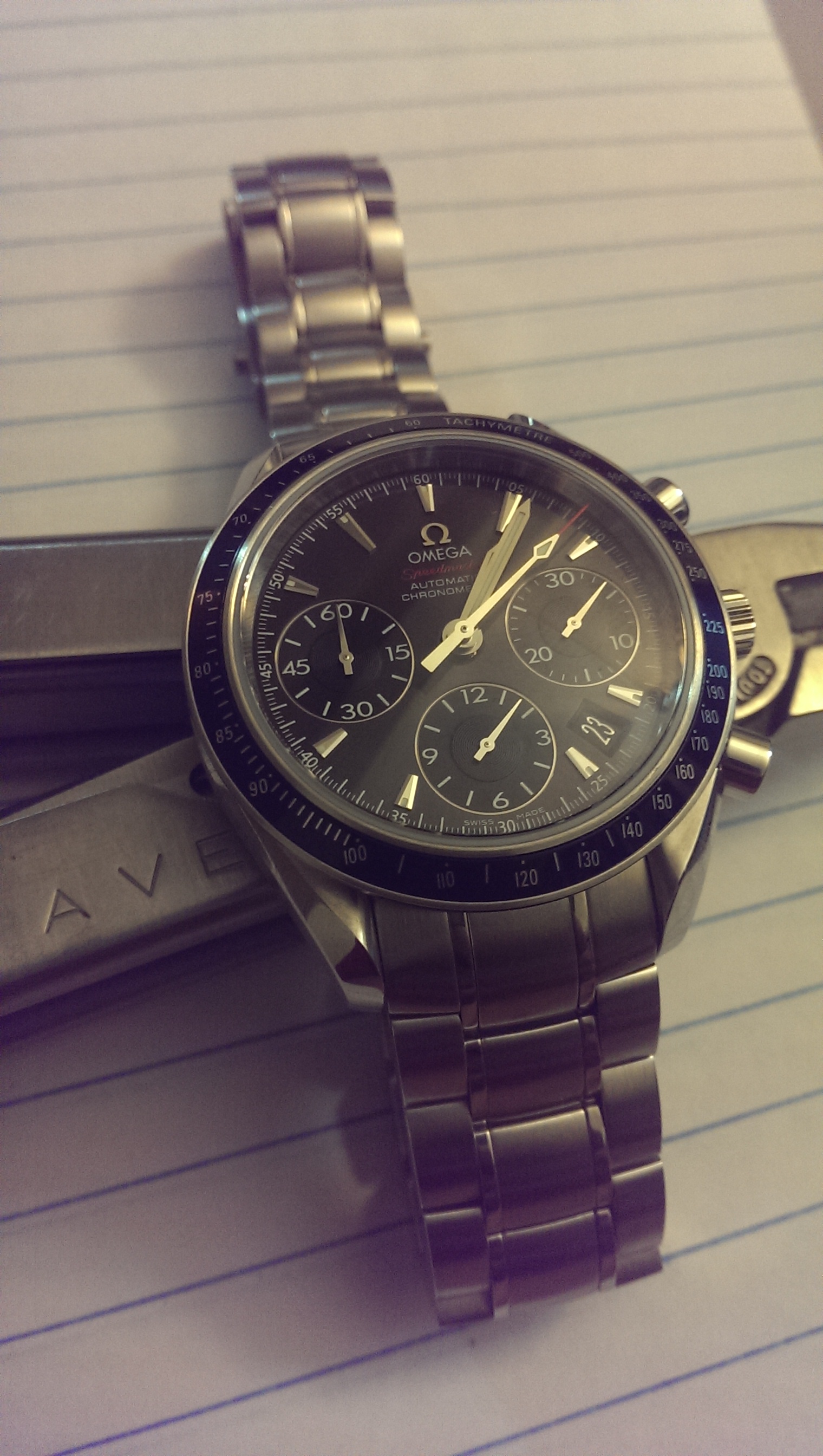 I like it. I'm in a similar situation, I'm having my 145.012 serviced by Al real soon, and when I get it back I will wear it with pride, but, I don't want it to be an everyday watch. I'm on the hunt for another Speedy that I would feel comfortable wearing everyday, but I want it to be distinct from my pre-moon. I think you made a good choice. That model is funky and cool, but immediately recognizable as a Speedy at the same time. Enjoy.