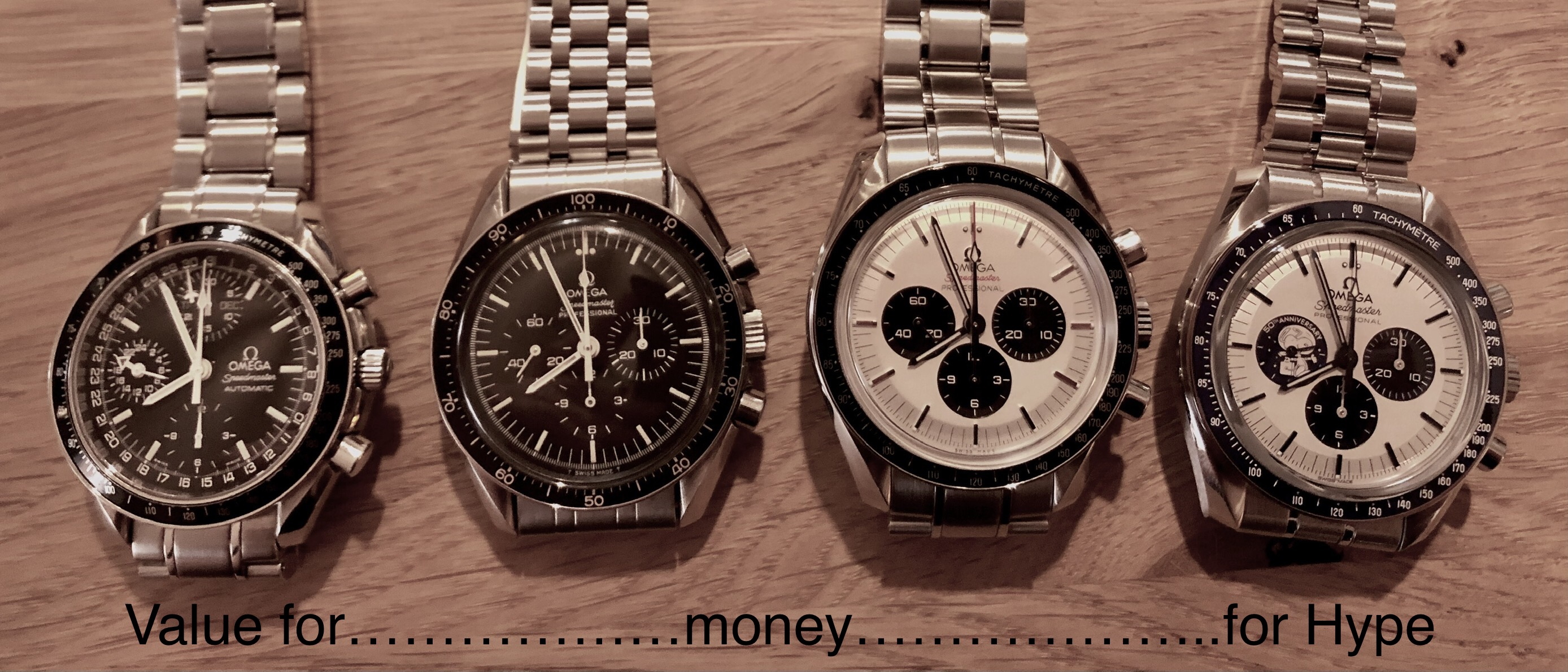 My perception is that the strongest hype around Speedmasters has to do with associations with NASA and space flight. The stronger the connection, the bigger the hype. The movement in the day date is technically impressive and arguably and excellent value but without any sort of lineage to the 321 it seems the Speedy fan boys (guilty as charged) are less interested. It’s a great watch and if you like it you’re getting a great value.