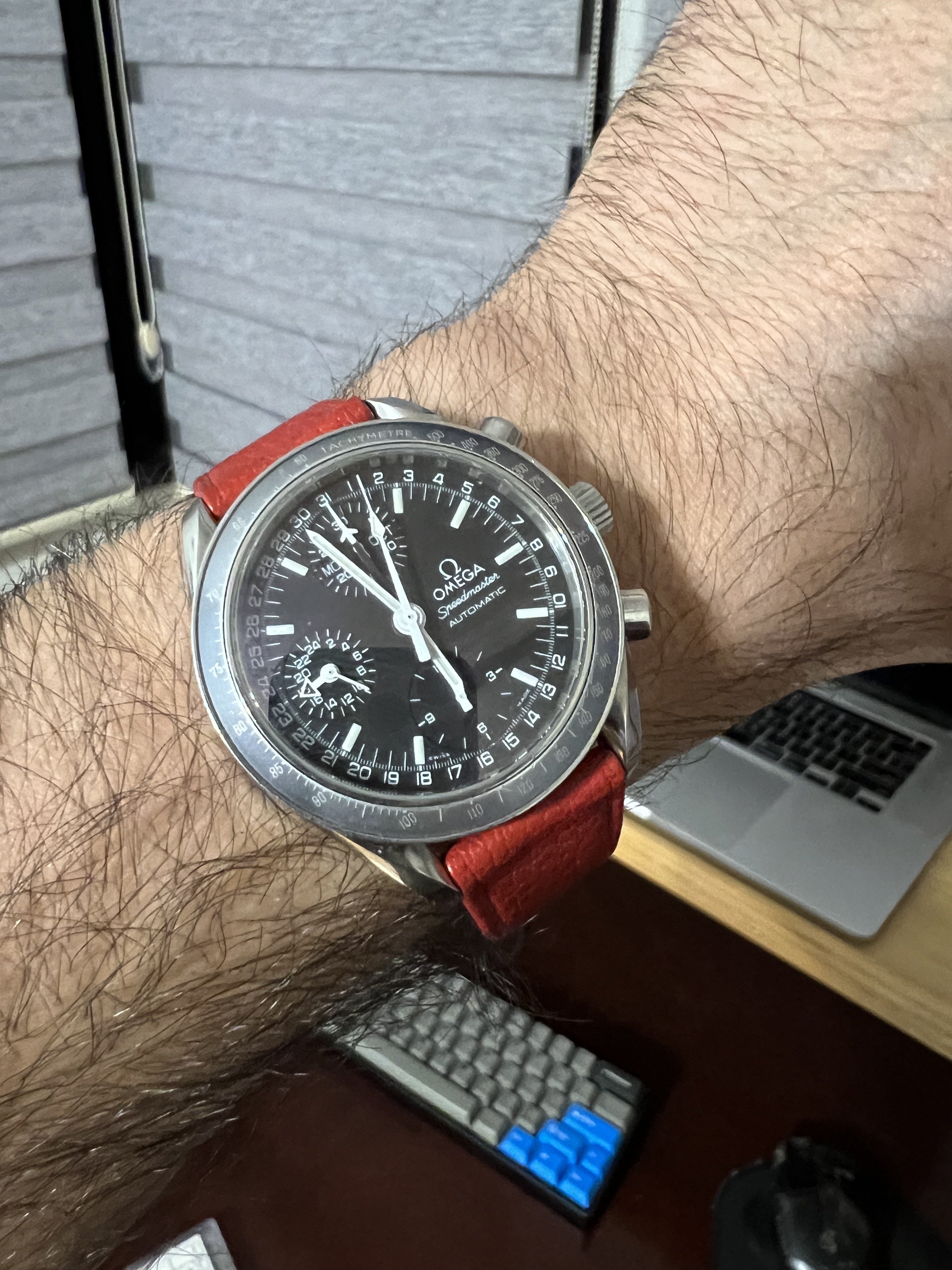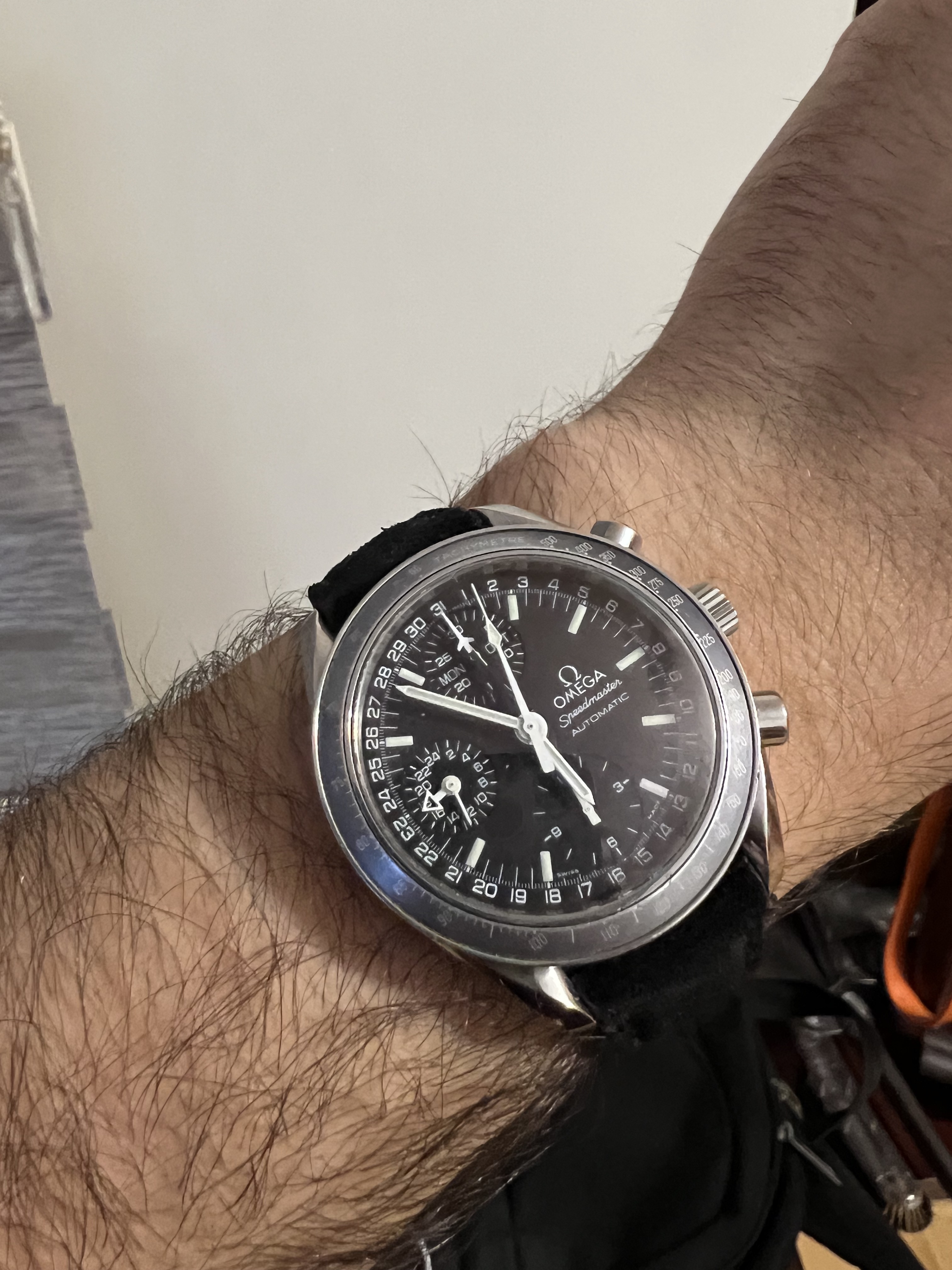 Prices are lately below average for 3520.53 so I wanted to see whether I can pull it off, but I can't, it's either unbalanced or very heavy at 120grams with full bracelet, so it's definitely for bracelet lovers - most comfortable for me was with a leather bracelet strapped beyond comfortably tight(!) - Omega milanese bracelets are also ok.