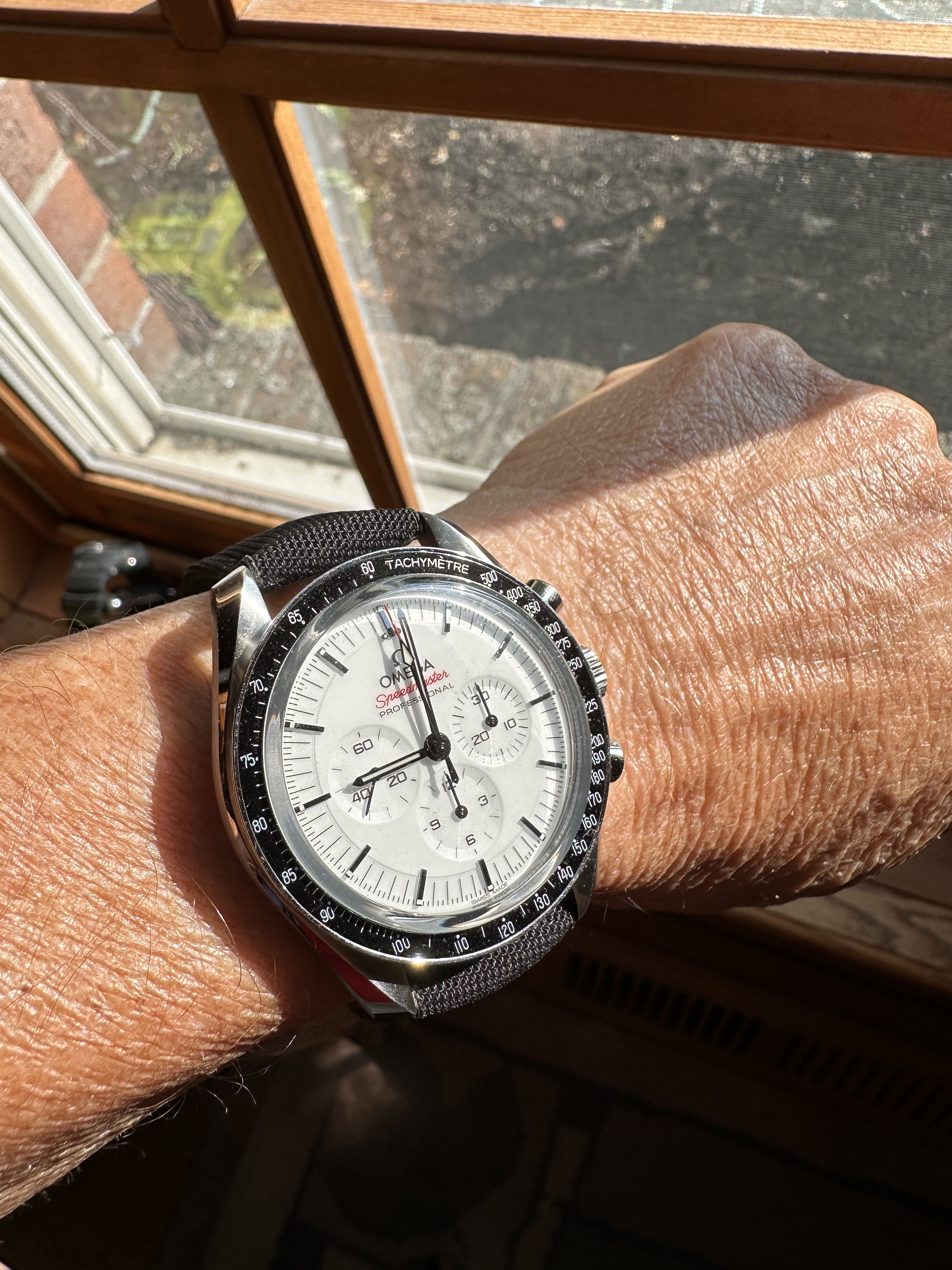 ·Does anyone here have the OEM fabric strap for the 3861 speedmaster? I’ve bought one online without ever having tried it, and I’d love your opinions and some photos.
