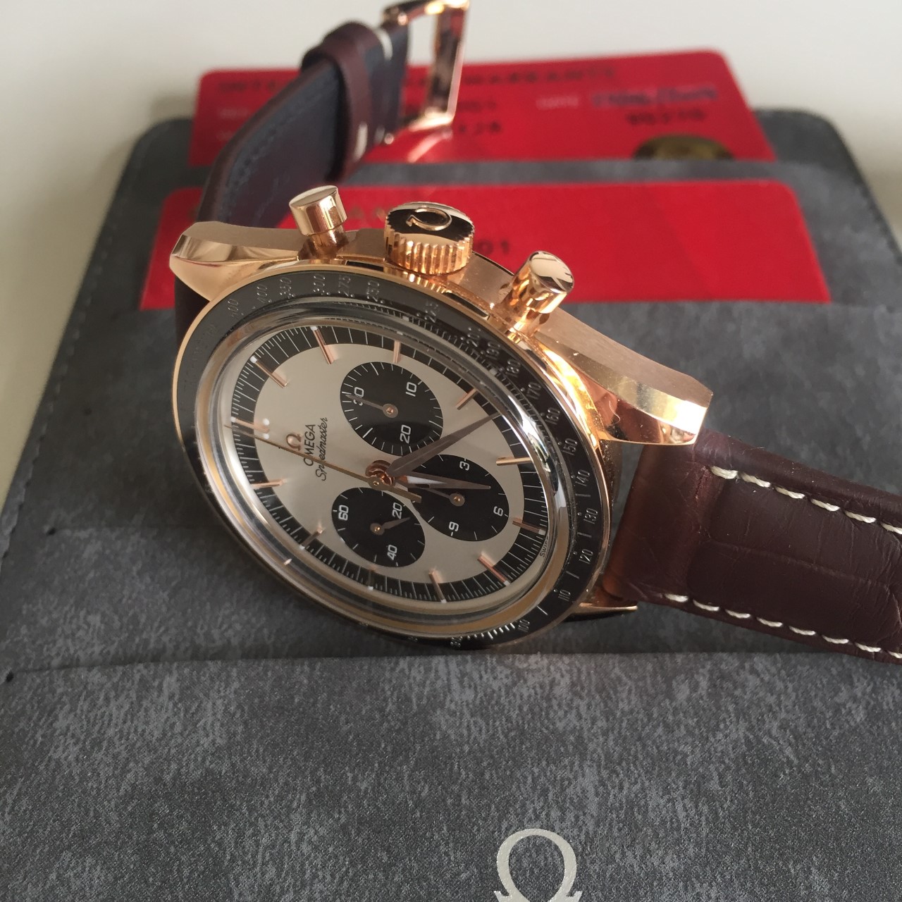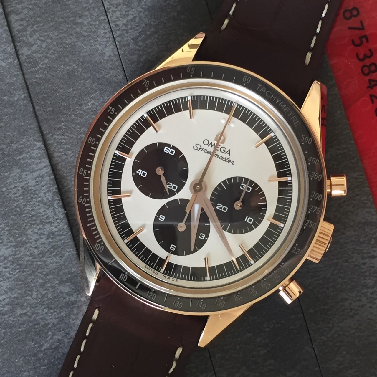 I am willing to sell my speedmaster FOIS in sedna gold. I bought it new from an AD in Paris, almost 3 years ago and have been wearing it only a few times (10 times maybe?) The lack of wrist time explains why I sell it. It has no damage at all, it's like new. It comes with paper, booklet, box and outer box. I never wore the bracelet that comes with it. I sell it for 8.000 €.