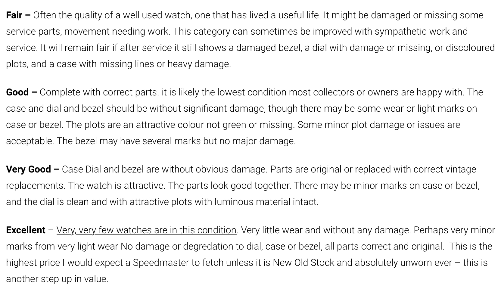 With the recent addition of a new condition category, I’ve been studying pieces and weighing the words of the definitions. 📖 To me, the most difficult ground is between Good and Very Good, particularly when I’m looking at a specific watch. 🤔
