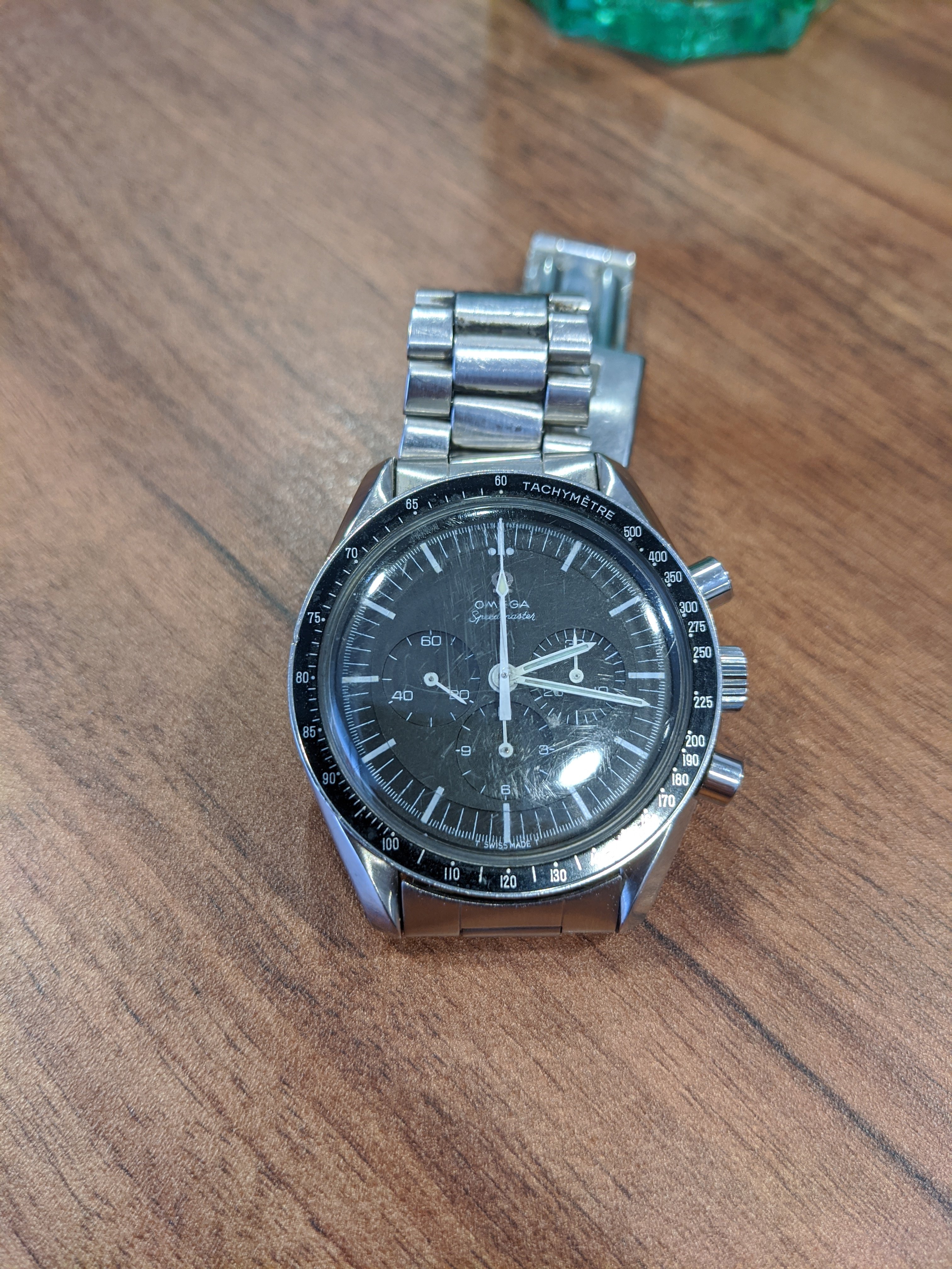 I had a meeting earlier and spotted the Speedy on the wrist of the guy I was chatting to. The non pro dial piqued my interest and I asked him all about it.
