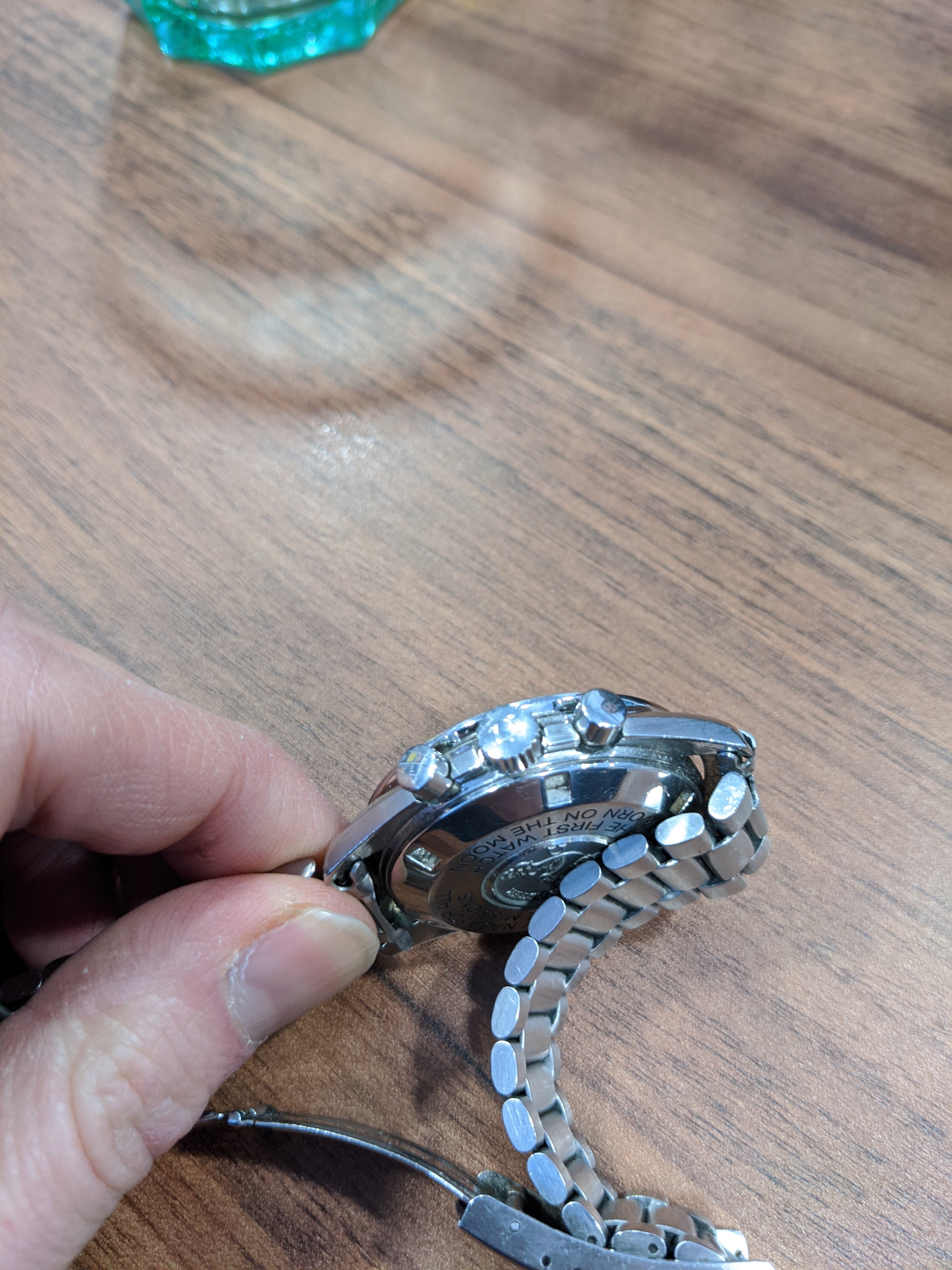 To my untrained eye I think: service bezel, service crown and pushers, totally wrong caseback, wrong bracelet and (possibly) wrong hands. He hasn't opened it up so doesn't know movement.