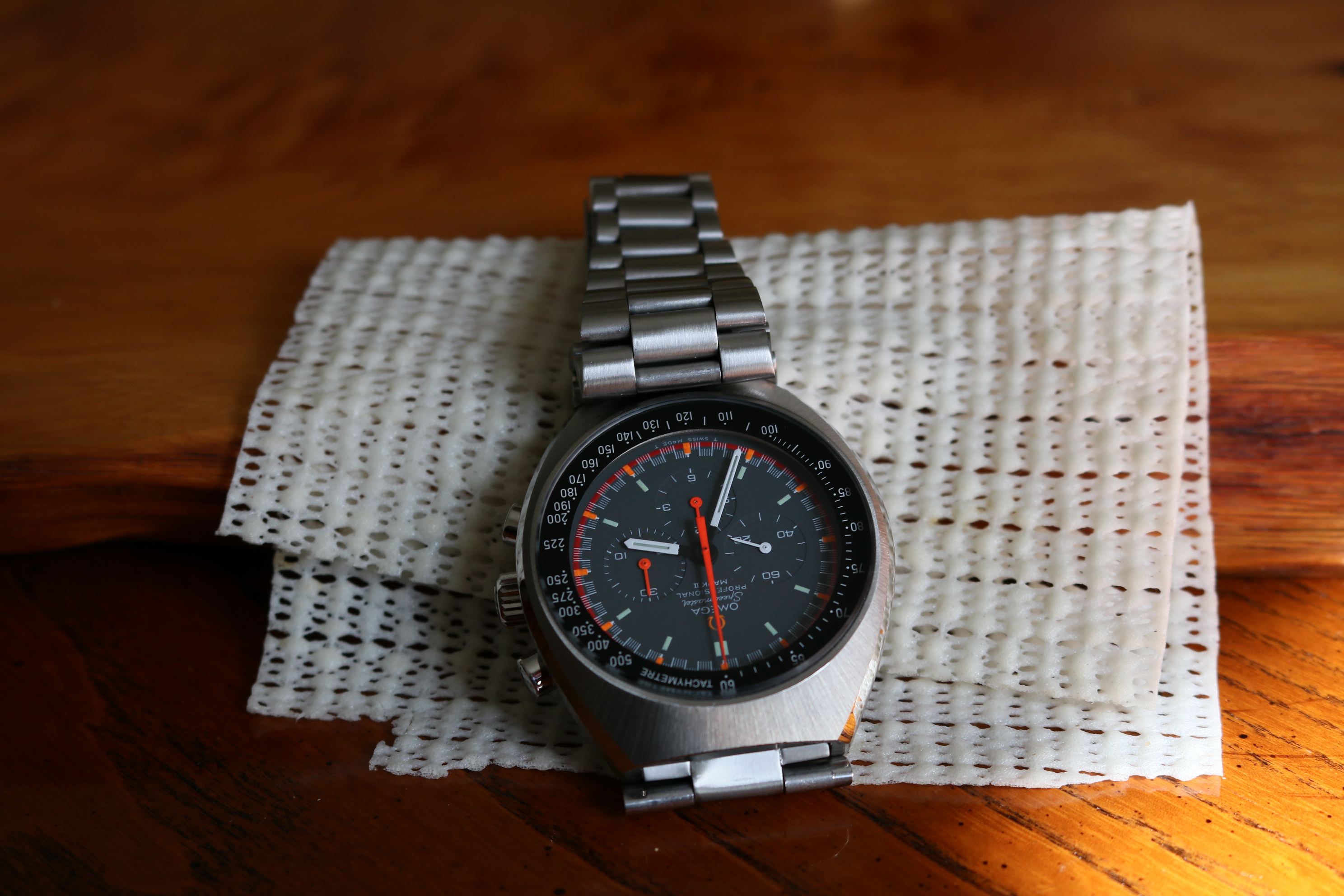 路Hi everyone. I'm new to the forum and thought I'd show some pictures of my watch, and if anyone has an opinion how the bracelet got their? I bought the watch New in 1974 and still have it, it has never had any service on it until Jan 21 when I had Omega do a full service. So everything is as I bought it from a small jewellery store in Frankston Victoria Australia for $200 AUD. The bracelet has been on the watch since I purchased it I know it's not the right bracelet for the Mk2 watch. But considering that I have never changed it how could this bracelet be put their by Omega? Sorry for the pictures I'm not a picture man.