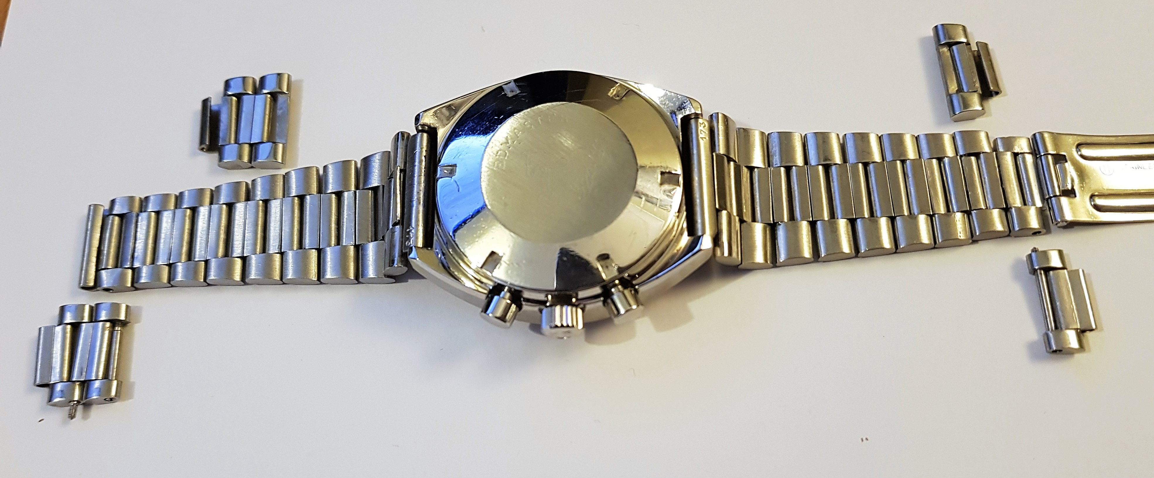 Comes on original 1162/173 bracelet which is quite short (about 7.25"/18.5cm) - it was a straight fit for me and I've got skinny wrists. I have a couple of links from another 1162 that I can throw in if required.