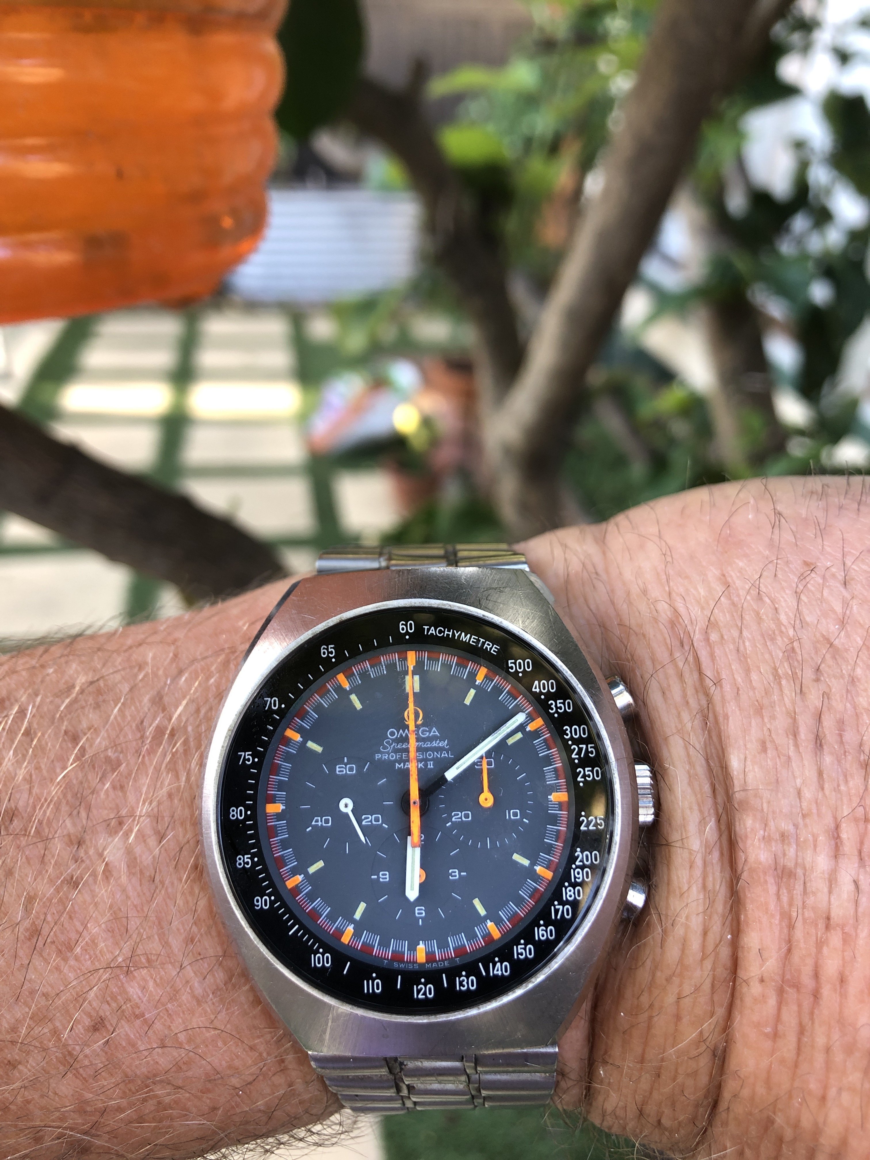 ·My Speedmaster Mark II I purchased a few months back. I am trying to determine if the bracelet is original to the watch. The movement dates the watch to 1969 with serial number 28422xxx. The bracelet is a model 1162 and I know the early models came with an 1159 bracelet. Mine does have the older style clasp that has the beveled edges. Just wanted to know if anyone else has this same combination of early year watch and bracelet.