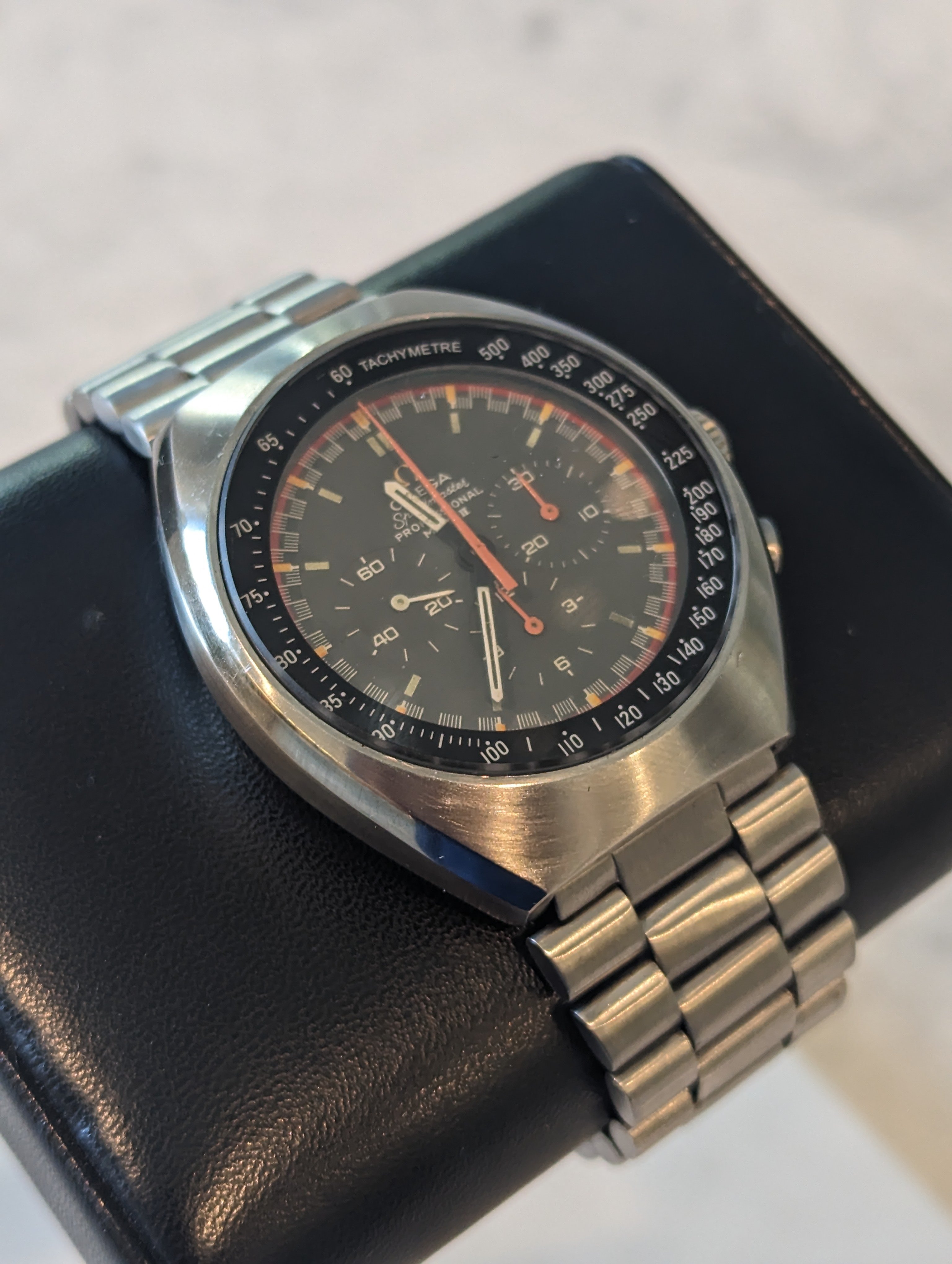 ·I have a Mark II Racing now up for sale which was purchased originally to be used as part a similar cool Moonwatch Racing project like our friend @eugeneandresson sucesfully worked on! In the end, the hunt for the true 3570.40 Japanese Racing watch earlier this year led me to pull the trigger on a watch in Yokohama so I'm simply trying to recoup some money by selling this nice Mark II. The watch runs great & my local watch maker replaced the crystal earlier this year when I was originally planning to keep it.