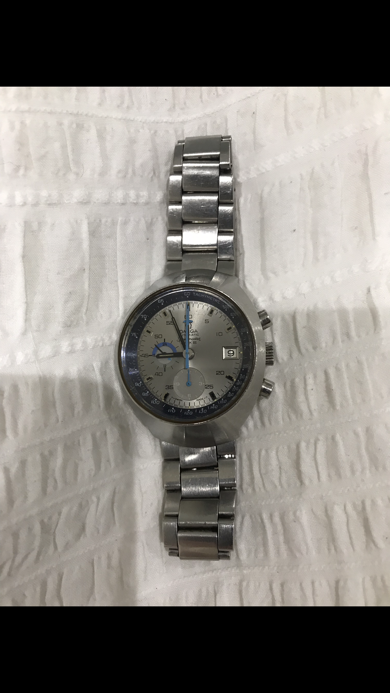 From what i have read, i think i should expect to find a 1162/172 bracelet on this Mark iii. I dont know what i have instead but it doesnt seem to be that. I need an extra link for the bracelet i do have or maybe i should look at buying a 70's 1162/172 bracelet instead.... to take the watch back to its roots. There doesnt seem to be any marking on the bracelet - no numbers in circles etc, only what looks like "J/M" to the top left of the STAINLESS STEEL and Omega stamps.