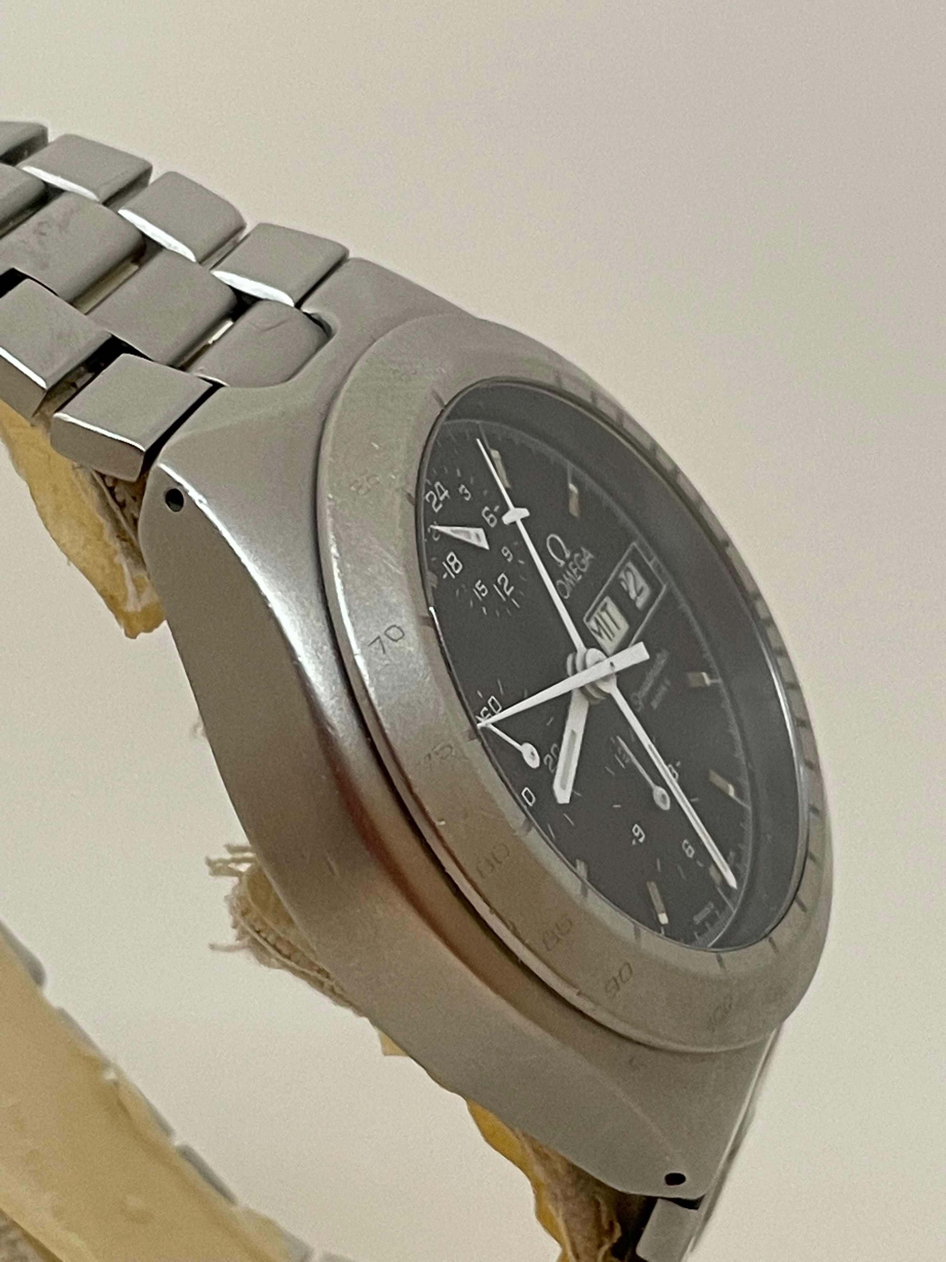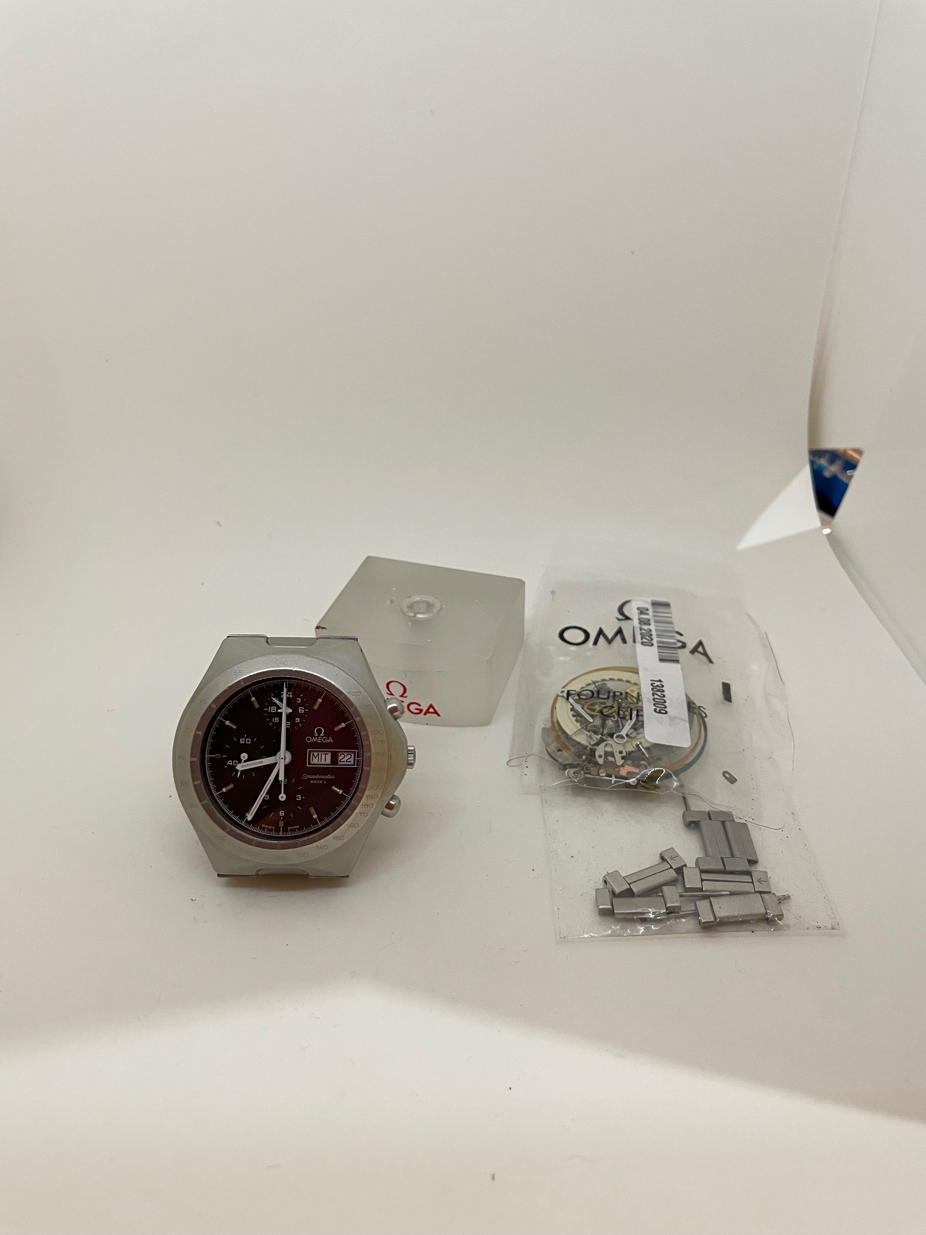 So mechanically excellent, and will come with Omega service sunglass case and all of the parts replaced during service including the english day wheel and main hands (these are apparently the ones that are the direct replacements for the 376.0822 grail speedy as well). I would prefer not to open the case back for a movement shot because of the recent service. The watch is currently sized for 7.25” but there are 6 extra links so will fit an 8.5” wrist, or you can sell them on chrono24 for $200 each (they fit all the teutonics except for the moon phase)……