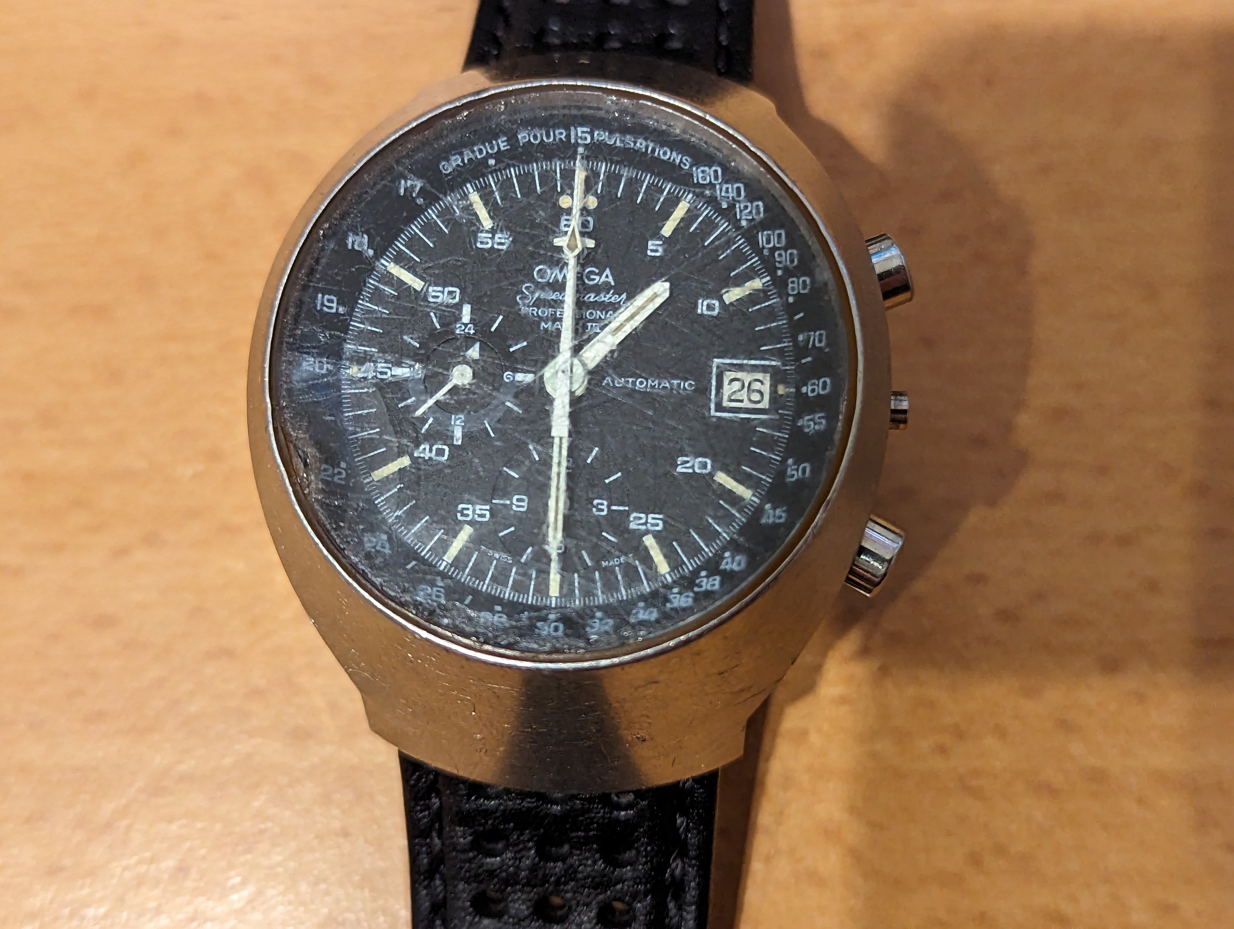 I just picked up a Speedmaster MkIII (common D3 dial) at an auction that needs a bit of love - it's on a terrible aftermarket strap and the crystal is cracked, but it's running well and I think I love it already.