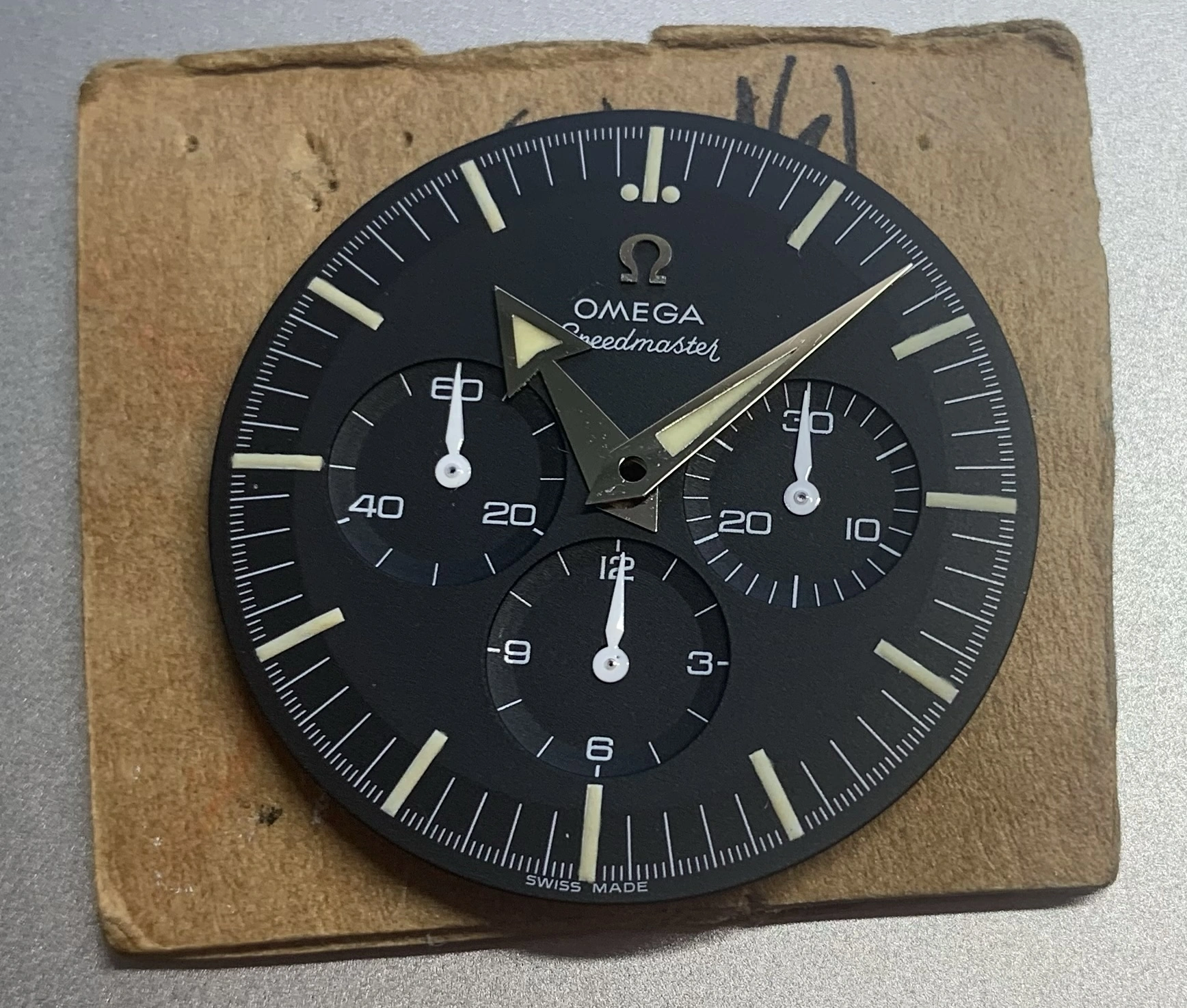 A little while back I had the idea of putting a 321 into my Trilogy Speedy (!), but before I could quite get to the finish line, I decided to sell my Trilogy (still available). I sourced an Omega pre-professional service dial (with the 321-compatible larger dial feet) + an Omega 3594.50 (broad-arrow) handset, both of which were RE-LUMED with an "aged" superluminova look that is perhaps somewhere in between the darker Trilogy color and the lighter modern Ed White color; quite nice I think! The subregister hands were also painted white to match the Trilogy style. Thoughts?!