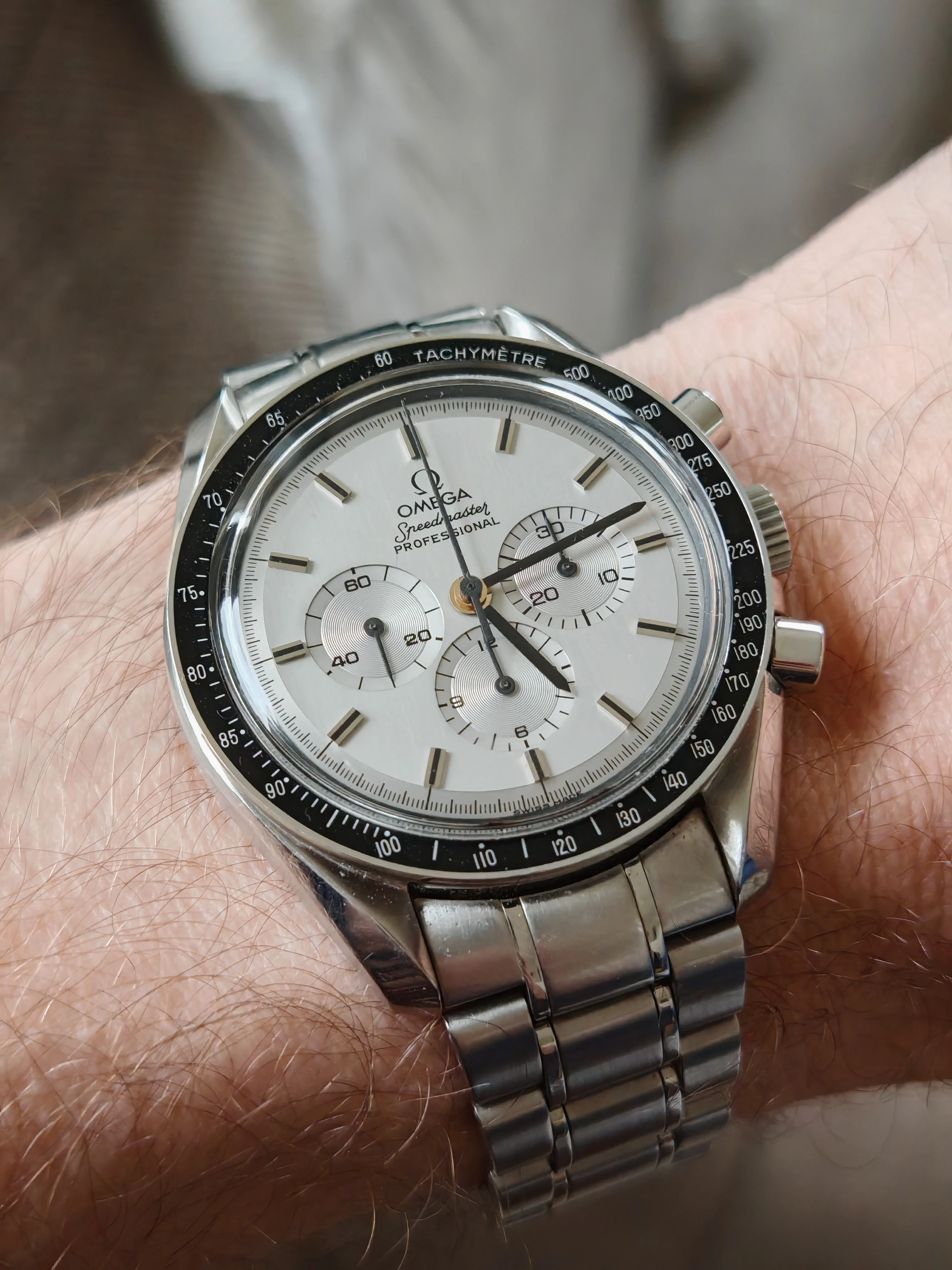Yes, well seen, these are indeed hands from the yellow gold version, I didn't go through Omega to get them, and I think that the white gold version must no longer exist, there were so few models produced that the after-sales service stock must have been exhausted a long time ago, in any case I like it because the indexes already have a warm tint, so there isn't too big a difference, so yes it can be seen, but in a discreet way, and it reminds me at every glance that the hands are gold, in short it doesn't bother me at all, quite the contrary