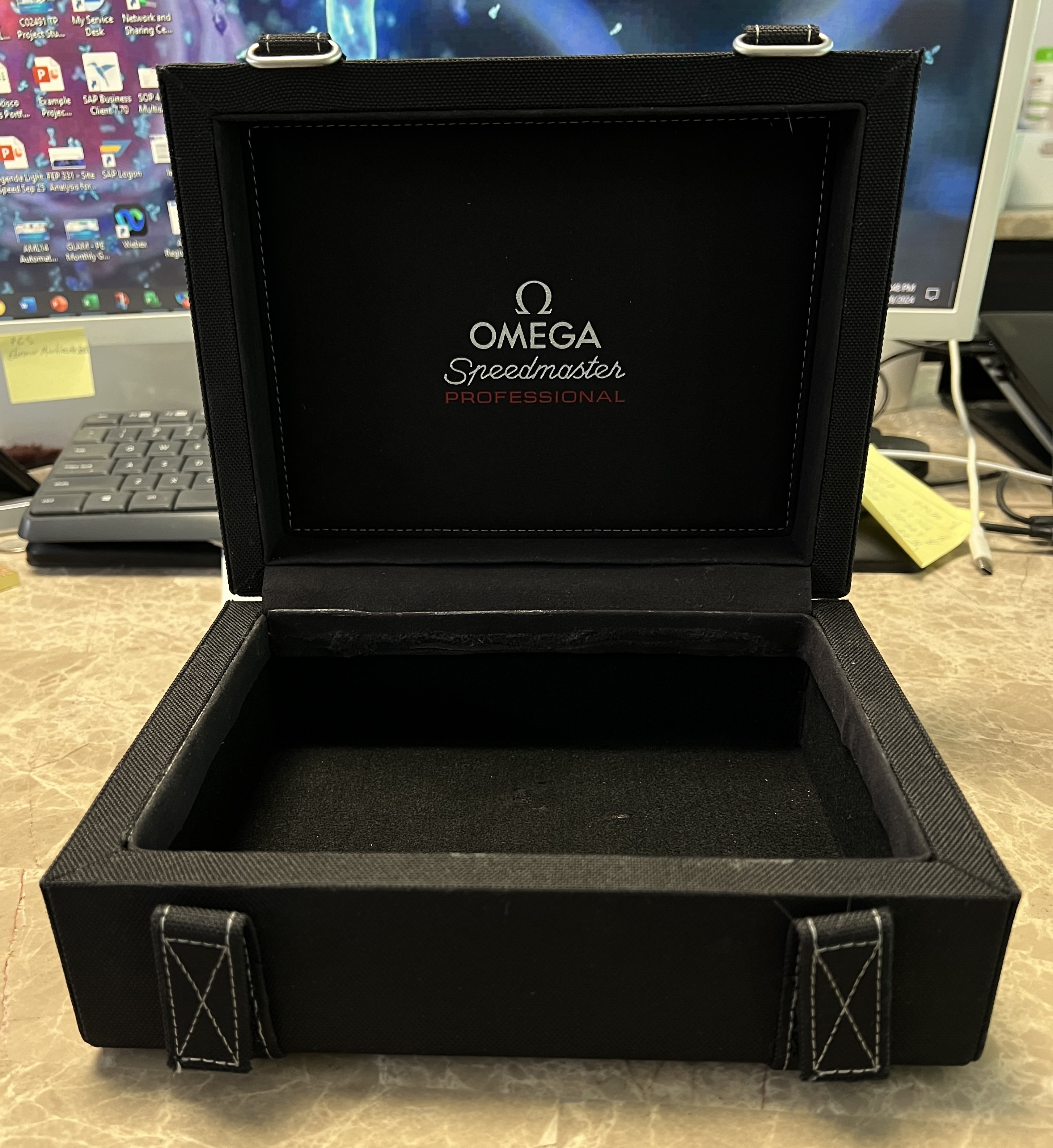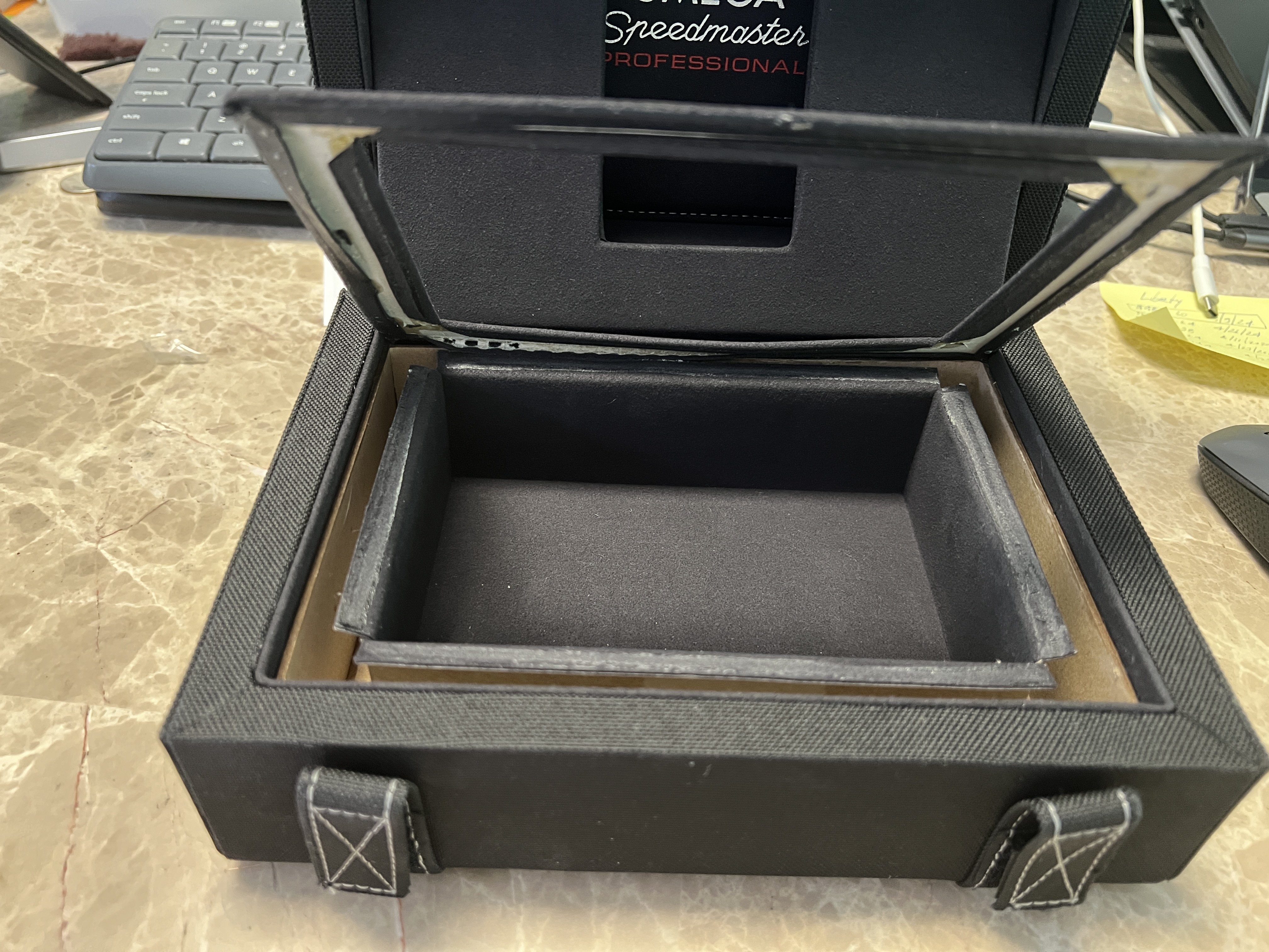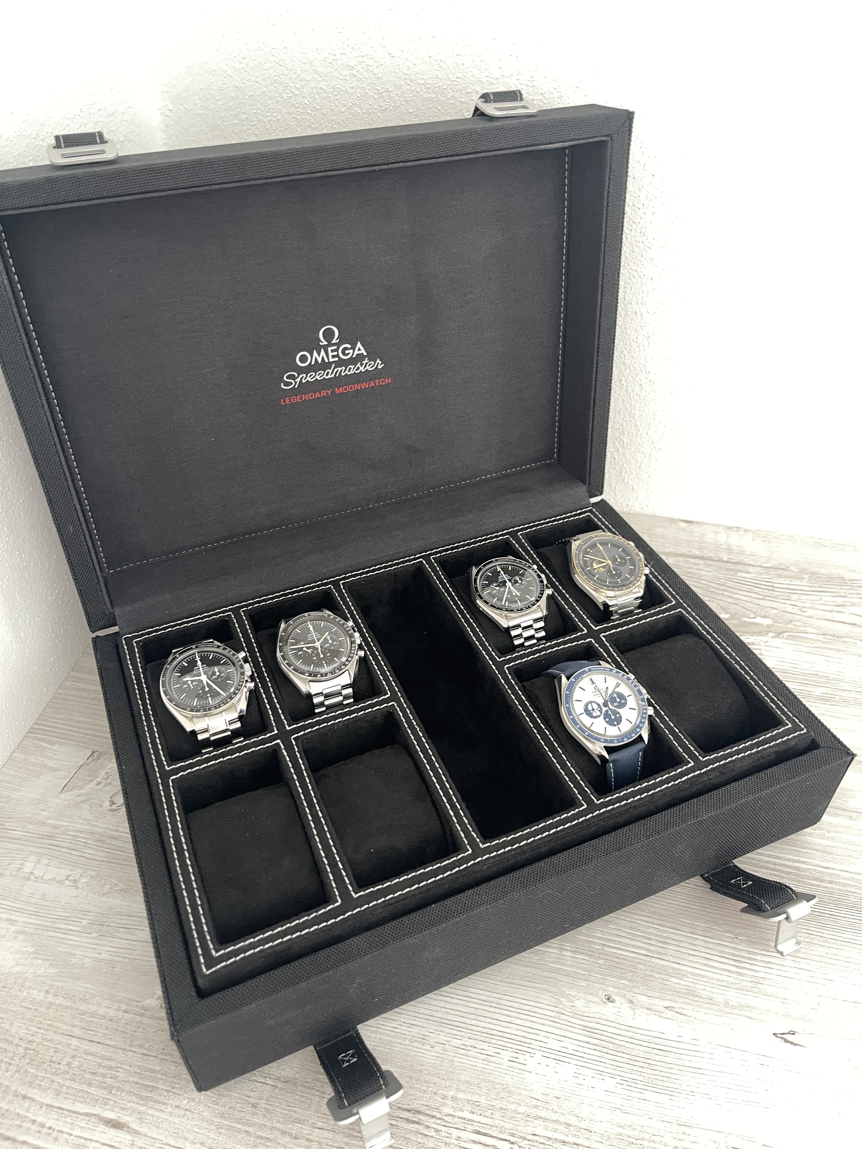 Have someone converted the “small” Speedmaster 3861 box into a strap box? Recently sold my Speedmaster Legendary Moonwatch “big box”, which first converted to a watch box and later into an accessories box, as was too big to be practical on my safe / vault at 12 1/2 inches wide x 8 3/4 inches long x 4 2/5 inches outside dimension: