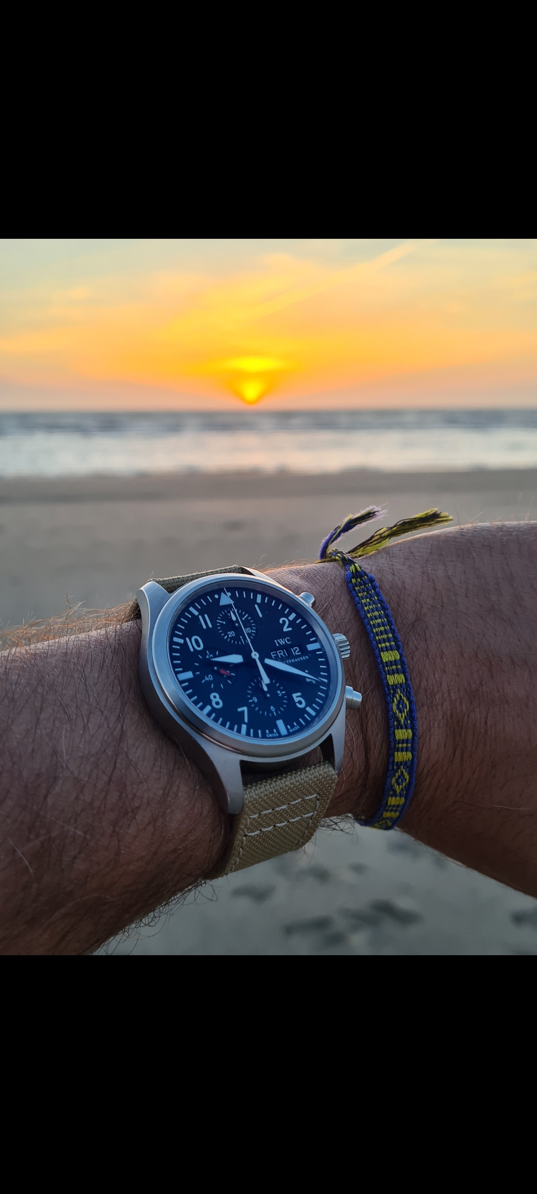 I’ve got an IWC Portofino chronograph and a Moon. Different. The IWC doesn’t get much wrist time as it looks beautiful, but sort of dressy. I’m currently in shorts and the watch of choice is Moon. Job interview or formal in suit? IWC all the way.
